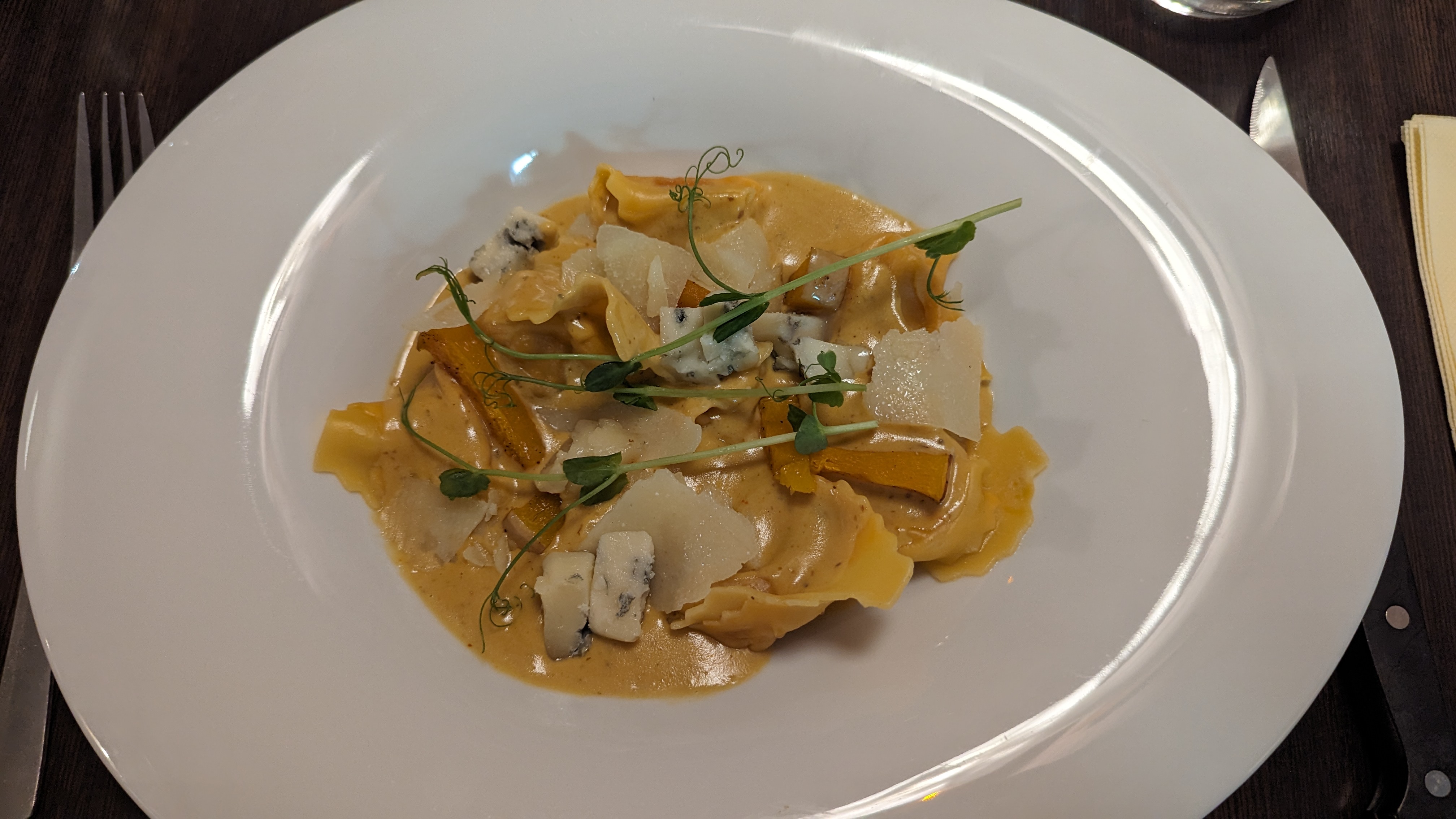 Excellent dîner tout est fait maison , ravioles au citron et fondant et panacotta . Merci