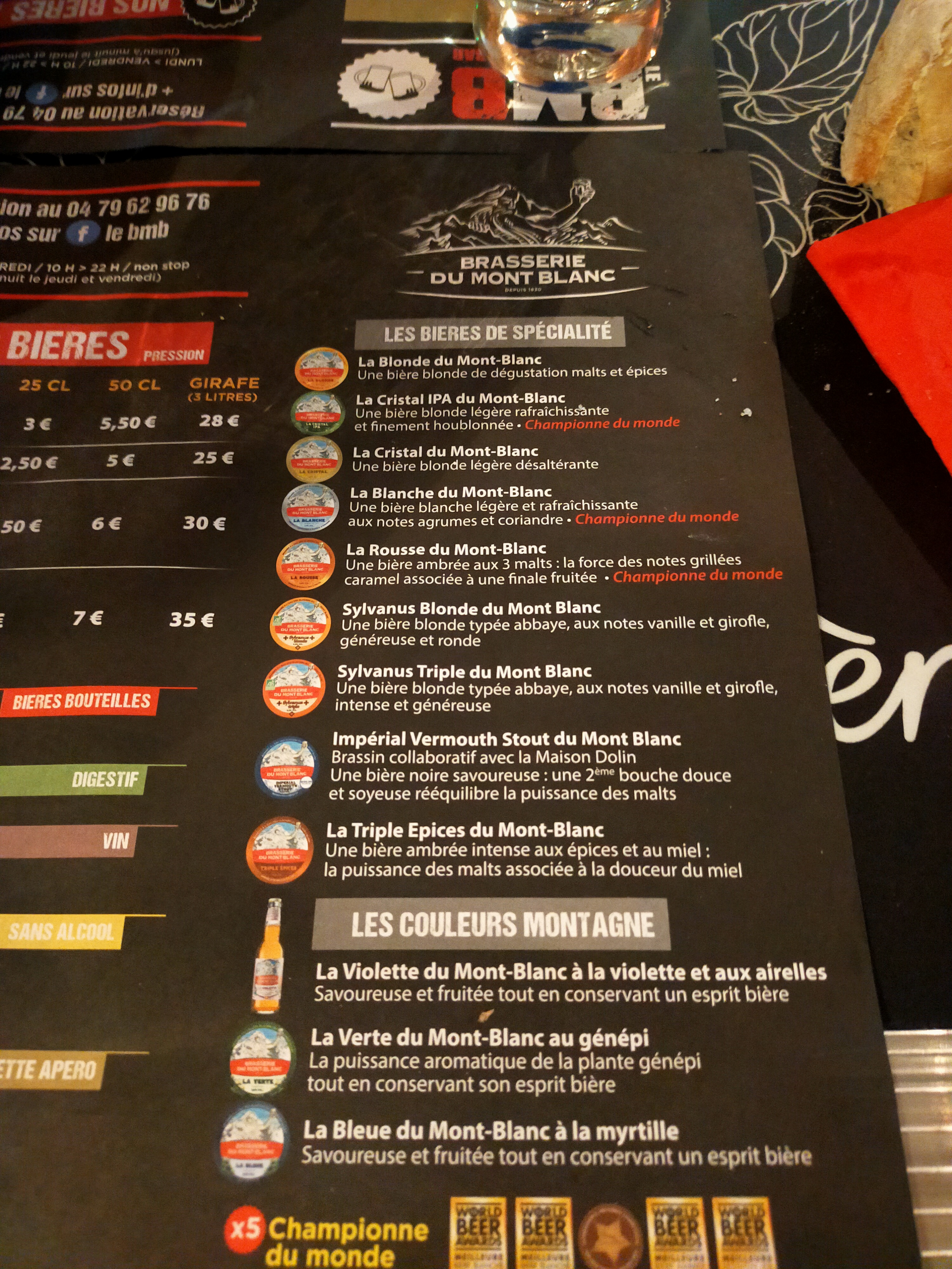 Les bières de la brasserie du Mont-blanc sont excellentes, je suis principalement fan de la bleue et de la verte (au génépi), bien évidemment 😏