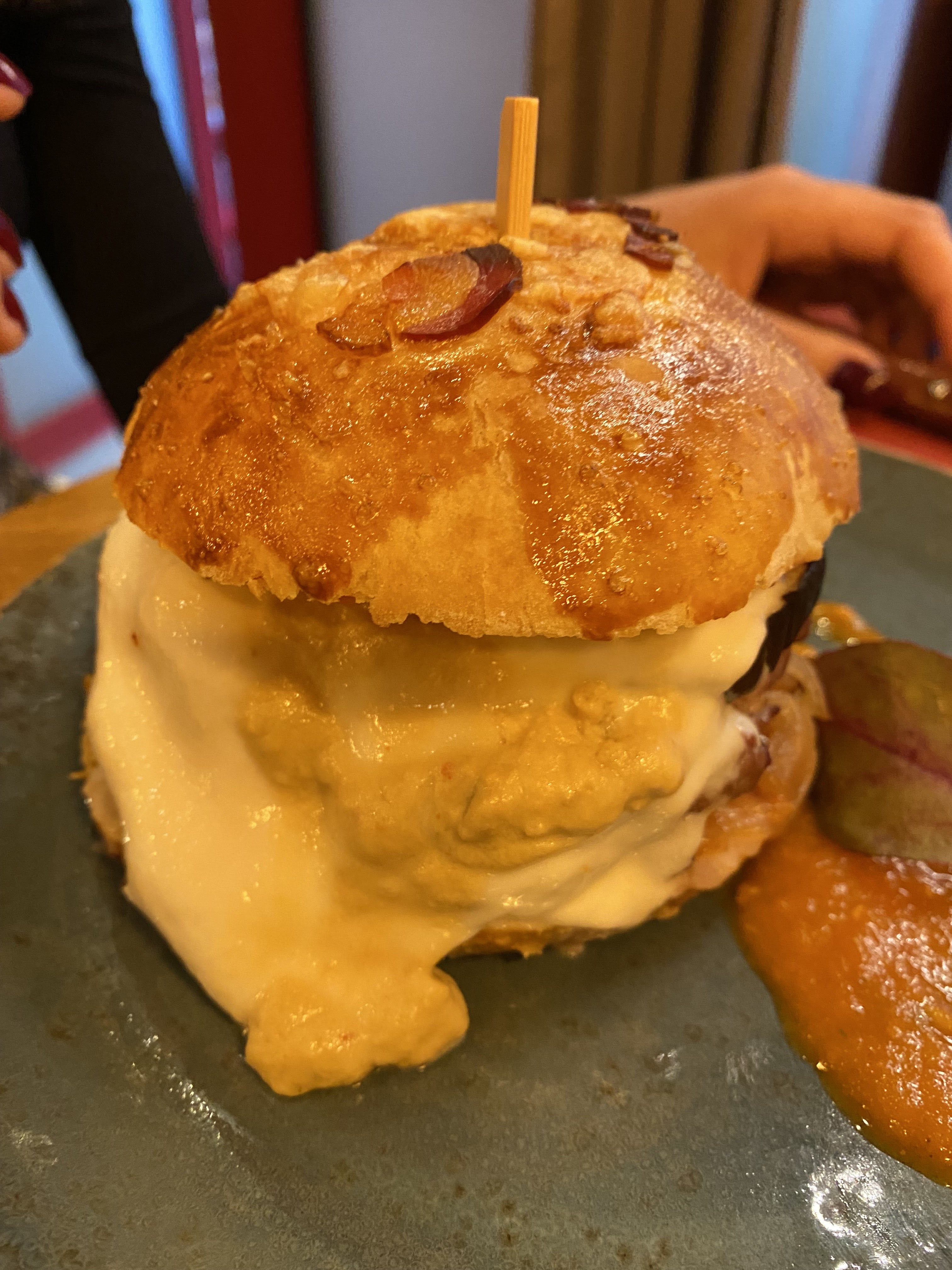 Restaurant typiquement français, plutôt charmant avec une belle ambiance. Les burgers sont copieux, avec de la viande de qualité. Le camembert au miel à partager en entrée était délicieux. Cependant le pain était trop cuit à notre goût. Politique de la maison j'imagine. Il y a également un large choix de vins. Sur les accompagnements, qui ne sont pas inclus mais avec des portions généreuses : on aurait aimé être prévenu de ne prendre qu'une portion de frite pour 2 par exemple.