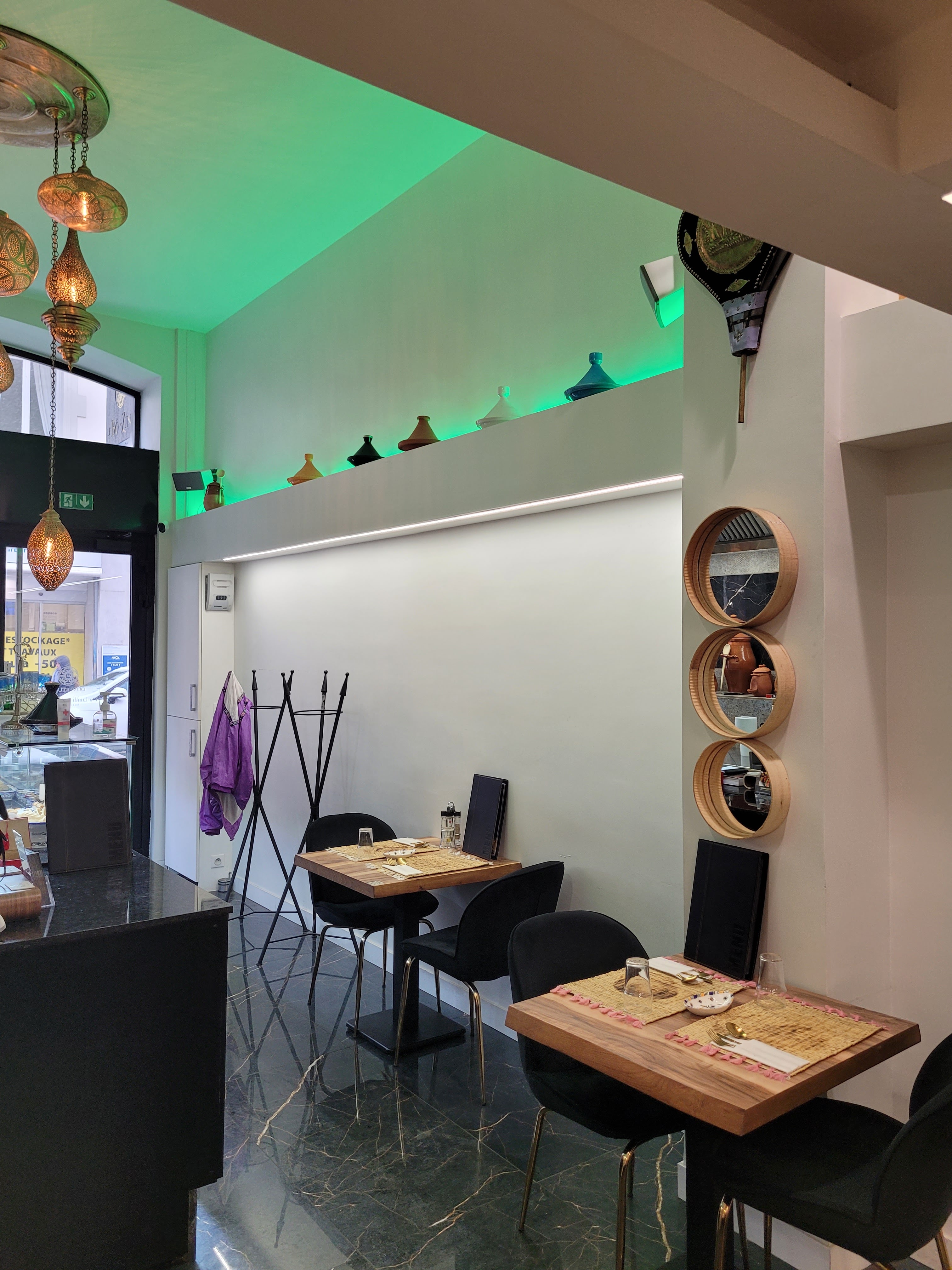 Jolie decoration traditionnelle. La nourriture est bonne, la pastilla au poulet top. Les bricks au thon à revoir niveau goût. Les prix sont correct. La serveuse est avenante, souriante et active mais beaucoup trop de travail pour une seule personne, du coup celà a crée quelques petits oublis de sa part. Il faudrait vraiment envisager à rajouter une deuxième personne en salle ou une spécialement pour gérer l'accueil, vente des plats à emporter + encaissement. Si vous améliorez ce point ça serai parfait. Je reste ouverte à l'échange.