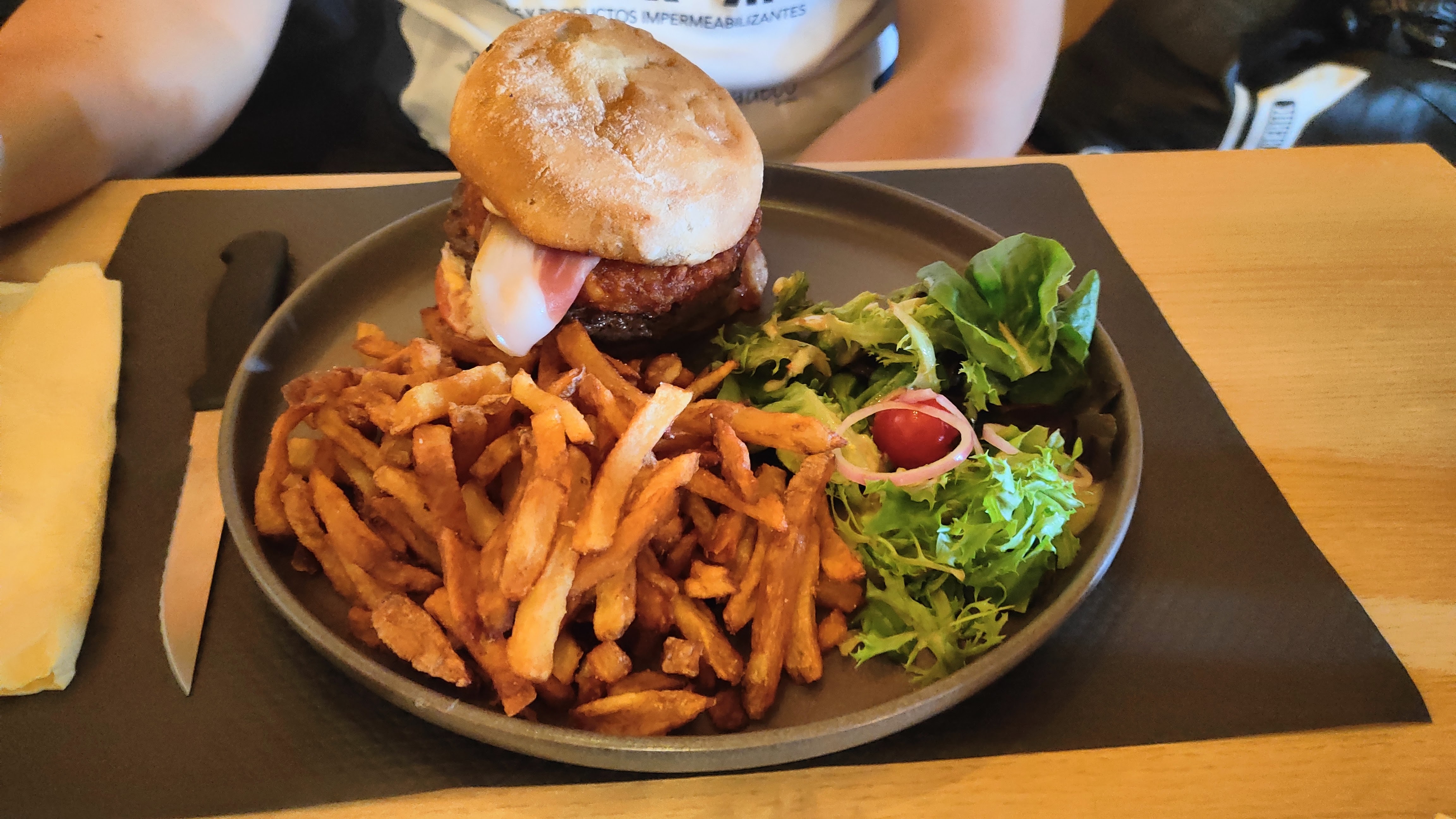 Après quelques kilomètres en moto, nous avions besoin de manger quelque chose de chaud Sous un peu de pluie nous avons trouvé cet endroit Bonne décoration, bon service et la nourriture n'était pas mauvaise du tout Les pommes de terre étaient trop salées et le goût du fromage dans les burgers était excellent. Les prix sont évidemment élevés, en raison du lieu et du pays, même si à ce moment-là on ne le voit pas de la même manière