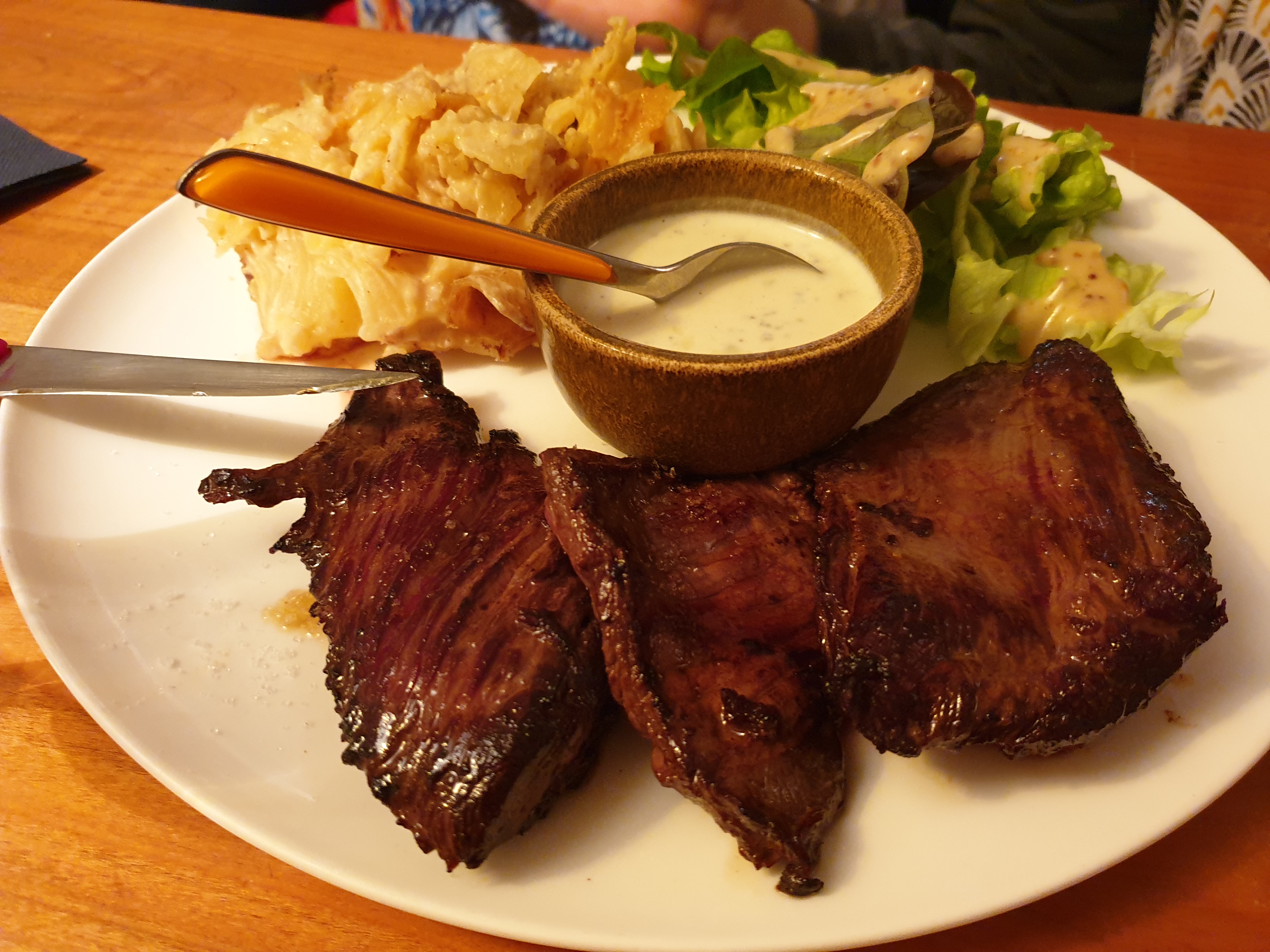 Excellent! La viande de qualité et d'un goût remarquable. Les portions sont généreuses (400gr), le prix imbattable pour un restau. Le patron nous a suggéré un vin dans notre budget, le tout était vraiment excellent.