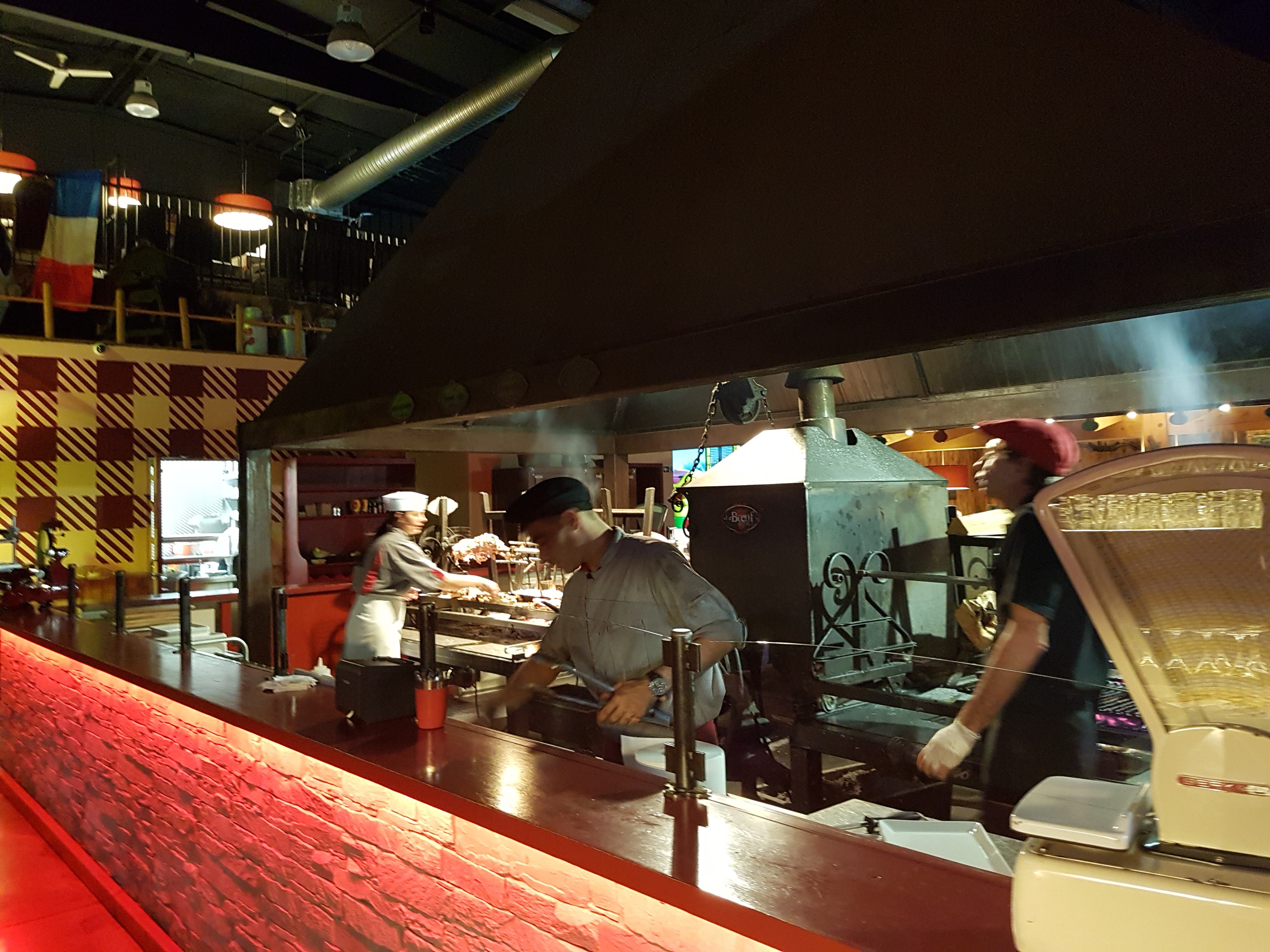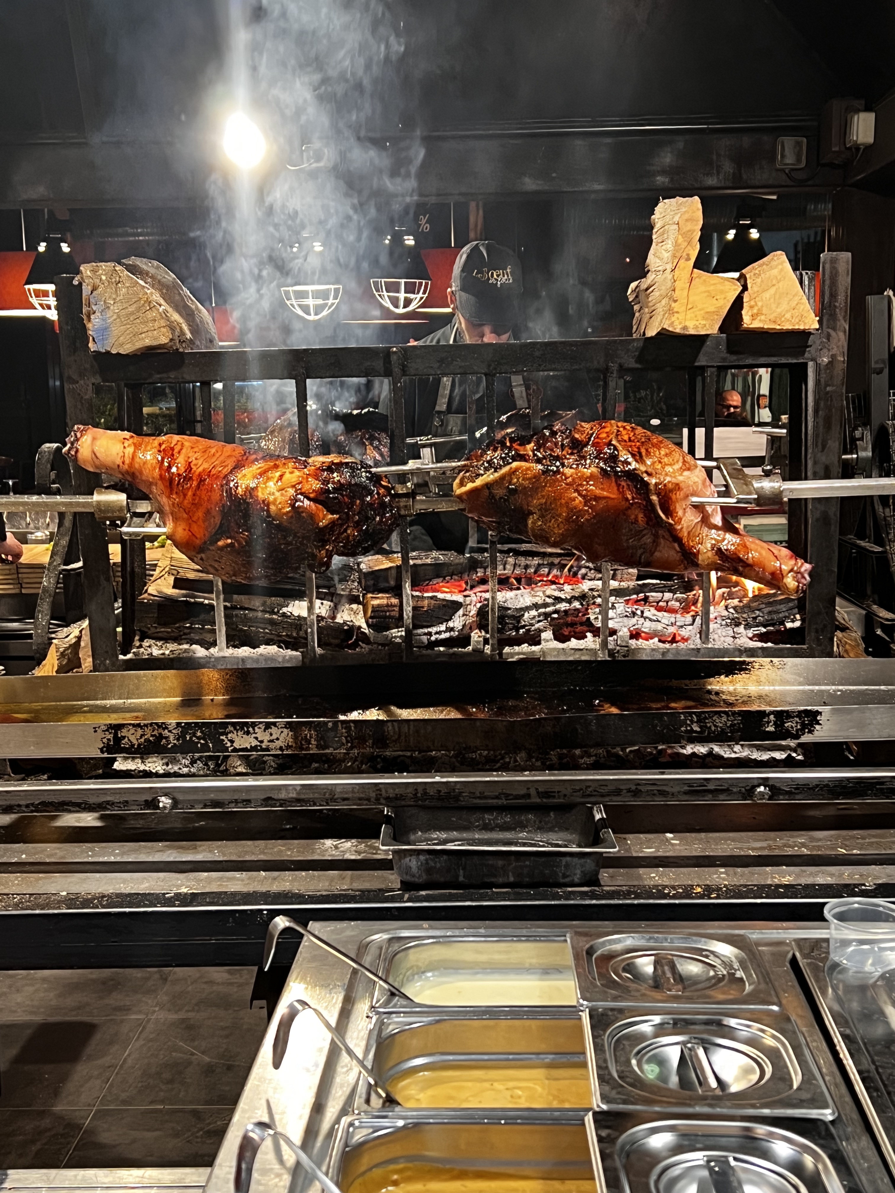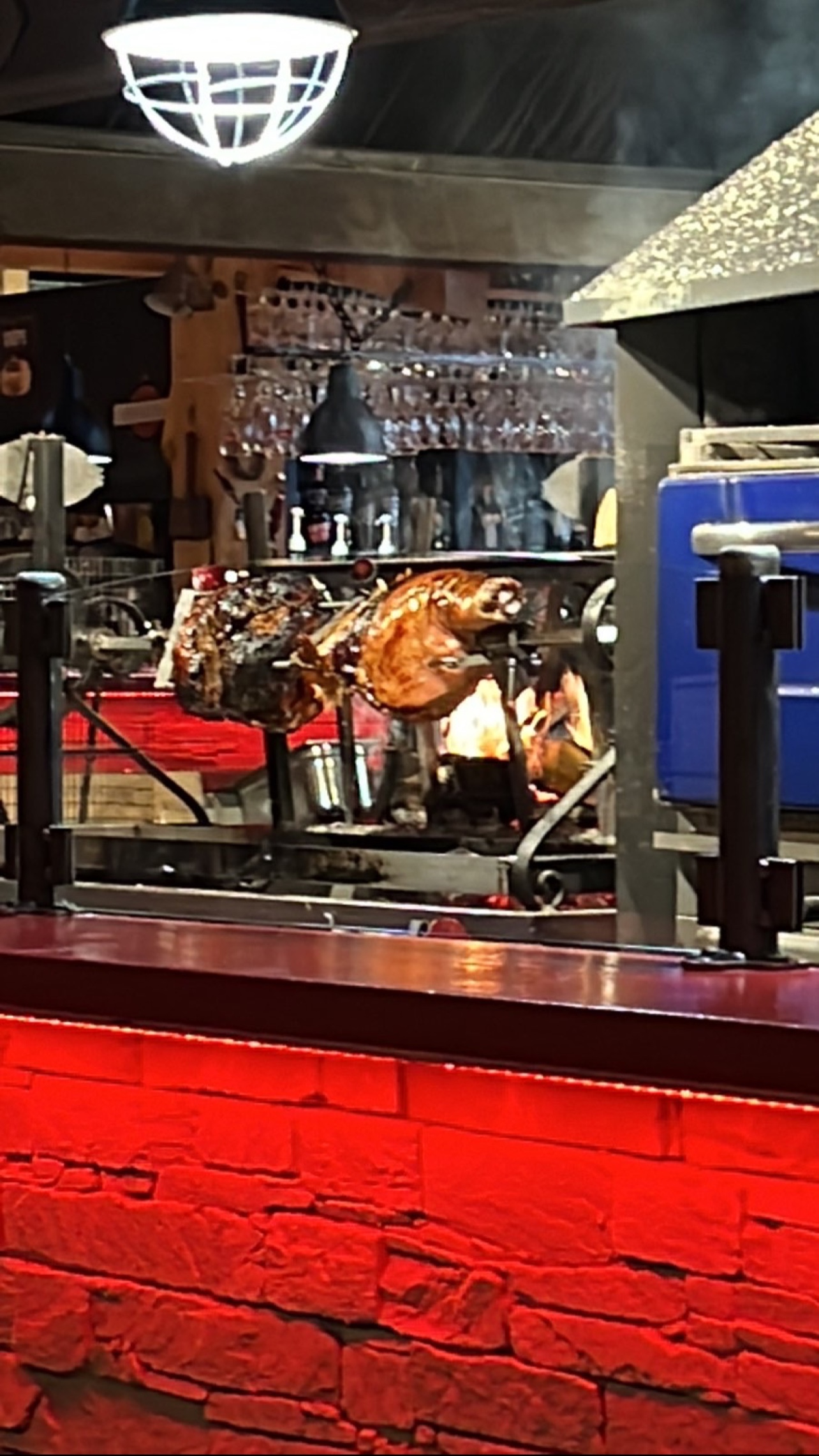 Une ambiance chaleureuse et propice à une soirée entre amis ou un repas en famille. Le menu à volonté est vraiment bien et surtout peu coûteux d'autant qu'il inclut une salade. Le service à table est très bien géré avec une carafe toujours pleine sans avoir à le demander. Le décors est immersif et les énormes morceaux en train de cuir sont autant un plaisir visuel qu'odorant. Seul bémol, la cuisson de la viande hors du moment d'influence (quand il n'y a pas de part en cours de cuisson) est superficielle, la viande finissant pratiquement crue. Lavabo disponible à l'entrée/la sortie avec un véritable savon, un réel plus. Pensez à réserver à l'avance si vous prévoyez de prendre la formule volonté.