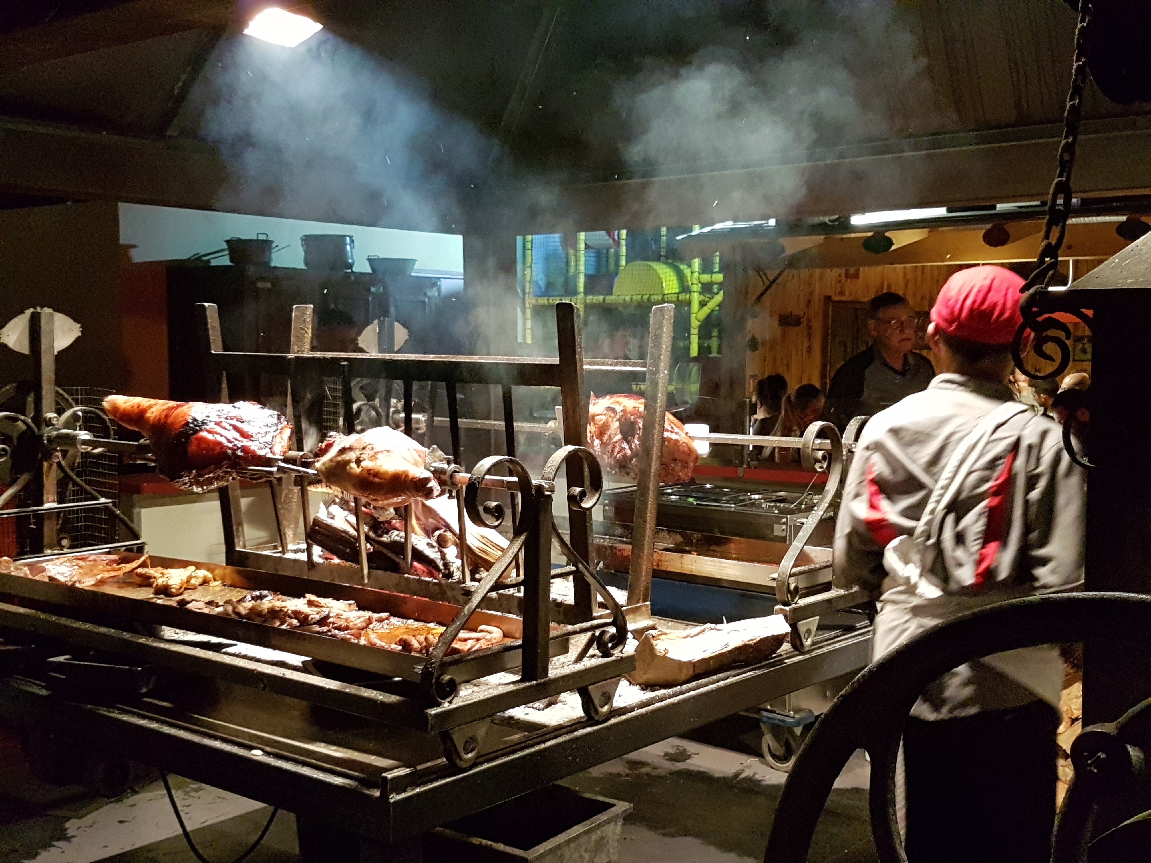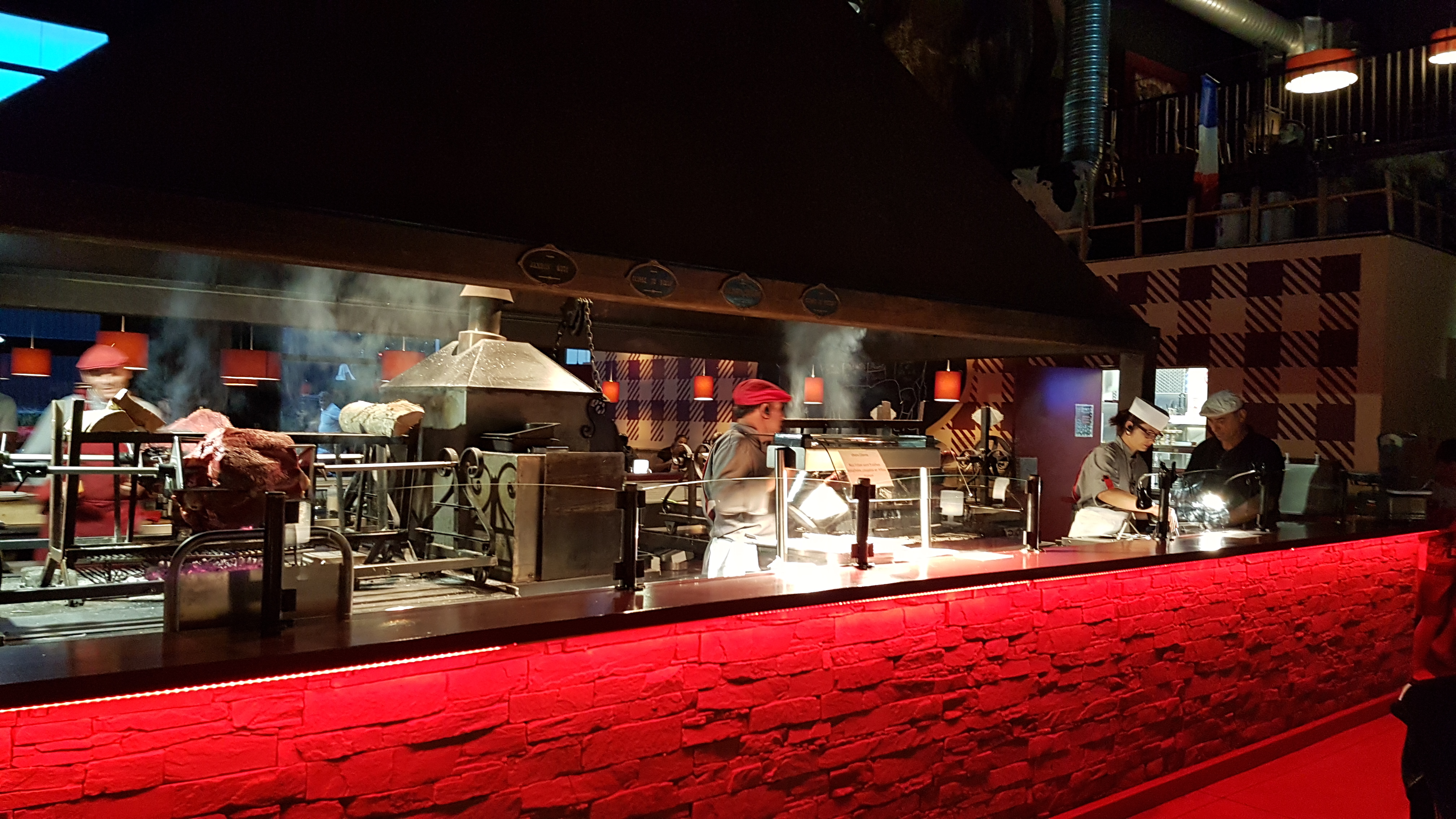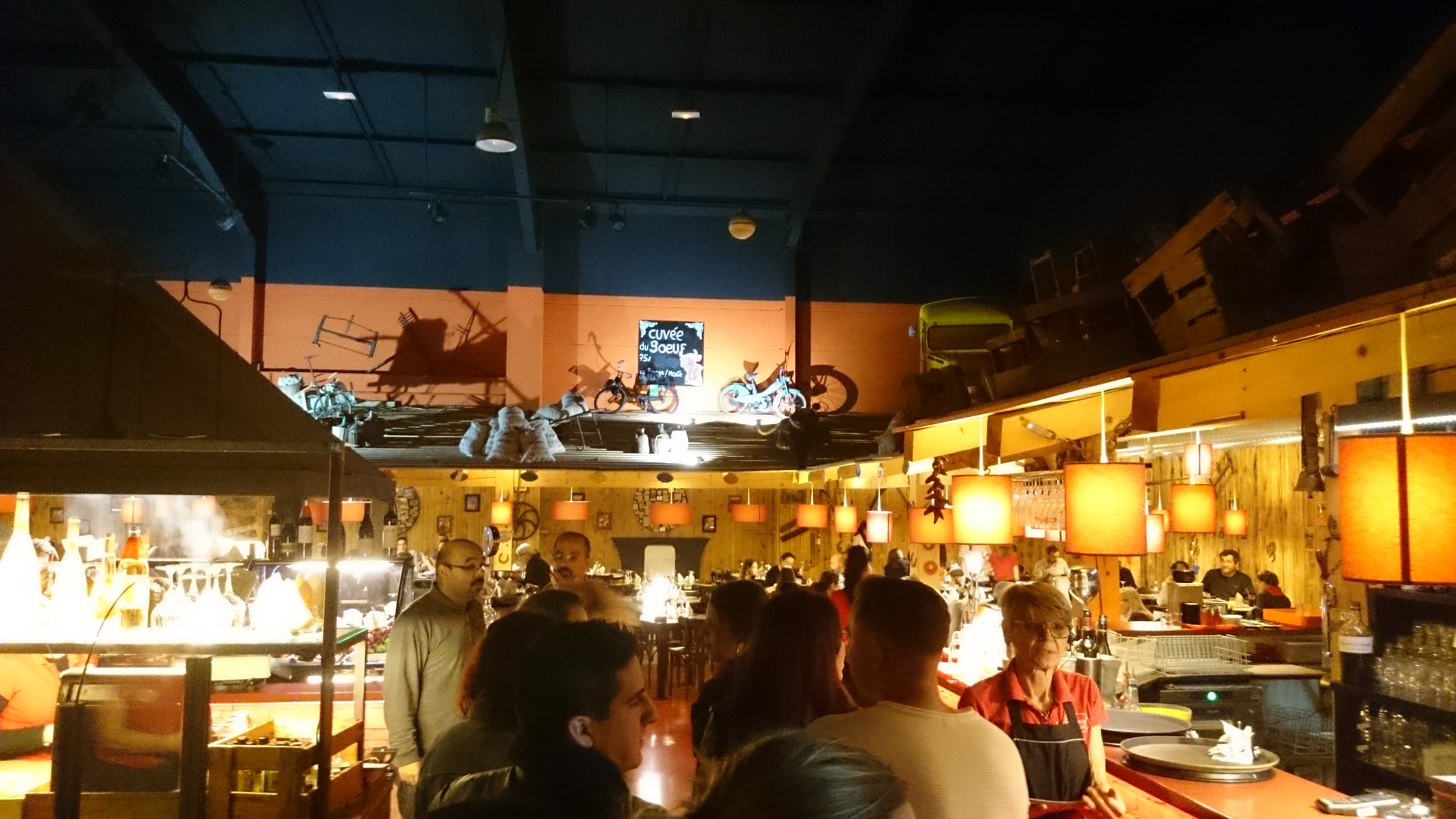 Lieu très sympa par sa conception avec le point chaud au milieu de la salle de restaurant et la cuisse de bœuf que l'on voit cuir devant nous. Par contre quel dommage que l'on nous demande pas la cuisson de la viande pour éviter d'avoir 1 morceau saignant et 1 bien cuit... frite maison ça c top. Ds la formule à volonté pas la peine de vous égarer sur les 2 salades d'entrée c'est quelconque.. et en arrivant alors que l'on vient passé 1 moment de convivialité on a annonce que le service va être tendu vu qu'il y a 1 manque de personnel.... dommage le cadre et la déco sont sympas l'idée de la cuisse cuite devant nous et nickel mais déçu par le principal... le repas...