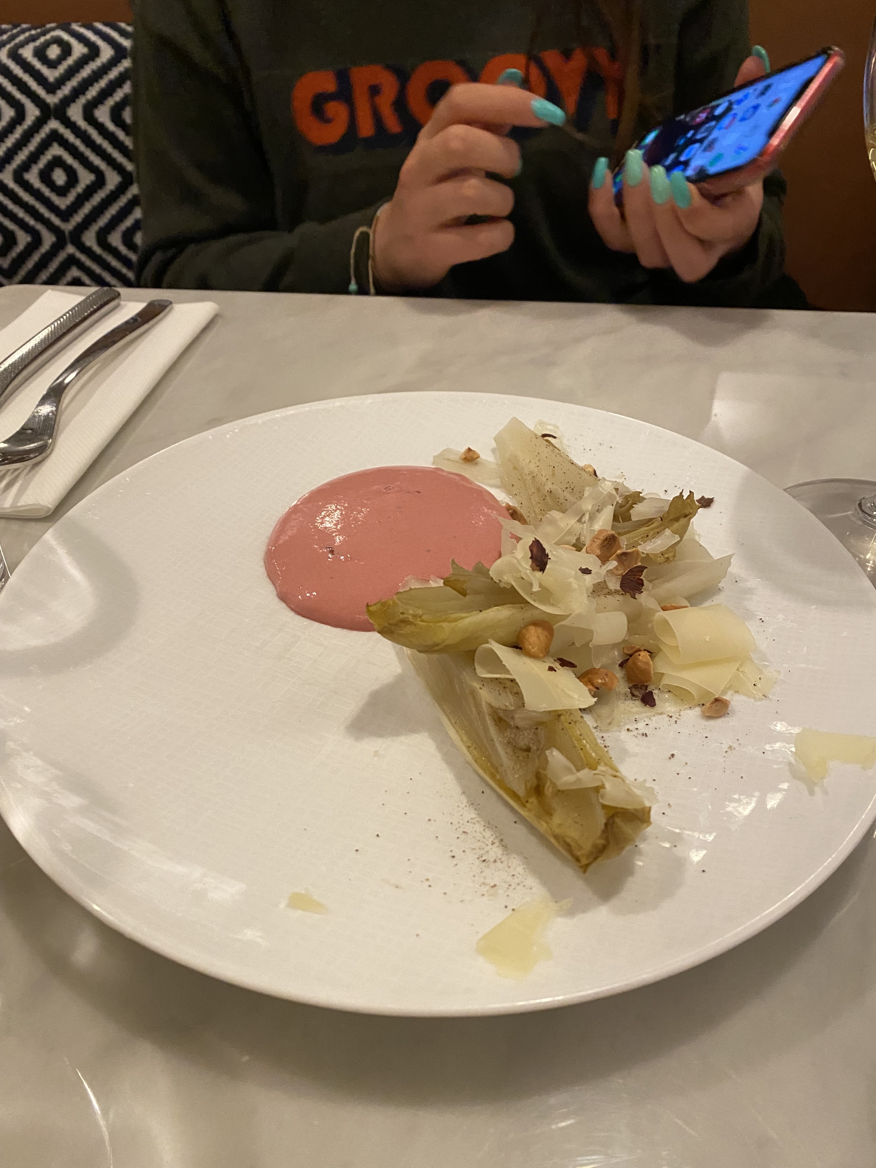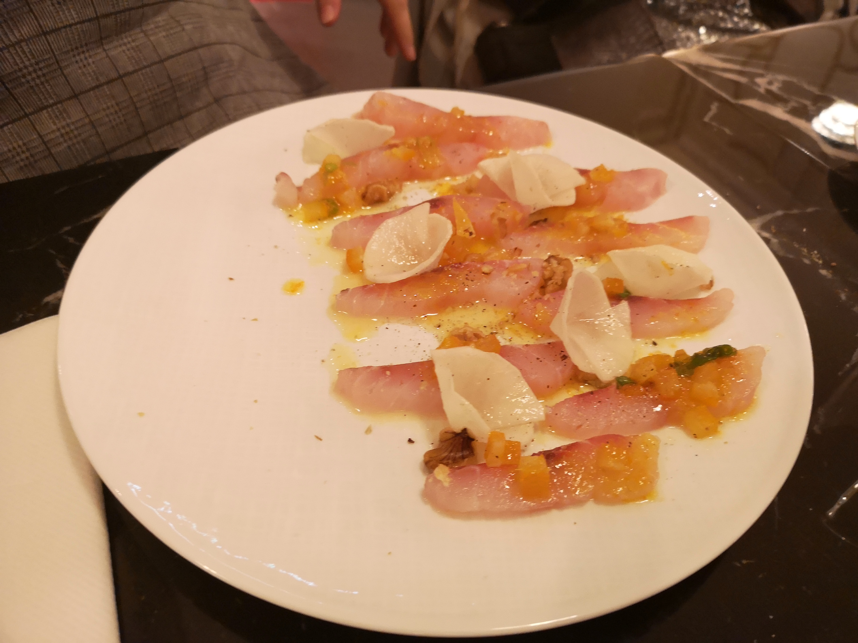Nous venons de terminer notre entrée et notre plat et nous avons hâte de recevoir le dessert du chef. Elle est clairement compétente et très passionnée car sa nourriture a été divine. Il faut également noter que le serveur a été très impressionnant et parle un anglais exceptionnel. Vivant notre nuit, j'aimerais pouvoir donner plus de 5 étoiles. Merci.