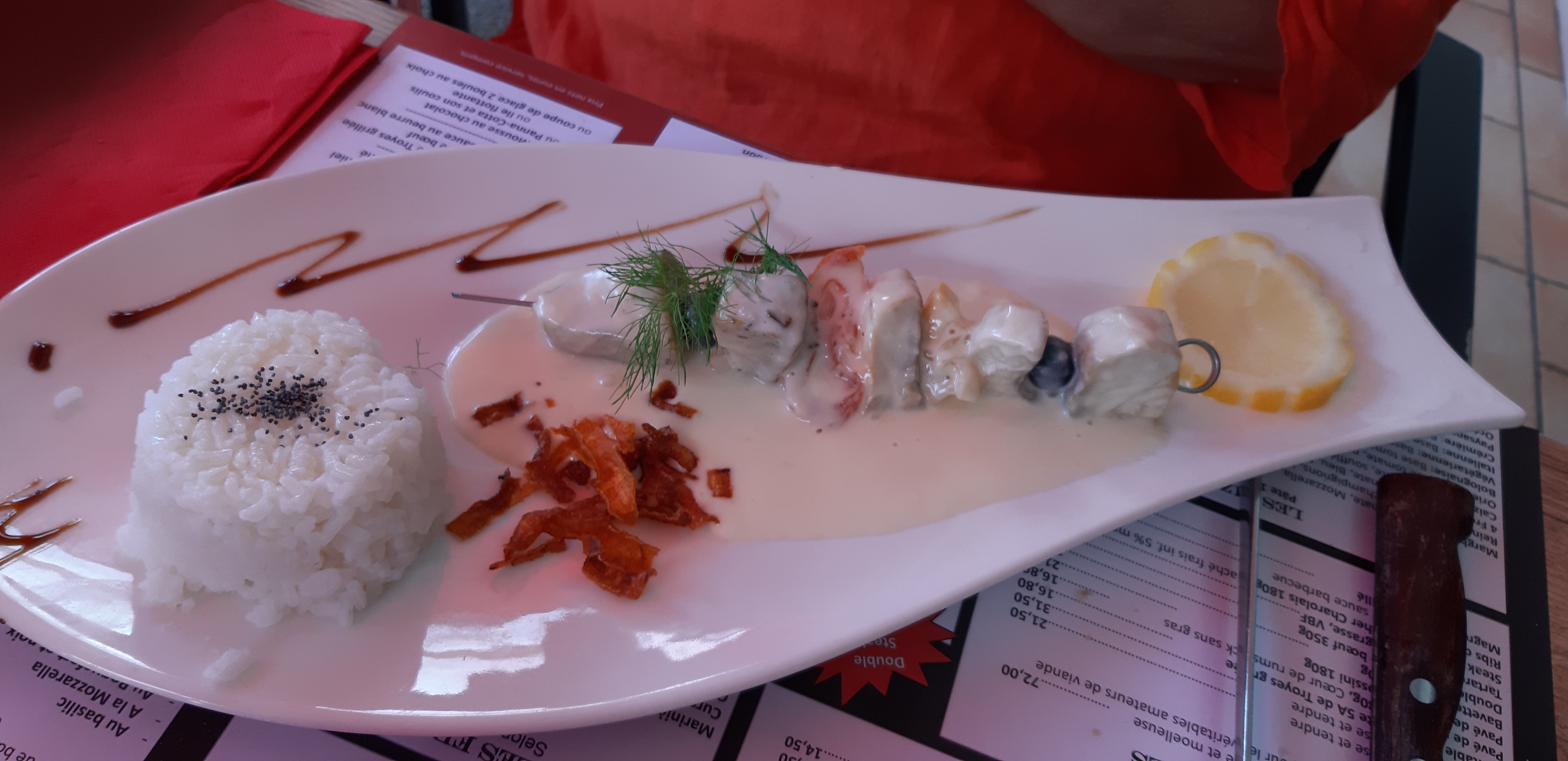 Nous sommes aller manger dans se restaurant c était bon mais sans plus . J ai trouver que la serveuse était trop spide même pas le temps de choisir se qu'on voulez sur la carte .j ai prix du poisons et je trouve sa inacceptable que il y est plus de riz avec à la place il m 'ont mit 2 pomme au four .