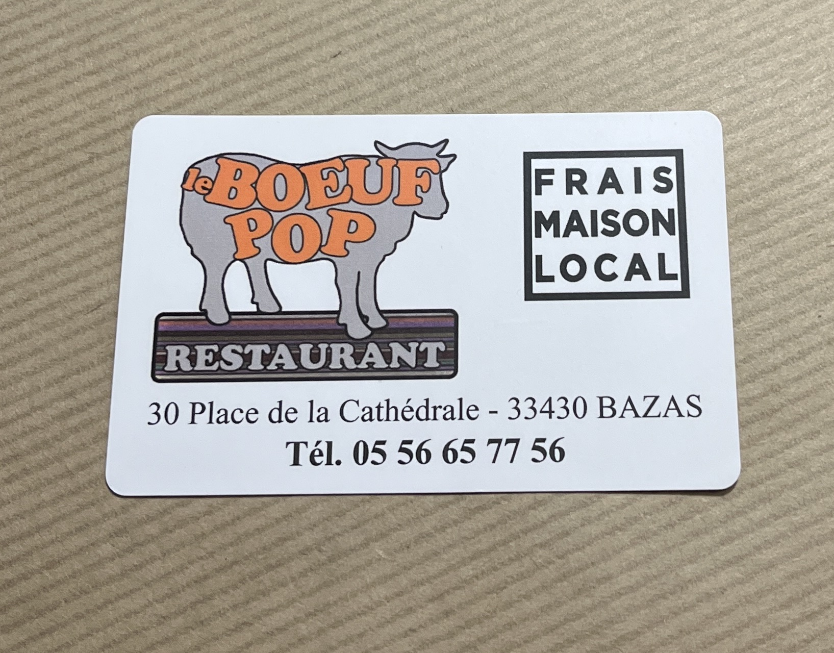 Nous avons déjeuner ce jour 31 Juillet au bœuf Pop, une affluence sur Bazas ce jour là du au rassemblement de voitures anciennes dans toute la ville, le patron nous a accueilli avec une bonne humeur qui fait plaisir, nous a trouvé une table haute face comptoir, de jeunes serveur très motivés et souriant ce sont occupés de nous très professionnellement, de l’entrée au dessert une cuisine parfaite, la viande un délice, nous avons passé un moment merveilleux,