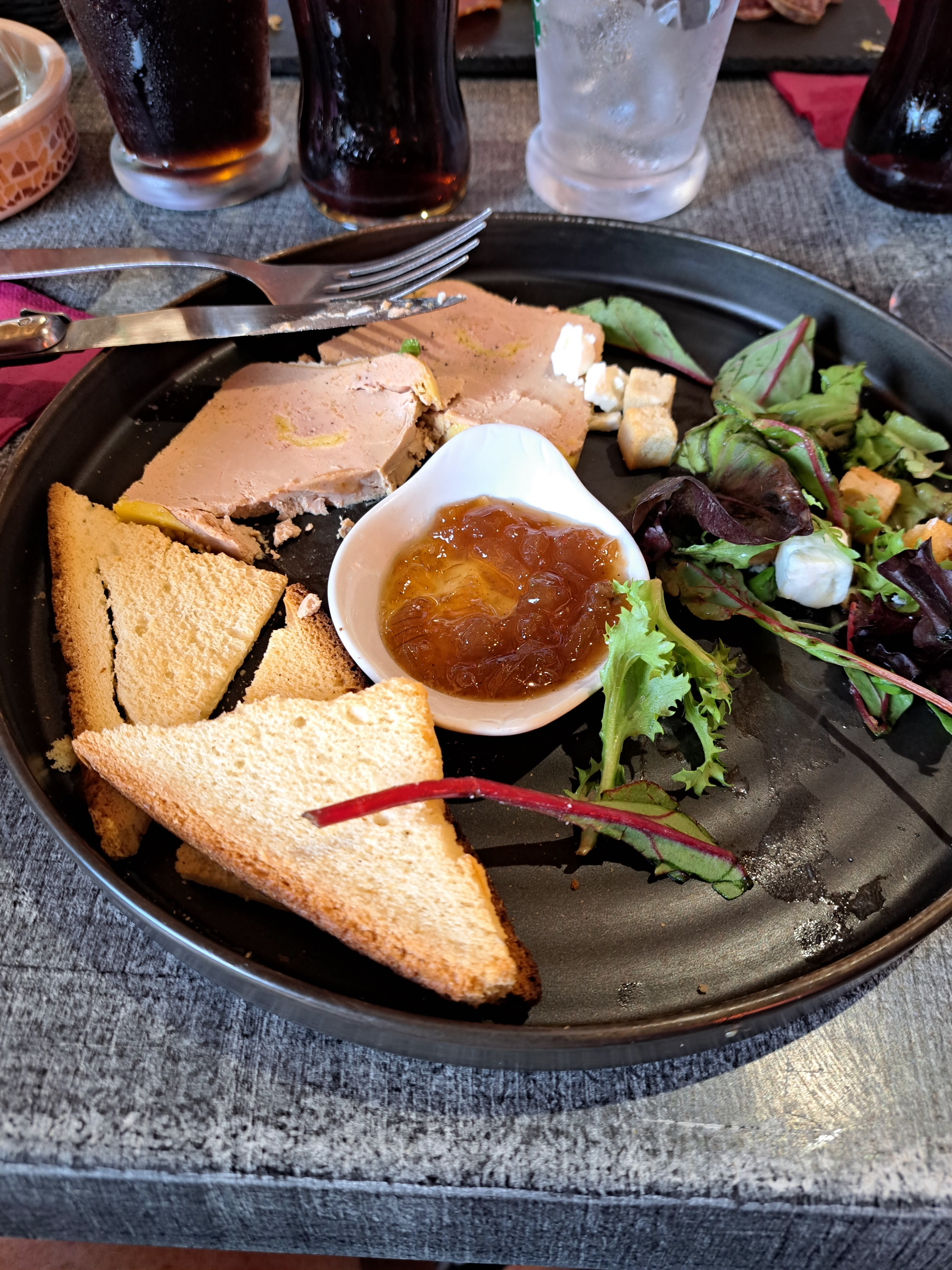 Par une douce soirée d'octobre, nous avons choisi ce restaurant pour sa terrasse et bien-sûr, sa carte. Une jeune personne nous a accueillis, acceptant notre chien pour dîner. De l'eau a même été apportée à notre fidèle compagnon. Nous avons choisi en entrée : moules gratinées, et assiette de charcuterie locale. Délicieux, surtout la charcuterie de la ferme Lalaque. En plat, lotte en cocotte et travers de porc caramélisés (très sympa). Avec apéritif, 2 verres de vin et desserts, 90 euros. Nous avons bien apprécié ce restaurant, nous y reviendrons.