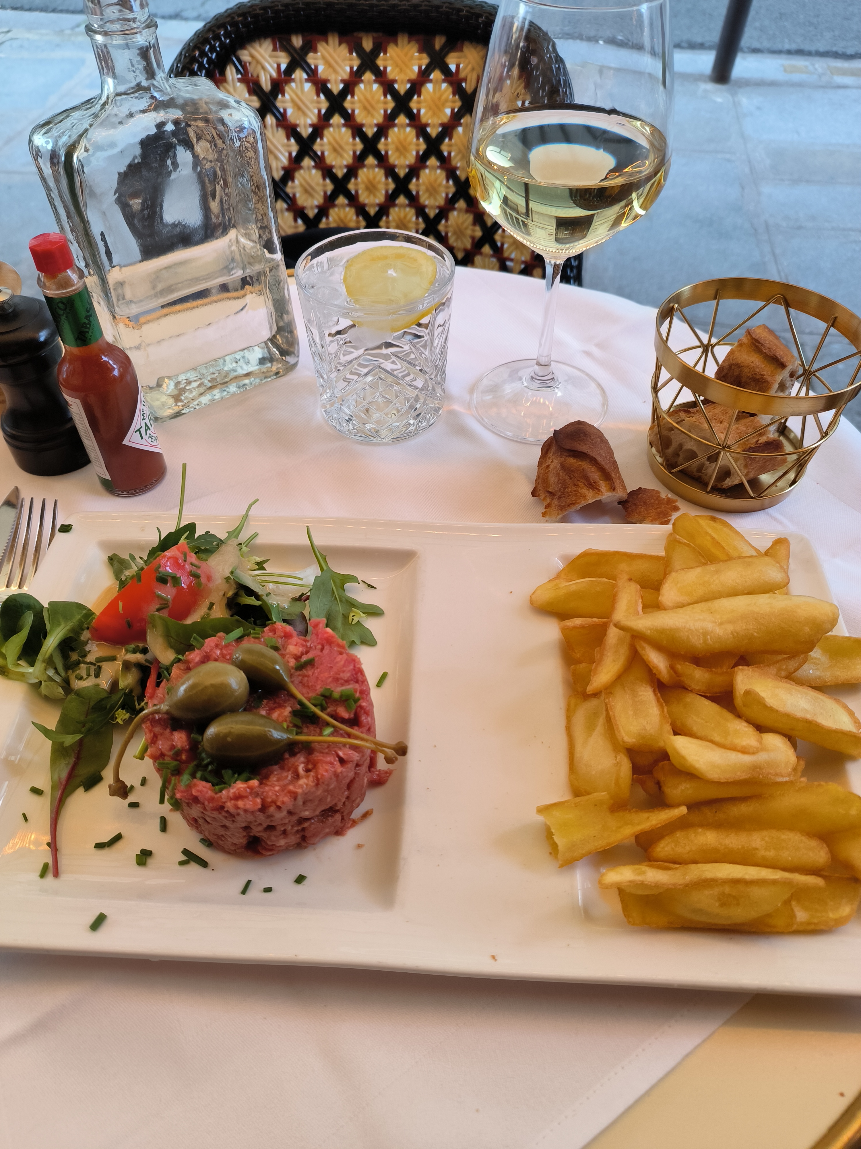 Décor très français. Stylé. Parisien. Parfait. Super service venant, Agréable et très sympa !!! Très bonne salade et frites mayo top !!!! Classique . Je recommande à 100%