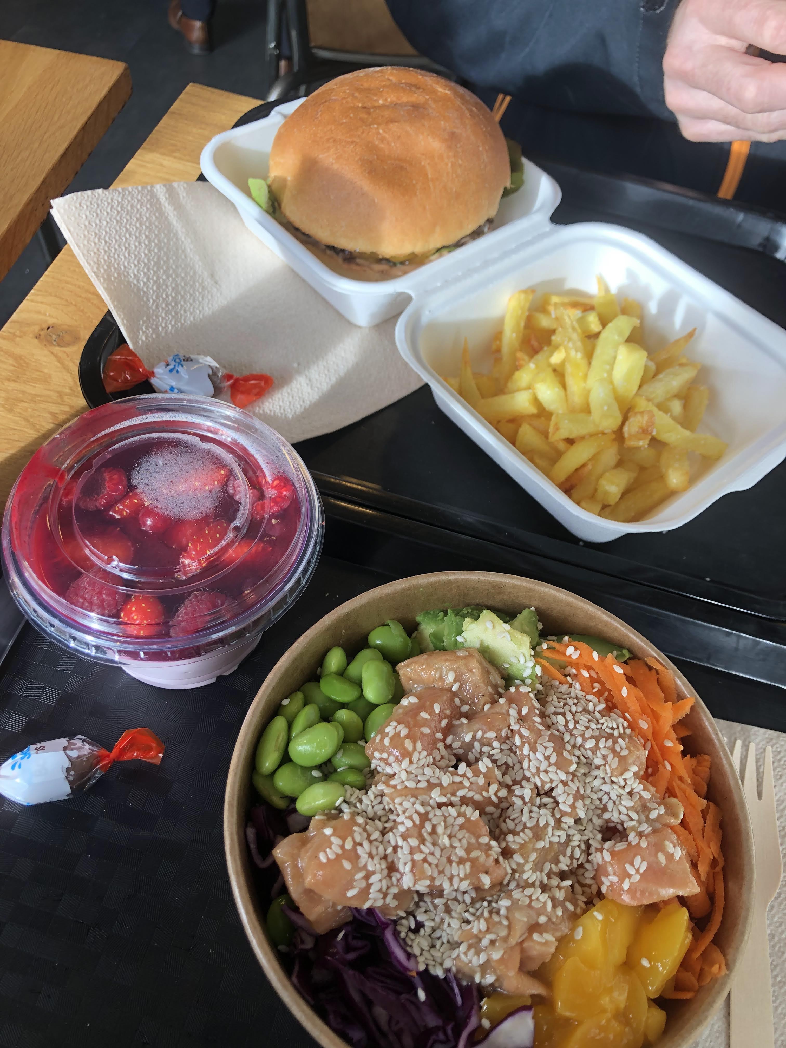 Produits hyper frais et amabilité et accueil garanti ! Poke à recommander. Hamburgers comme à la maison et fait rare frites maison ! Le tout avec un prix raisonnable. Très bon et bel endroit !