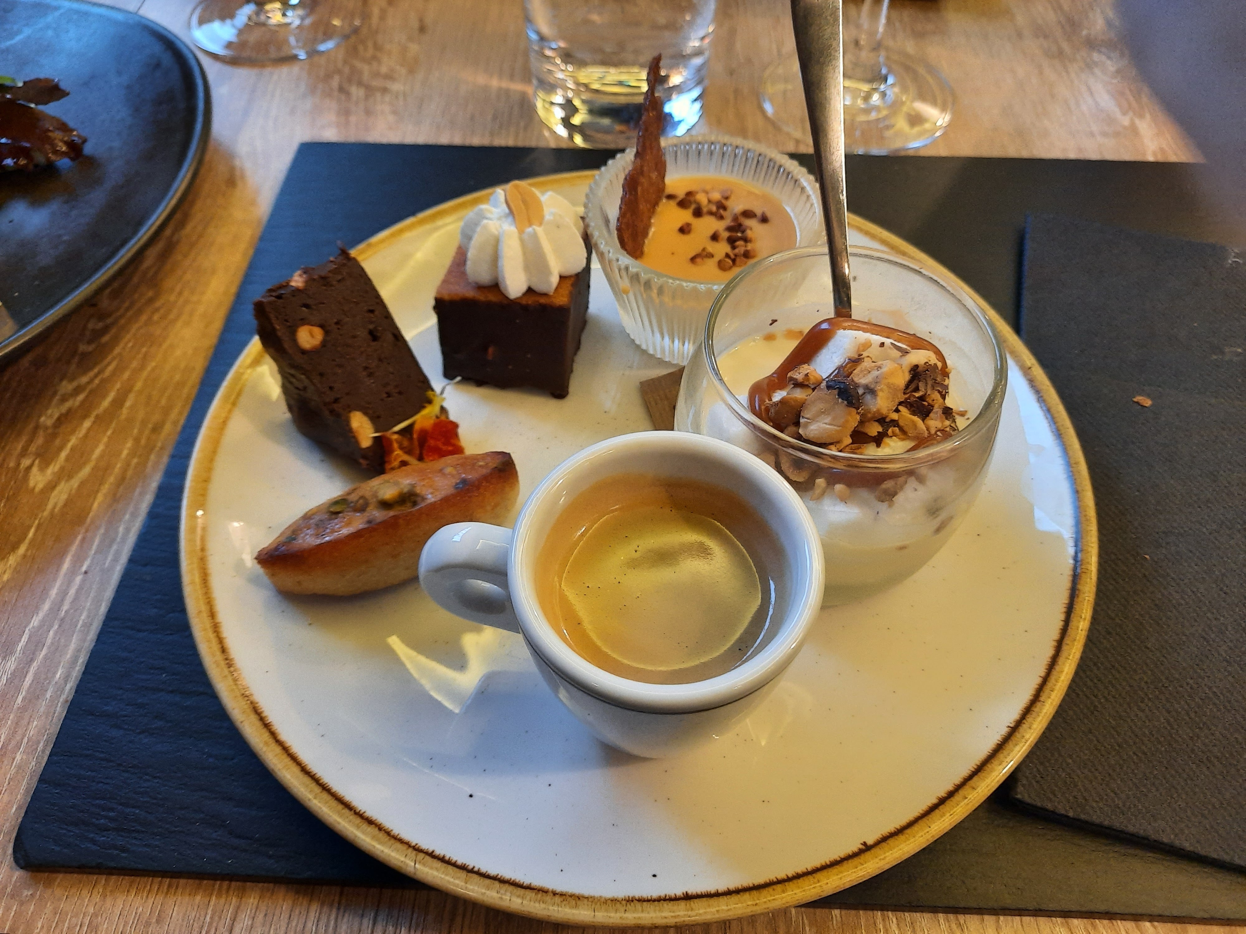Plat du jour excellent, de son contenu à la présentation du plat ( hachis parmentier de poulet avec salade ) et le dessert... Je m'en souviendrai longtemps ( tiramisu noisettes). Sans oublier le service très agréable et souriant. Moi je dis bravo à toute l'équipe 👏