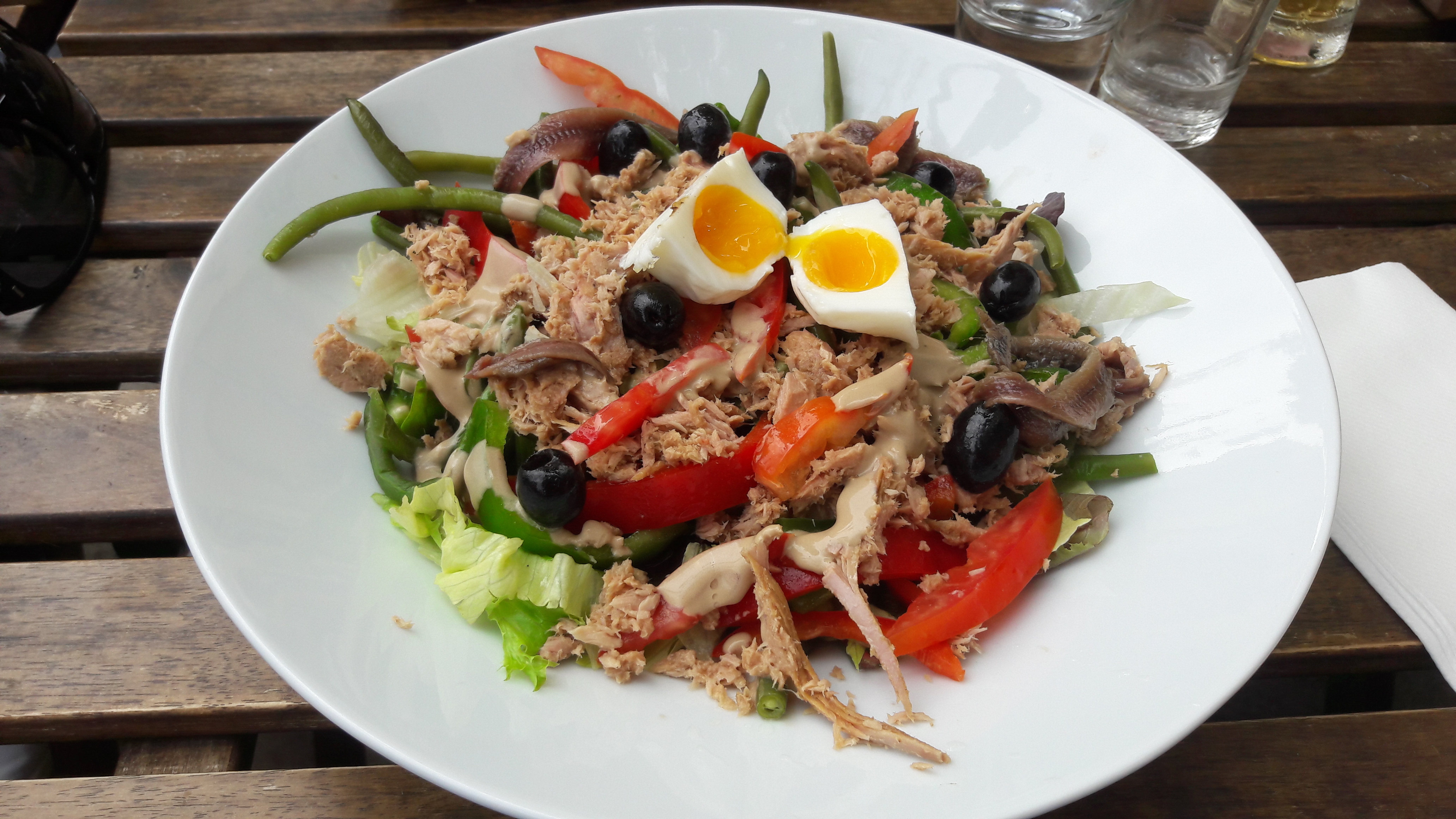 On a pris la salade menu. Très bon et pas lourd. Tout est fait maison même le pain complet proposé à table. La salade était tres bonne et variée, et la joie de lotte cuite à la perfection. Au désert, petit sorbet melon, un régal ! Et une belle surprise pour le café avec des petits biscuits et chocolats mmmmMM. Le personnel est très sympas.