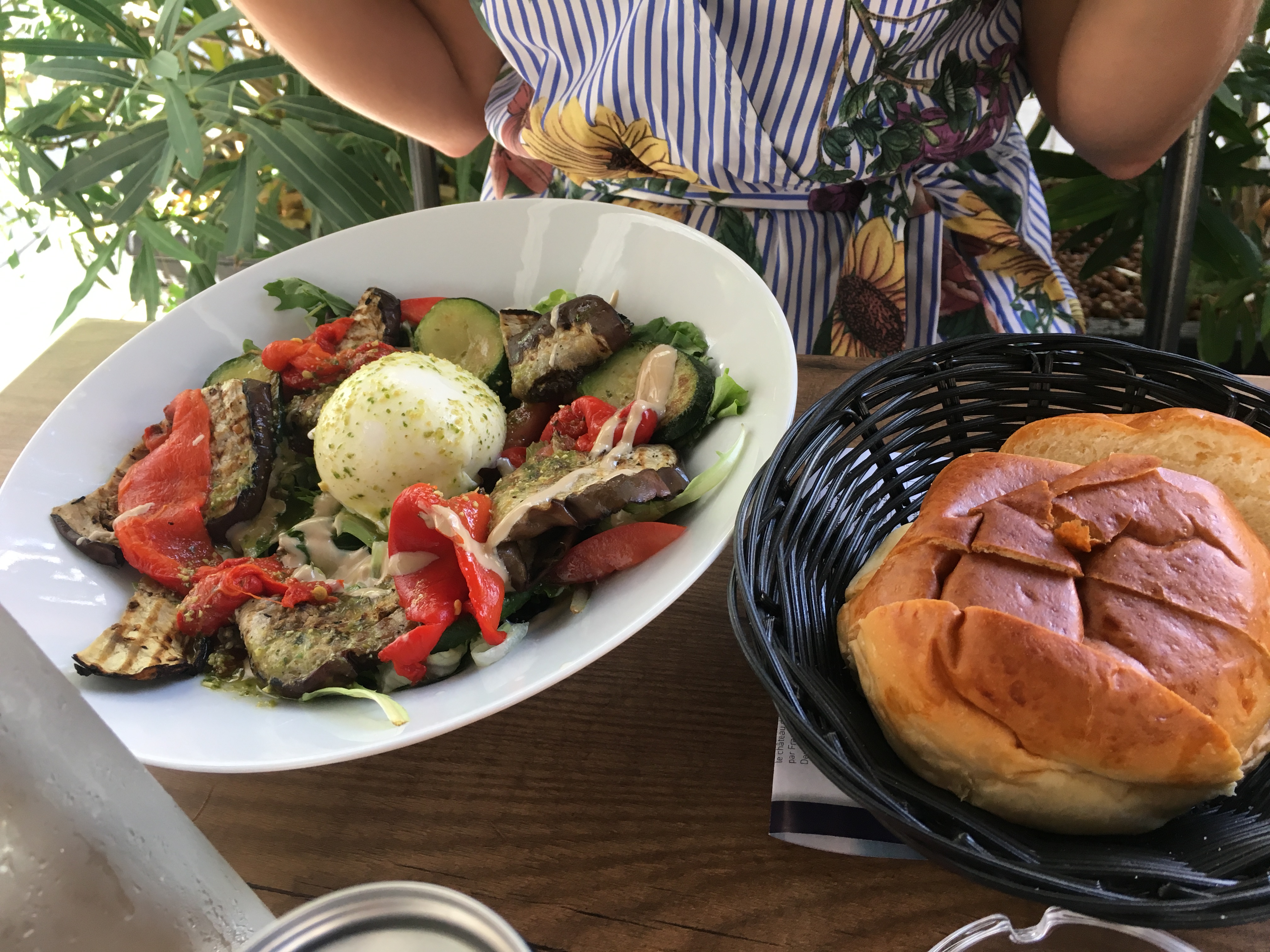 Assis dehors, ambiance agréable ! J'ai eu la salade César et je dois dire que c'est l'une des meilleures que j'ai eu. Le personnel était adorable, je parlais français avec eux mais ils maîtrisaient également l'anglais car je les ai entendus avec d'autres clients. De plus, je ne saurais trop recommander le tiramisu au Nutella !