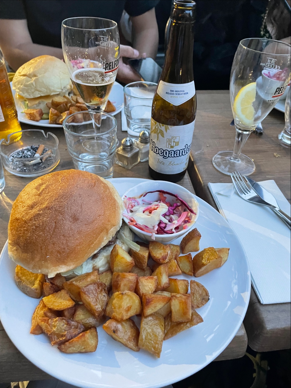 Belle ambiance, excellent service, grand choix et l'un des meilleurs hamburgers que j'ai jamais mangé. Les pommes de terre étaient incroyablement croustillantes et délicieuses. Le dessert composé de cheesecake et de tiramisu était de 10/10, clôturant magnifiquement tout le repas. Je reviendrais absolument ici.