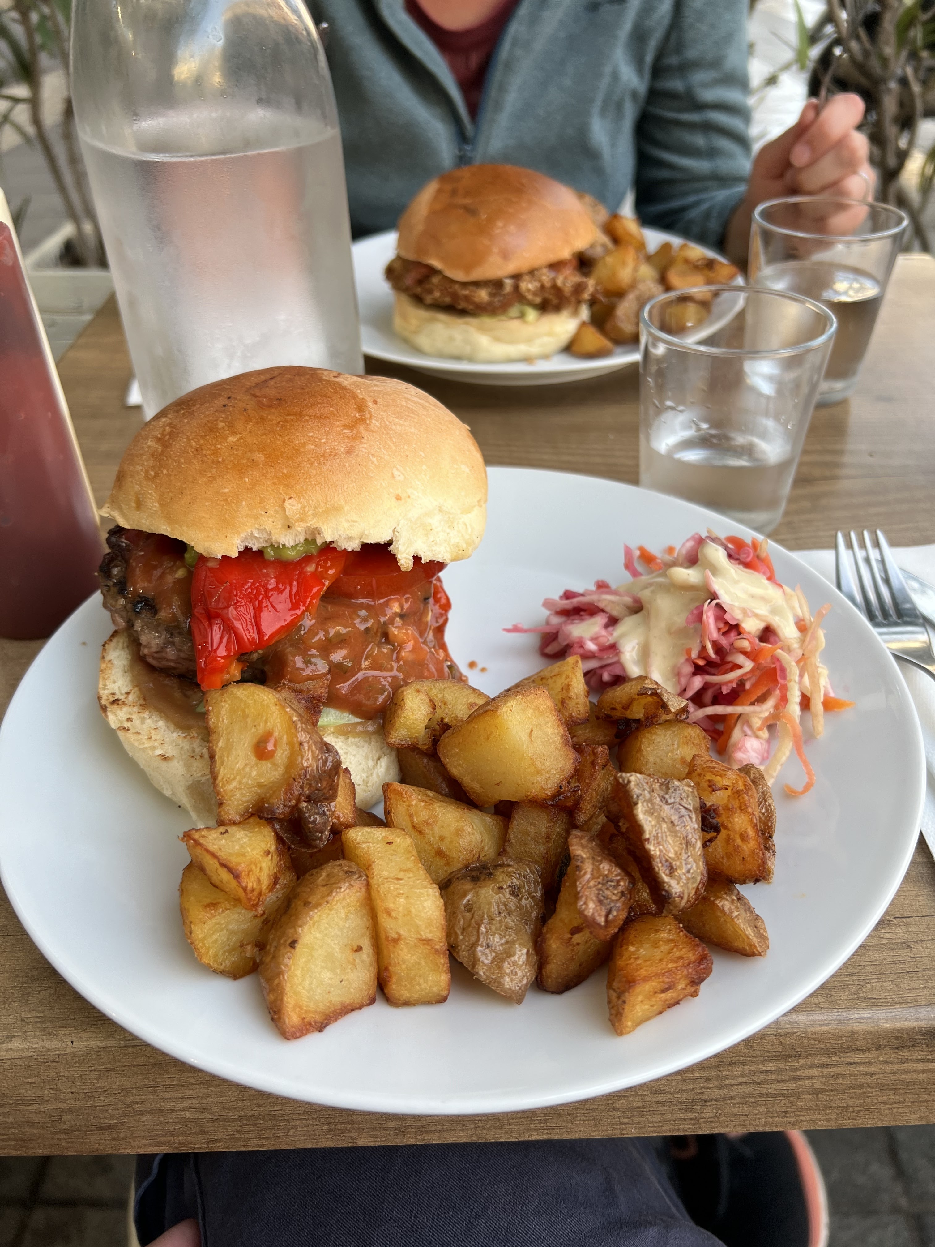 Le meilleur burger et pommes de terre que j'ai jamais mangé. Les prix sont un peu touristiques mais c'était tellement délicieux ! Le hamburger végétarien utilisait des légumes et du fromage au lieu d'une galette végétarienne rafraîchissante. Si jamais je reviens à Marseille, je viendrai certainement ici !