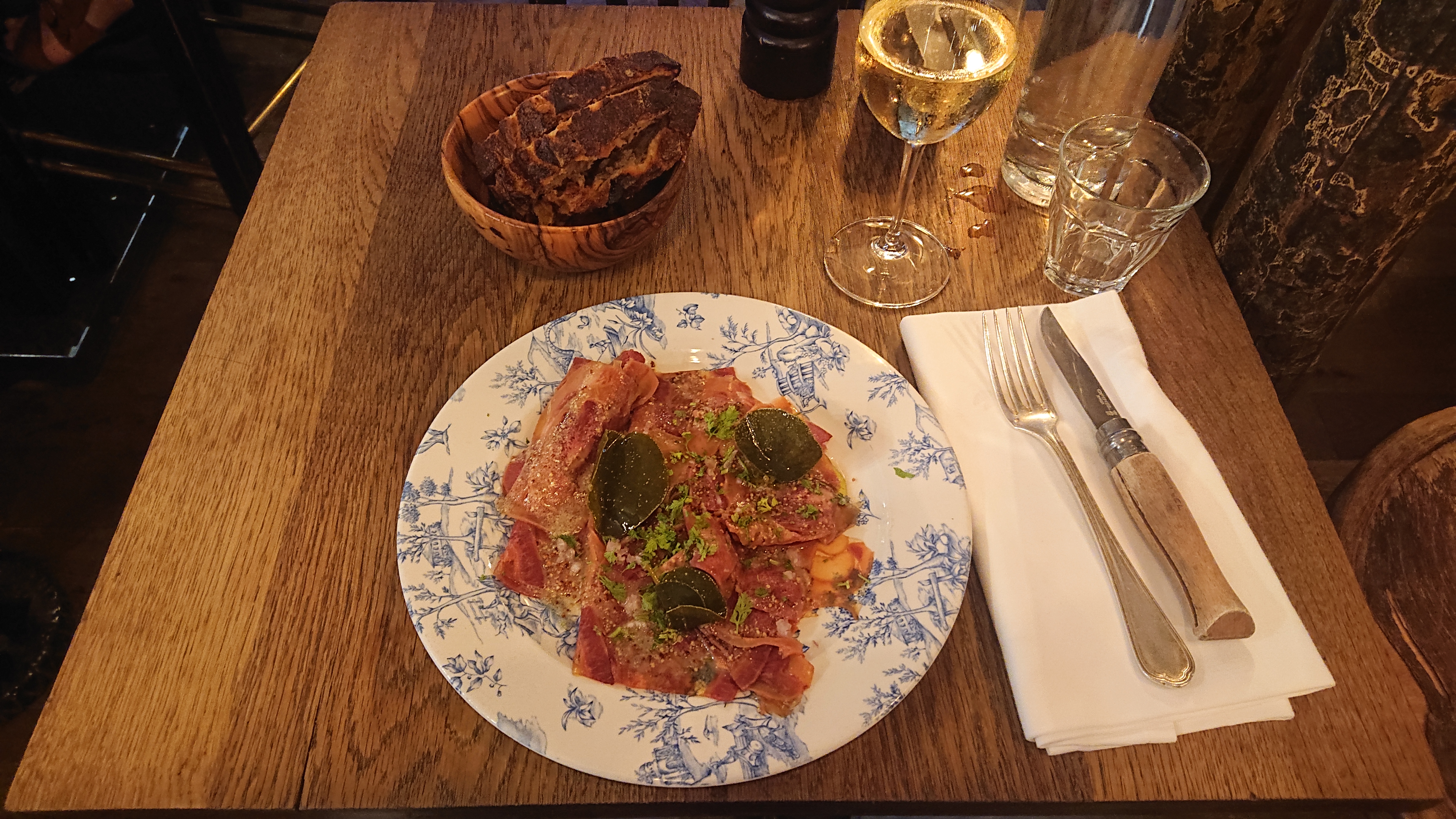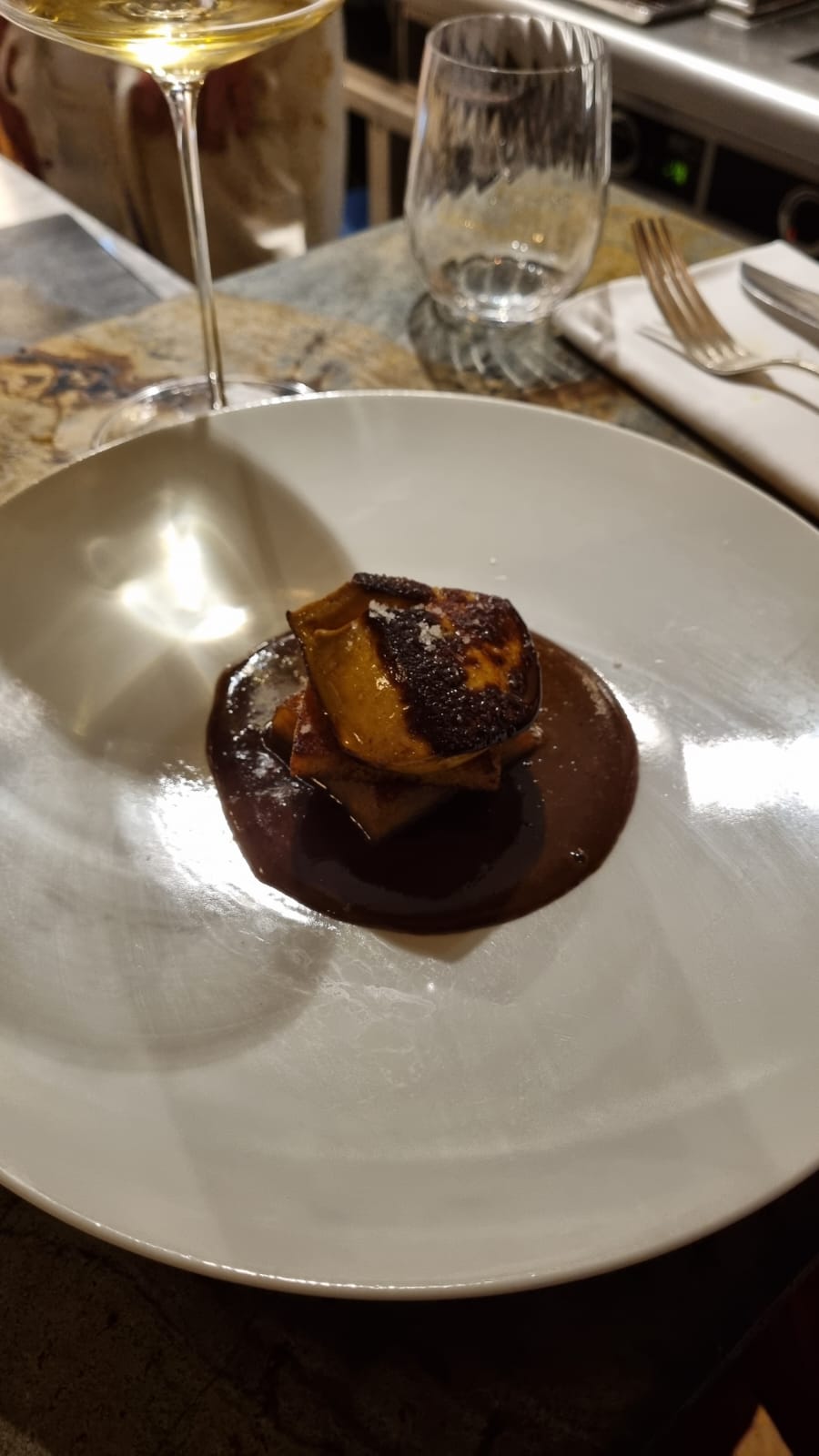 Tout était impeccable!! Le vin, la nourriture d’extrême qualité mais aussi le service. La décoration est authentique. Meilleur moment du week-end!!! Adresse a retenir.