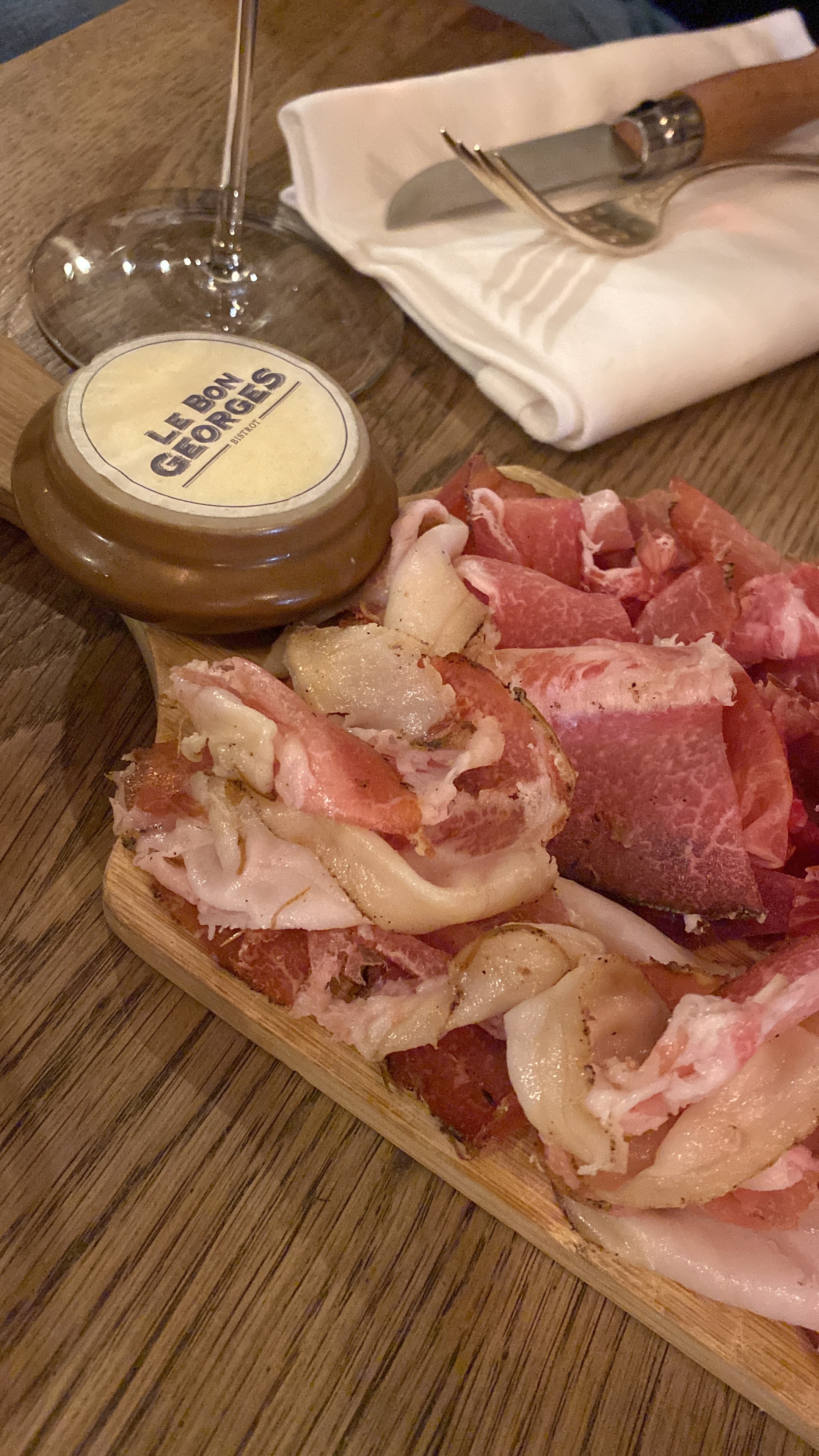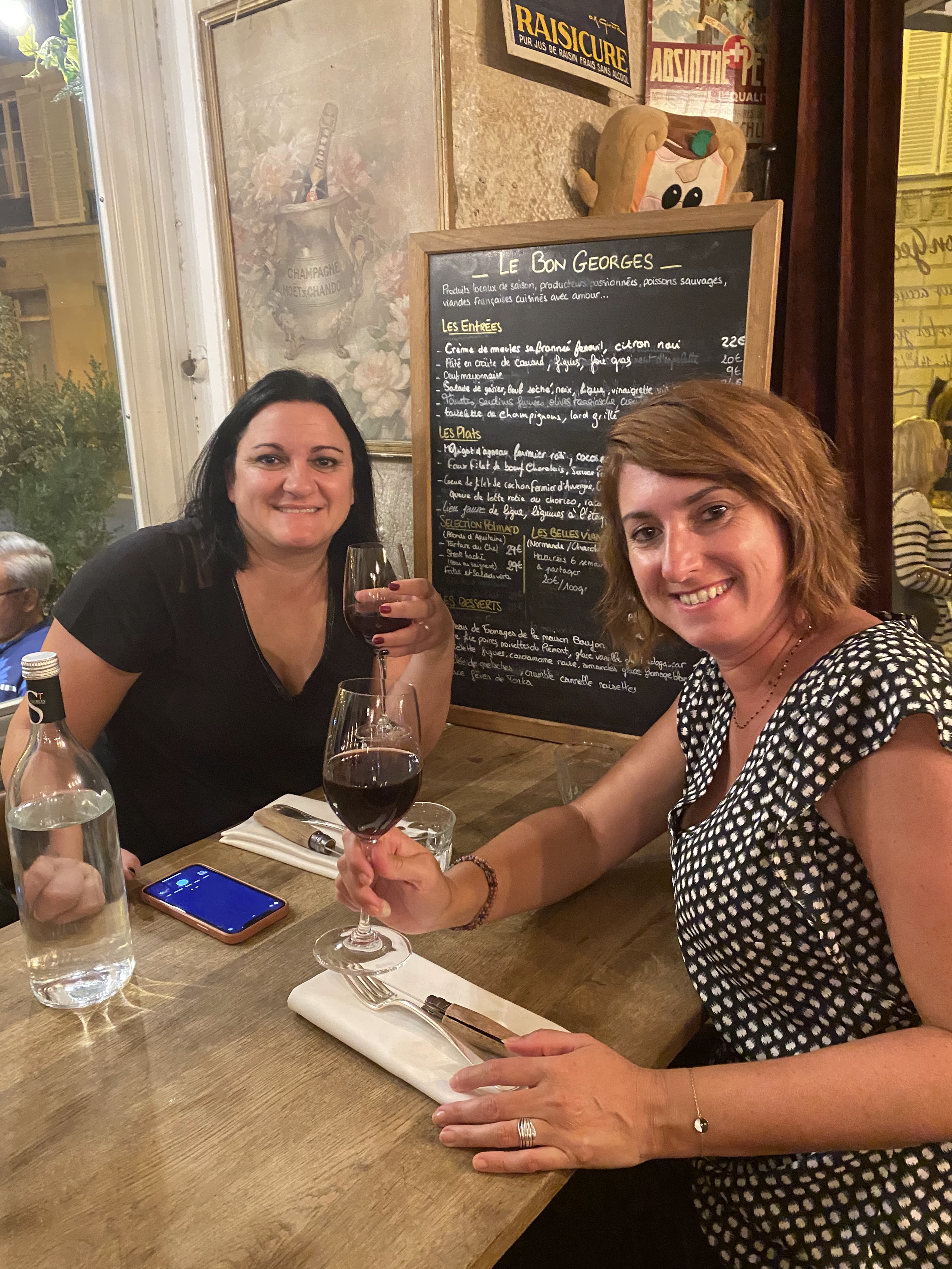 There are so many reasons to go to Le Bon Georges…. The food, the service… everything. It was recommended by a very special person, the manager Sonia at our forever hotel, Astotel George, and she was spot on. The staff lines up outside every evening at 7 at the corner of the outdoor seating area and they walk the first guests in. It’s adorable. They are ALL so nice and sweet and professional, yet super friendly, and make the experience even that much better. I will name them all… Benoit the owner, Clement, Jeremy, Amelie, Gabin, Thomas, Maud, Thibaut, and Bruno. I hope I did not forget anyone because they are all amazing, and I asked that they write their names so I can give them all “Kuddos” on reviews. The food is just extraordinary, and get the Chocolate Mousse at the end or you are doing yourself a disservice. I can’t wait to go back. ***** Il y a tant de raisons d'aller au Bon Georges…. La nourriture, le service… tout. Il a été recommandé par une personne très spéciale, la directrice Sonia de notre hôtel pour toujours, Astotel George, et elle avait tout a fait raison. Le personnel fait la queue tous les soirs à 7 heures au coin de la terrasse et fait entrer les premiers invités. C'est adorable. Ils sont TOUS si gentils, fabuleux, aimables et professionnels, et rendent l'expérience encore meilleure. Je les nommerai tous… Benoit le propriétaire, Clément, Jérémie, Amélie, Gabin, Thomas, Maud, Thibaut et Bruno. J'espère que je n'ai oublié personne car ils sont tous incroyables, et j'ai demandé qu'ils écrivent leurs noms afin que je puisse leur donner a tous des Kuddos sur les critiques. La nourriture est tout simplement extraordinaire, et commandez la mousse au chocolat à la fin ou vous vous rendez un mauvais service. J'ai hâte d'y retourner. TOP!!
