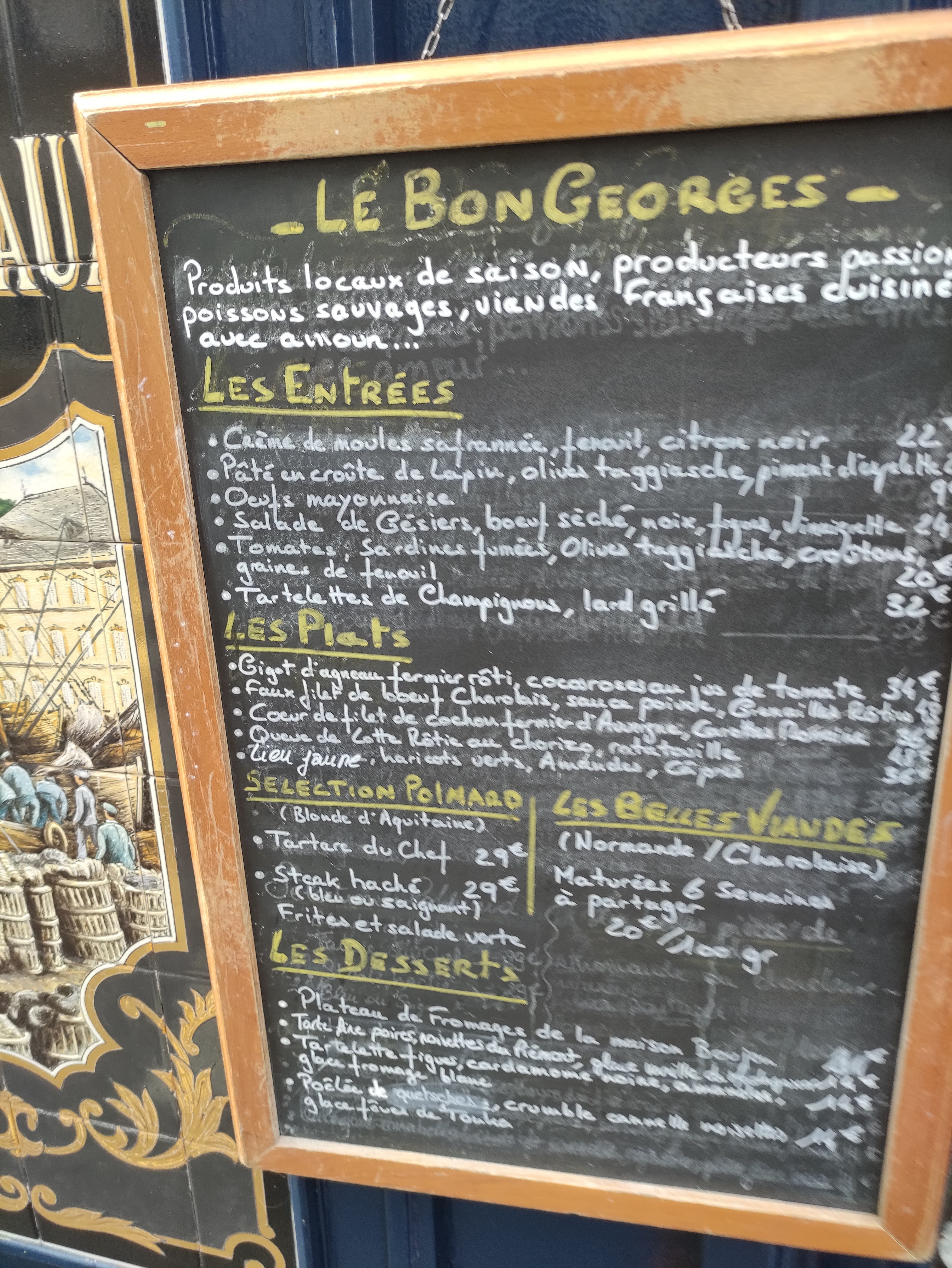 Cuisine et produits de très grandes qualités. Un personnel professionnel, impeccable et de bon conseils. Une cave exceptionnelle avec des vins premiers prix raisonnables et de grande qualités ! Quand aux autres je ne vous dis pas les merveilles … L’ambiance ancienne authentique et très chaleureuse. Vraie bistrot parisien quoi 😉 J’y reviens régulièrement pour des occasions spéciales ou avec amis chers ♥️ Voilà merci Le Bon Georges et à toutes l’équipe 👍