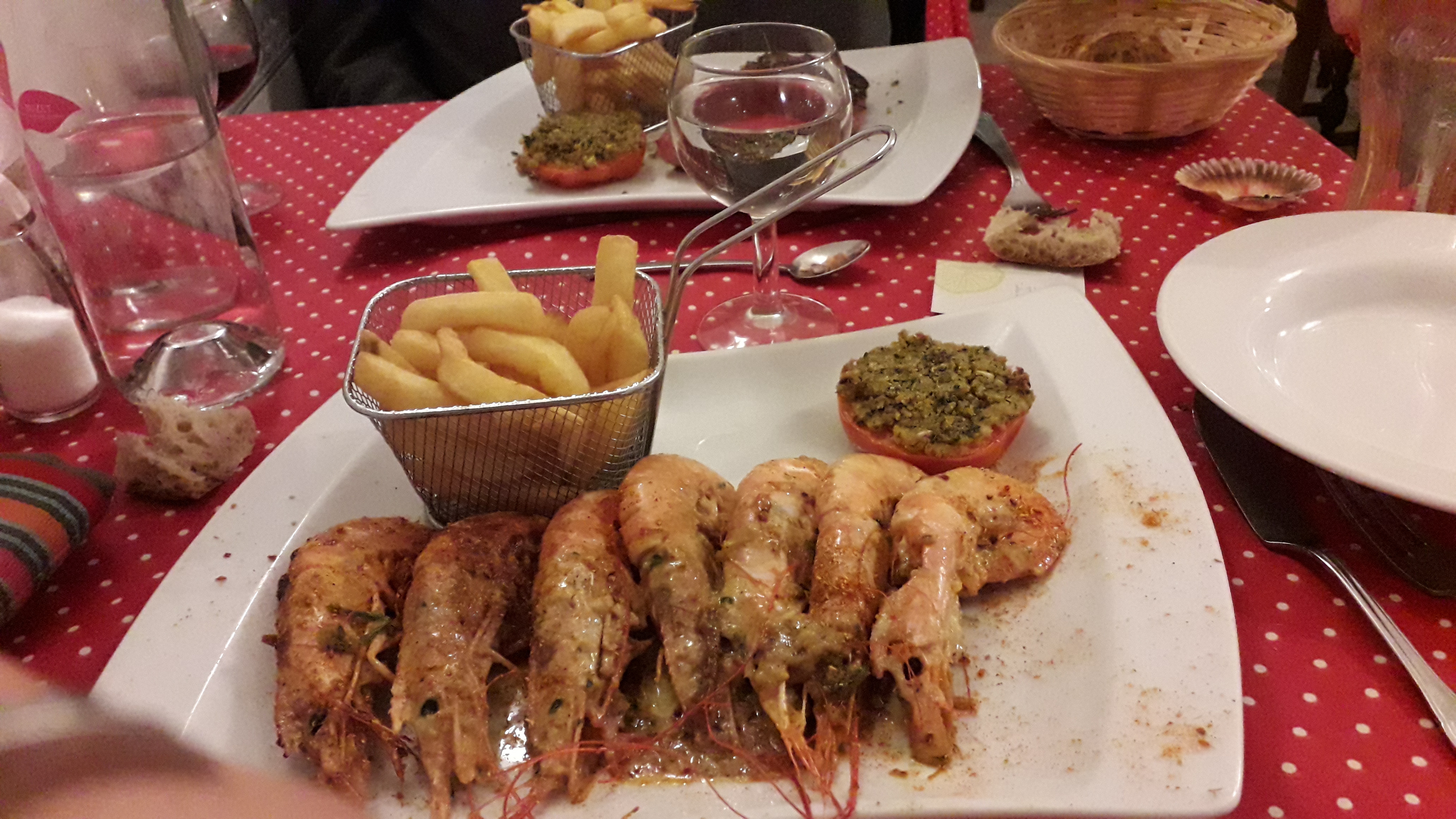 Petite pause déjeuner sur la route des vacances, excellente découverte, j’ai rarement manger un plat aussi bon, la brochette de gambas et noix de saint de Jacques un délice 🤤😱