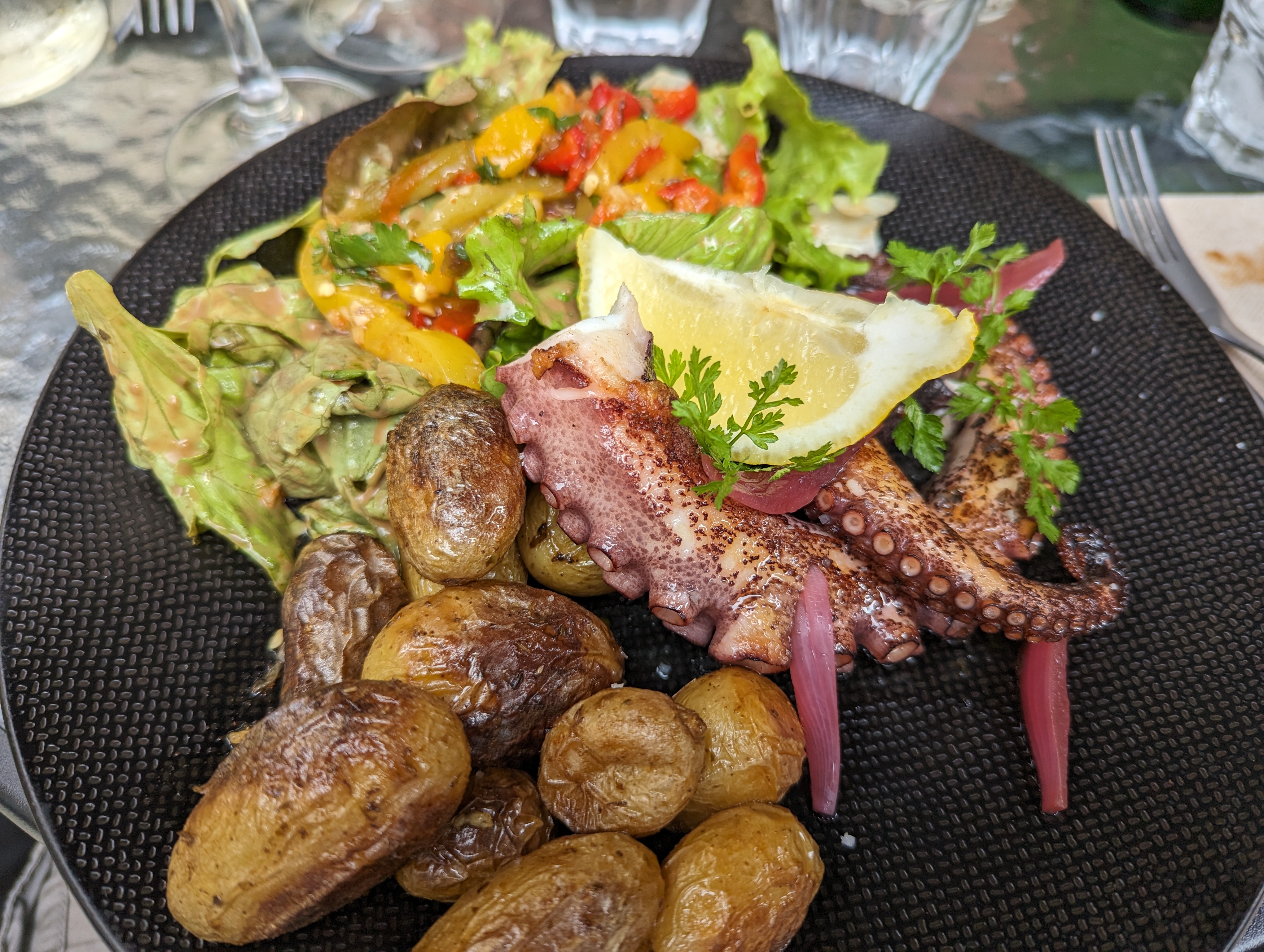 Un régal ! Tout était beau/bon. Nous avons pris entrées/plats. Rien à redire. Le poulpe, un délice !