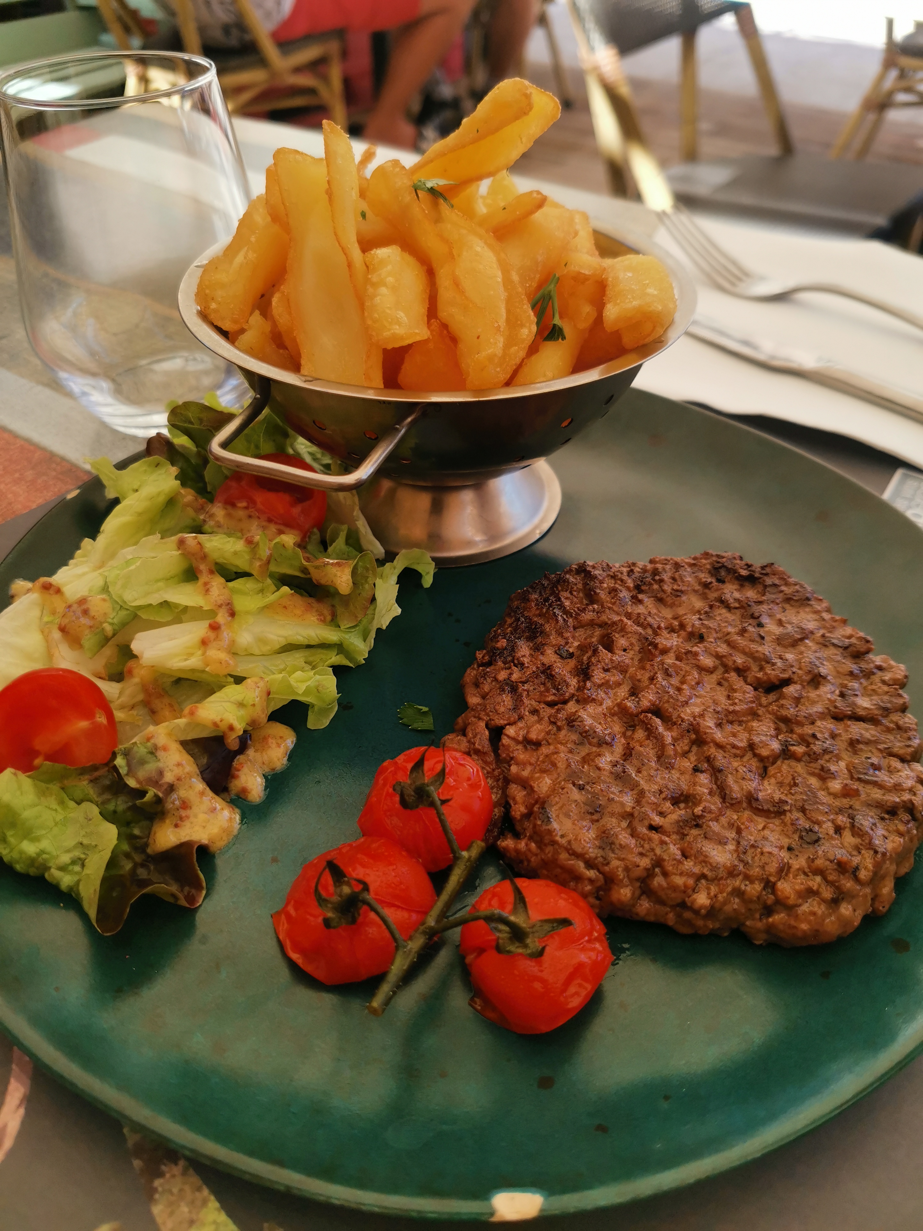 Cuisine simple mais goûteuse. Nous avons pris le hamburger chèvre miel ainsi que la salade repas au chèvre. Je retire 1 étoile pour le cadre. Nous avons avons mangé à l intérieur et la salle mériterait un petit rafraîchissement ainsi que les toilettes qui sont vétustes.