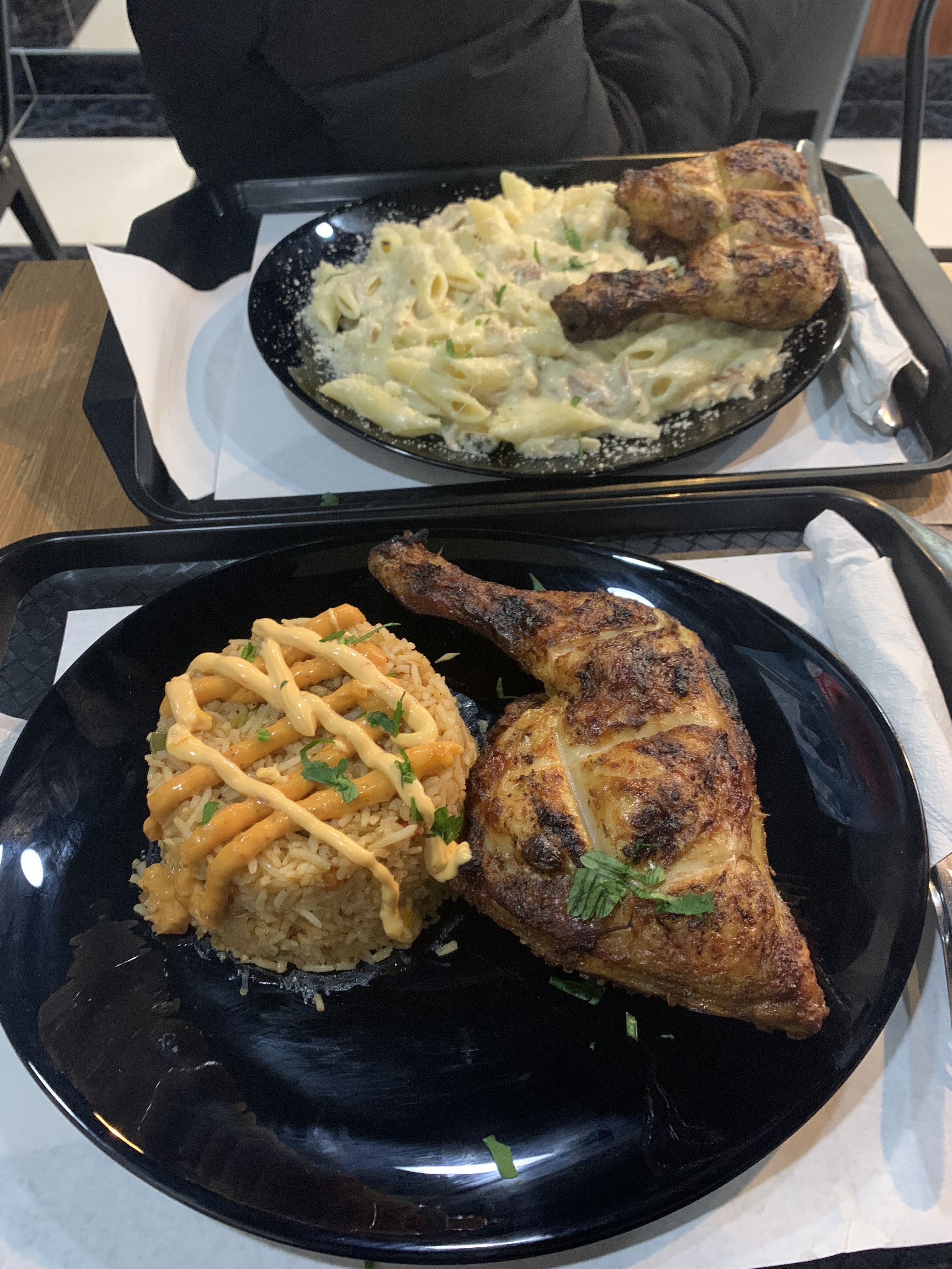 Personnel accueillant et agréable le poulet est bien cuit un bon goût ! Endroit pas chère et sympa je recommande !!