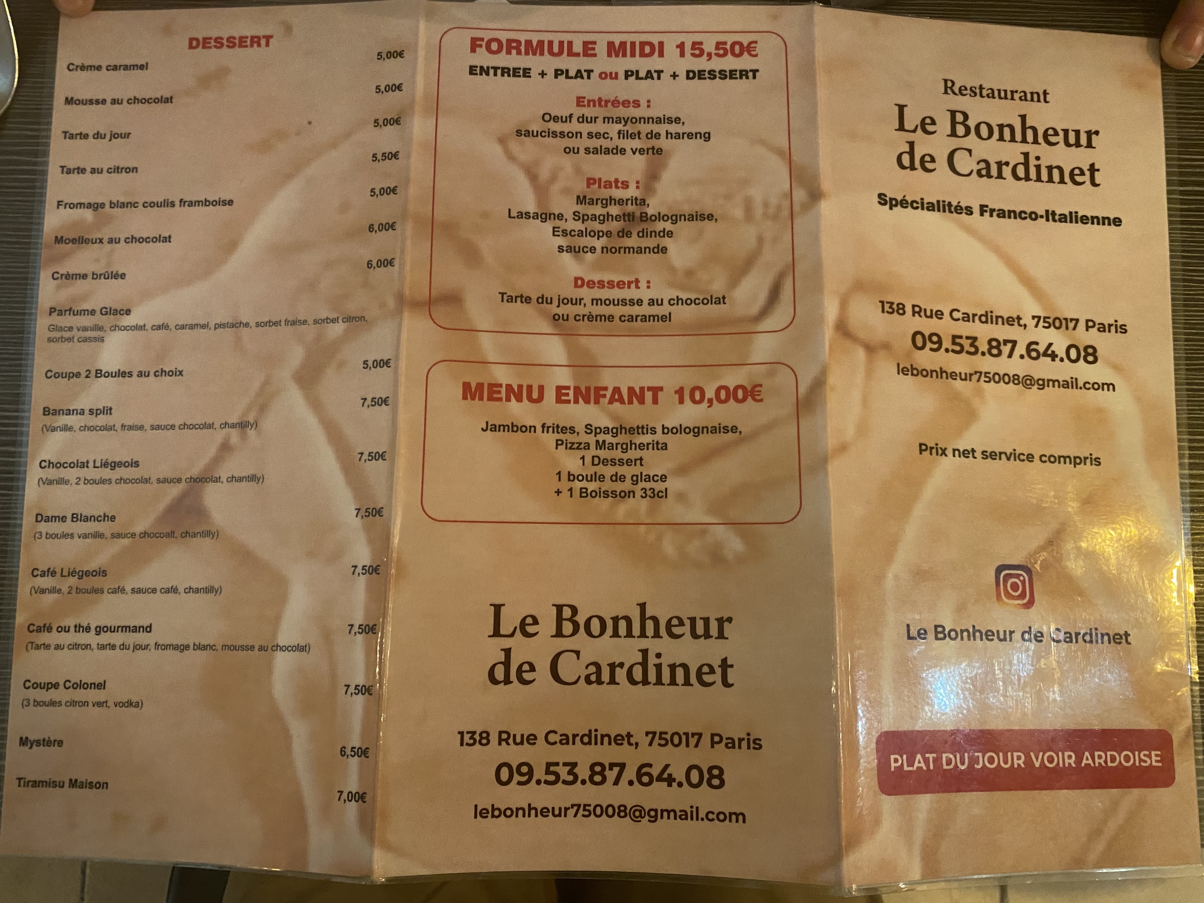 Très bon restaurant, de passage à Paris j'ai trouvé l'ambiance très sympathique, le personnel très sympa et le prix est très correct ! Je recommande la mousse au chocolat 👌🏻