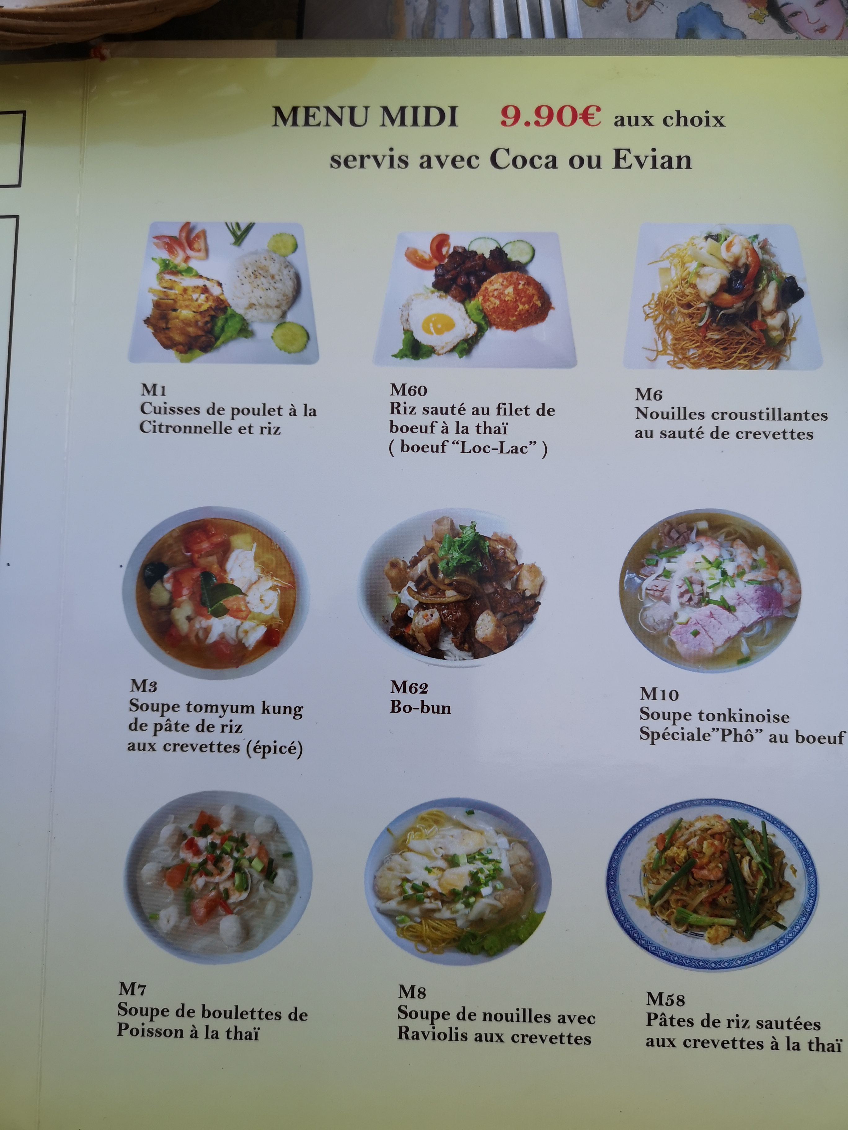 Super restaurant proche de l'hôpital Henri Mondor. Enfin un bon restaurant asiatique à l' ancienne, avec des classiques et d'autres plats plus du du moment du type bo-bun, lok-lak et un peu de japonais avec les menus classiques (sushis, brochettes...(que poisson niveau brochette)). Même au niveau de l'accueil, les dames sont très souriantes et gentilles. Nous avons pris une soupe raviolis crevettes, au top. Idem pour le travers de porc sel poivre (enfin le vrai goût de l'époque, ça fait plaisir). Bref, super petit restaurant, rien à redire. Niveau salle, c'est petit au rez-de-chaussée (environ 15 places) mais à l'étage c'est environ le double.