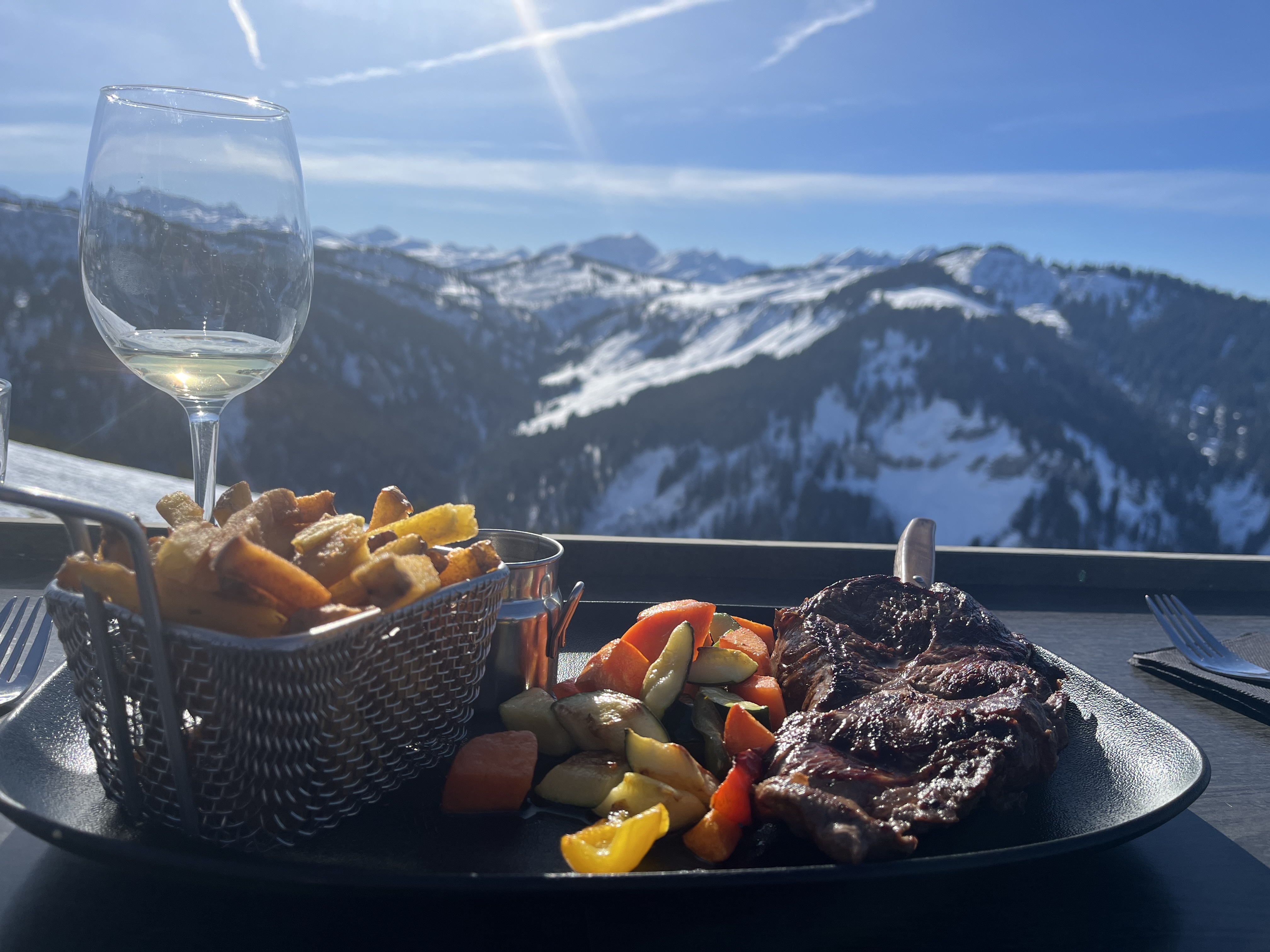2 repas en terrasse avec une vue imprenable! Sylvain s'est occupé de nous aux petits oignons 👌excellent service et bon prix correct pour manger sur les pistes. Il est certain que nous y retournerons 😁