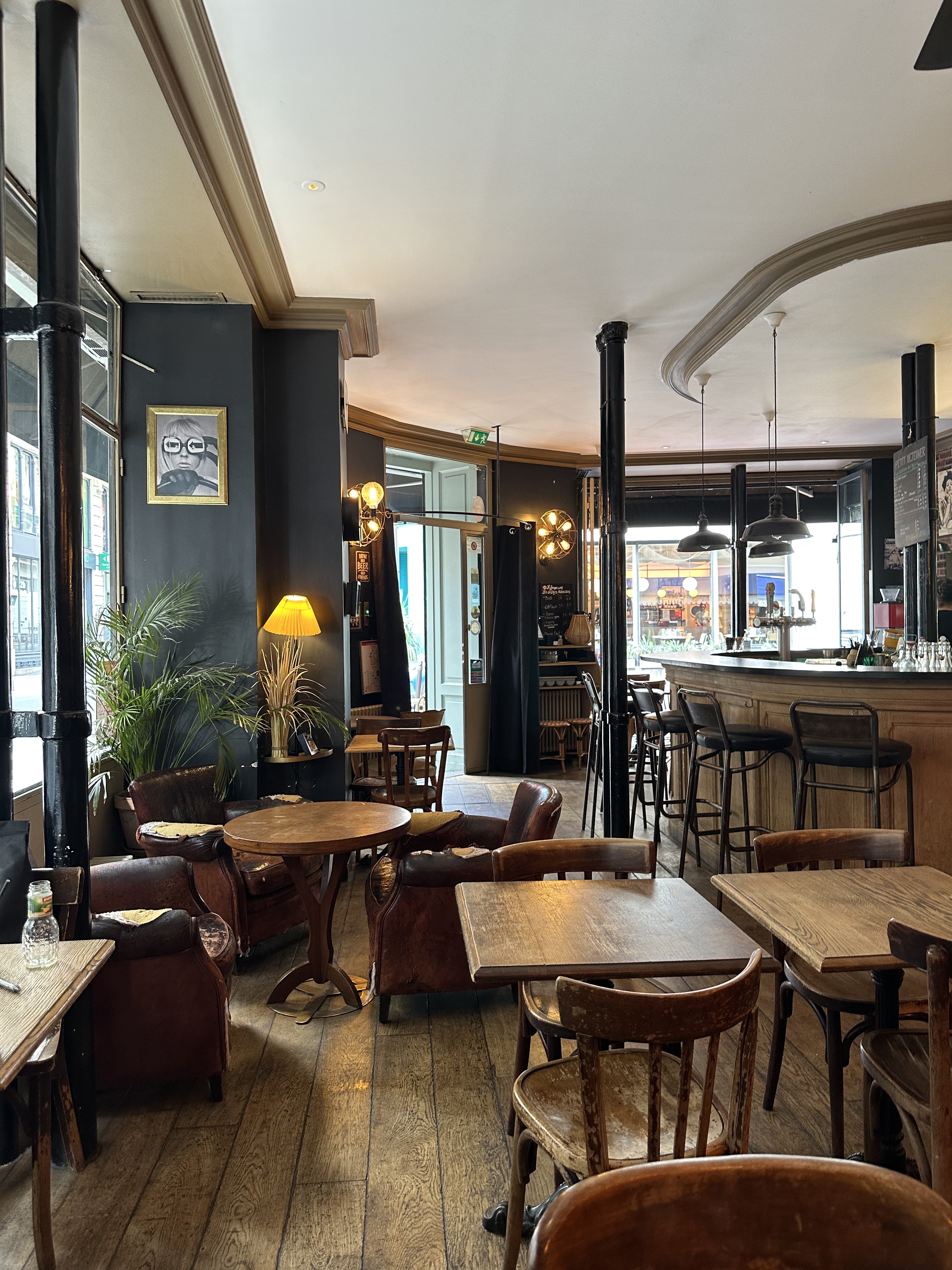 Petit café sympa, terrasse qui donne sur rue et devant feu de signalisation. Interieur joliment décoré, style vintage. Personnel sympathique et souriant. Prix très classiques pour ce quartier, ni trop cher, ni bon marché. Jolie carte classique aussi. Ouvert assez tard le week-end. Un bar très classique mais agréable , idéal pour boire un coup entre amis ou en couple.