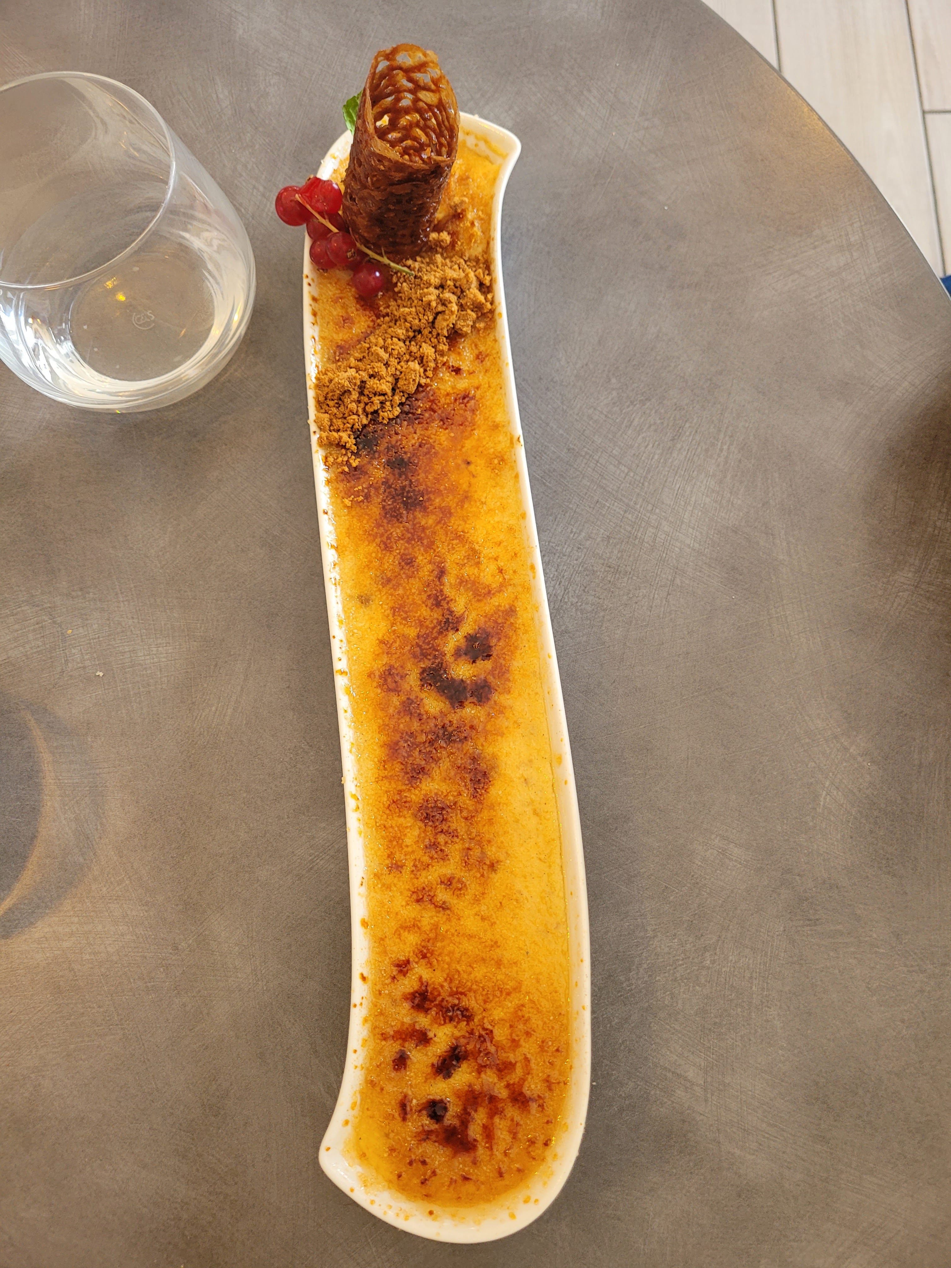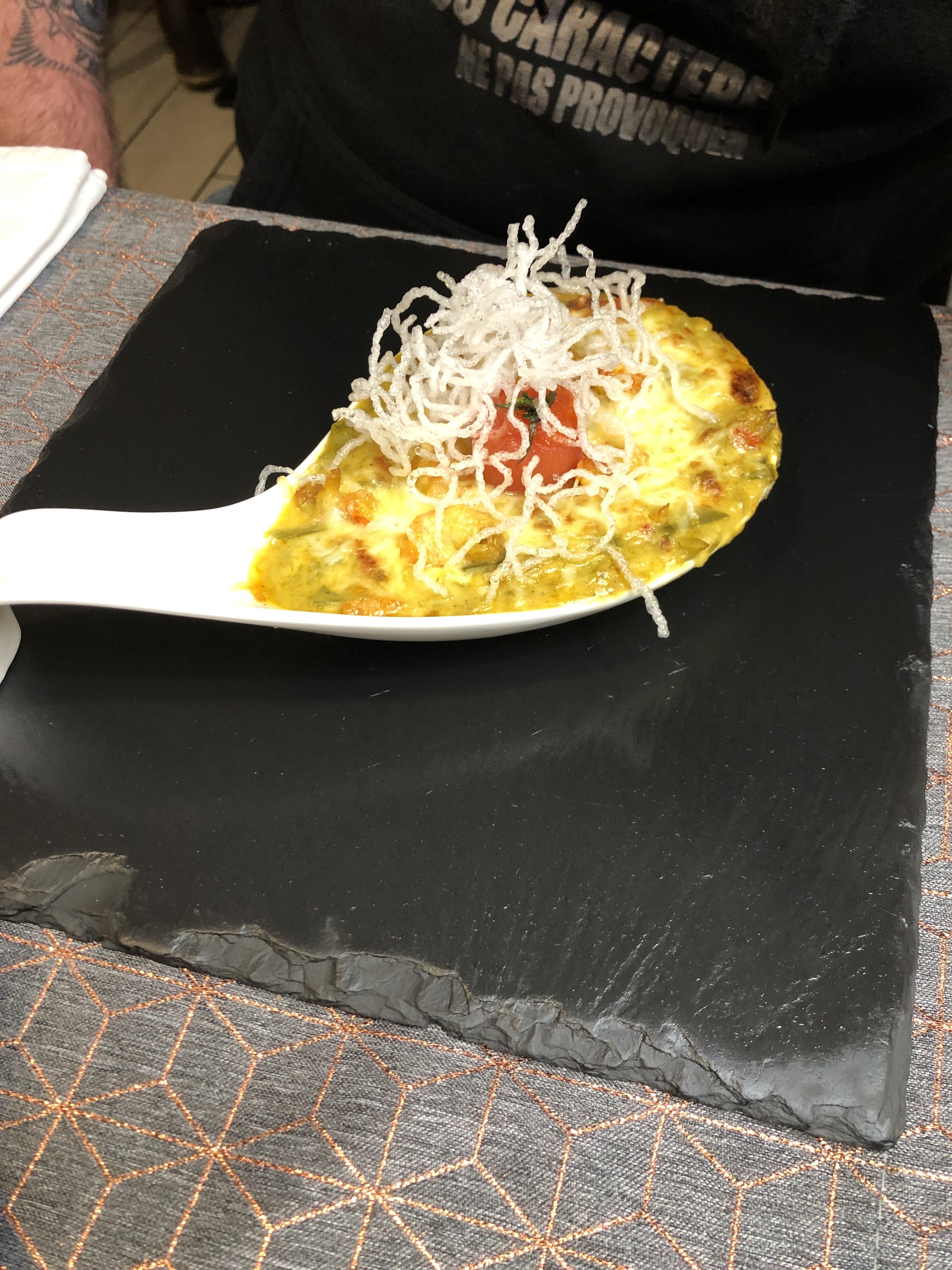 Au top un plaisir pour les papilles et les yeux !! Merci ! Tout était savoureux les profiteroles le colonel et la crème brûlée, le riz de veau, les st jacques et le canard succulent , pour l'entrée nous avions pris la cassolette de fruits de mer au curry. Nous reviendrons c'est sur. Le personnel souriant, au petit soin, nous avons passé un super moment en famille.