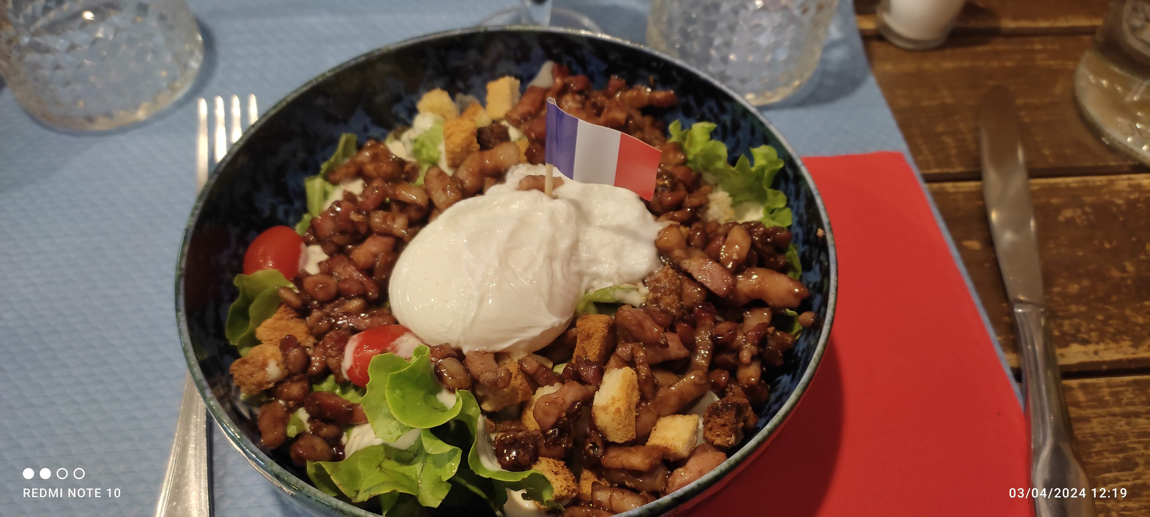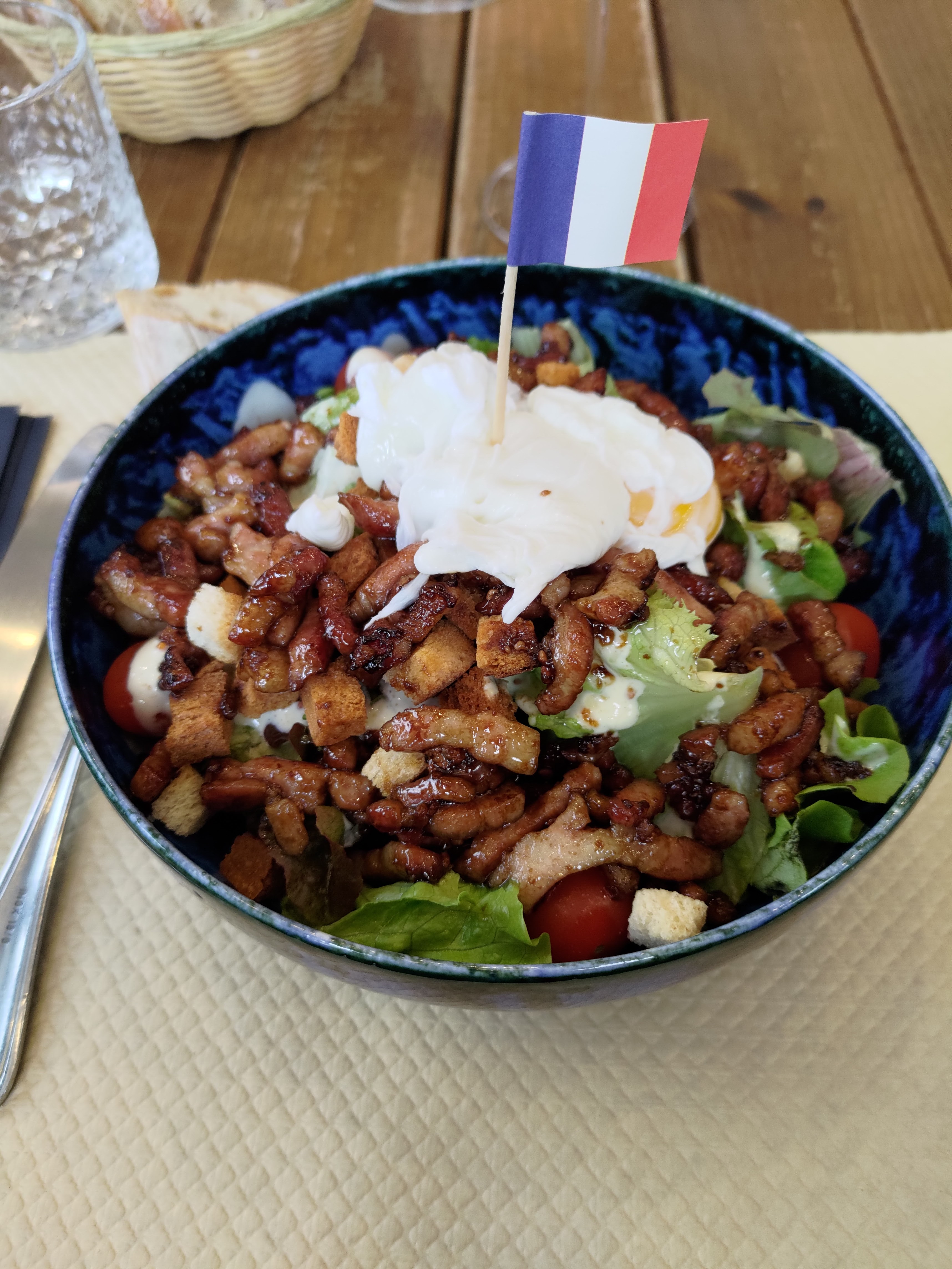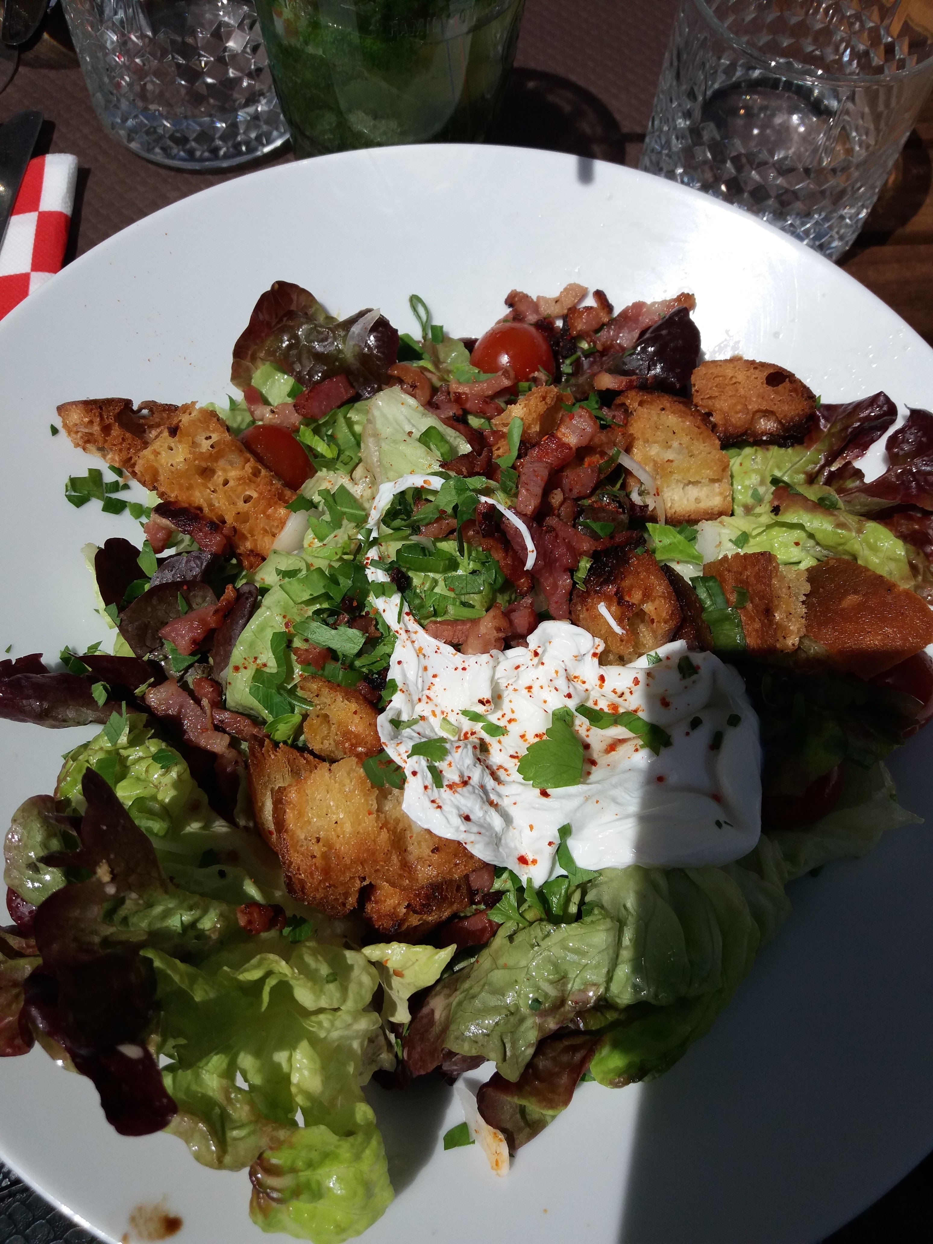 Très bonne salade lyonnaise. Le dessert était délicieux. Je recommande.