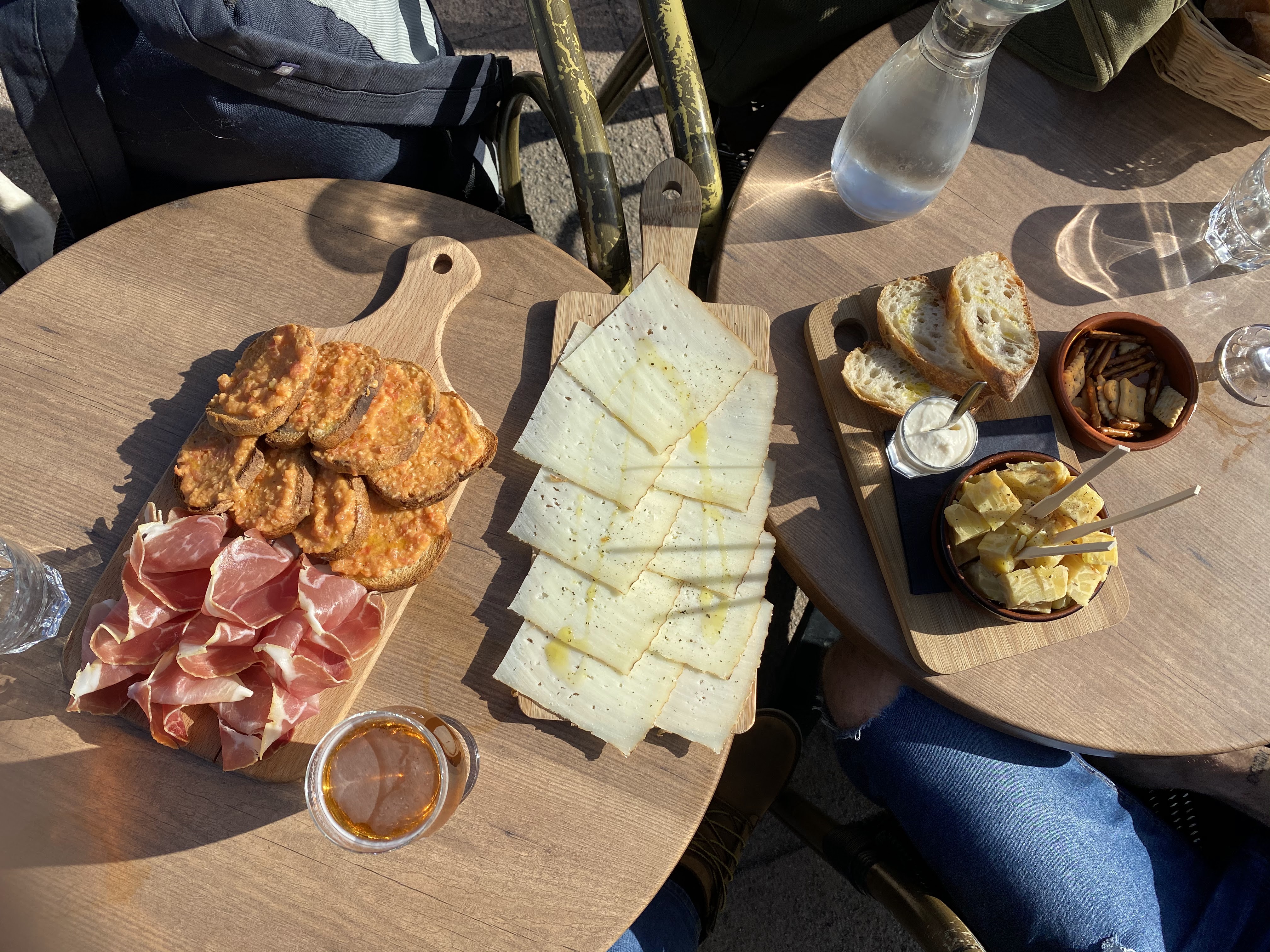 En terrasse, les pieds quasiment sur les galets, nous nous sommes régalés d'une planche catalane et de quelques tranches de manchego. Les planches étaient copieuses, le tarif raisonnable pour un bord de mer et cerise sur le gâteau le personnel fort sympathique. Nous y repasserons c'est sur !