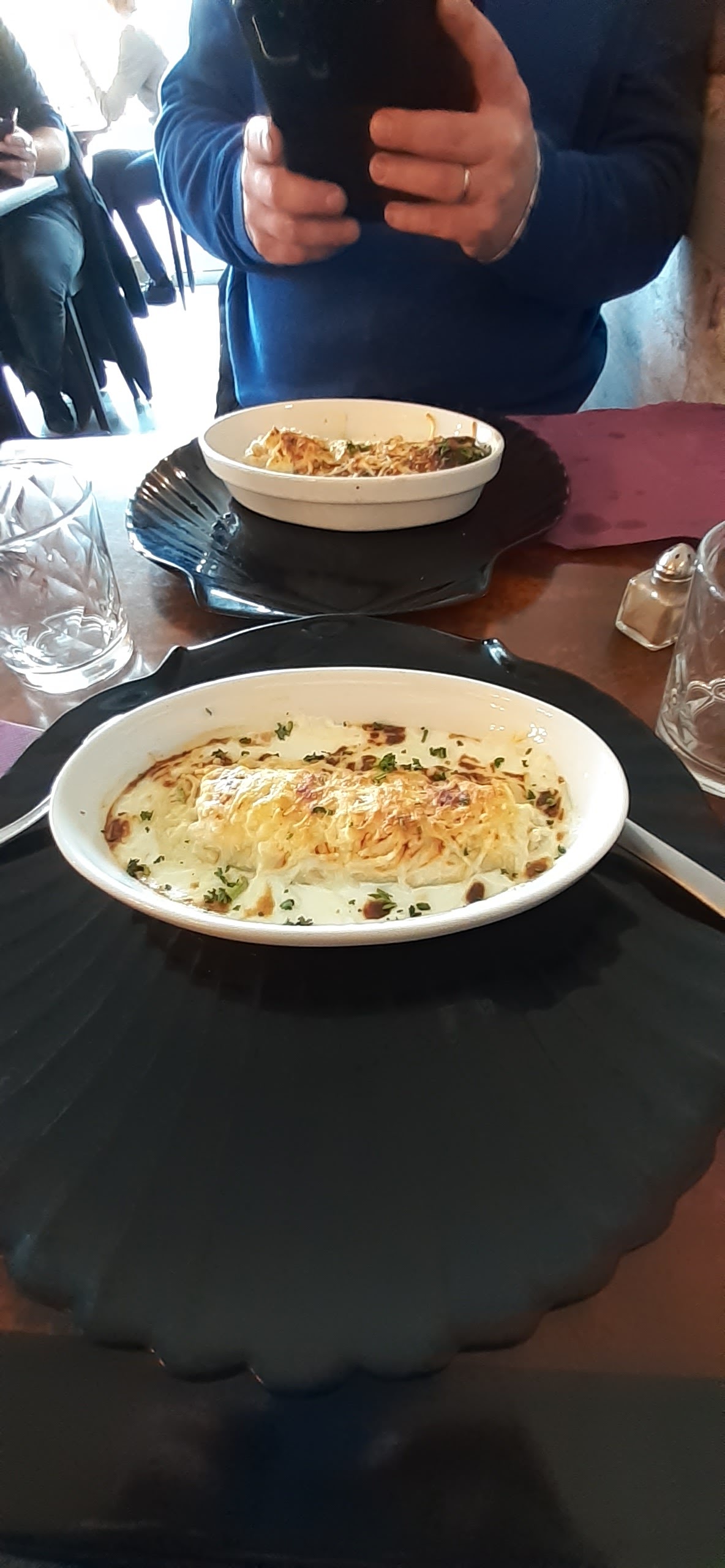 Très bon accueil. Ficelle de la mer très bonne. Choucroute de la mer et tagliatelles aux Saint Jacques (manque une pointe de sel) . Café gourmand (riz au lait un peu sec) Fondant au chocolat très bien