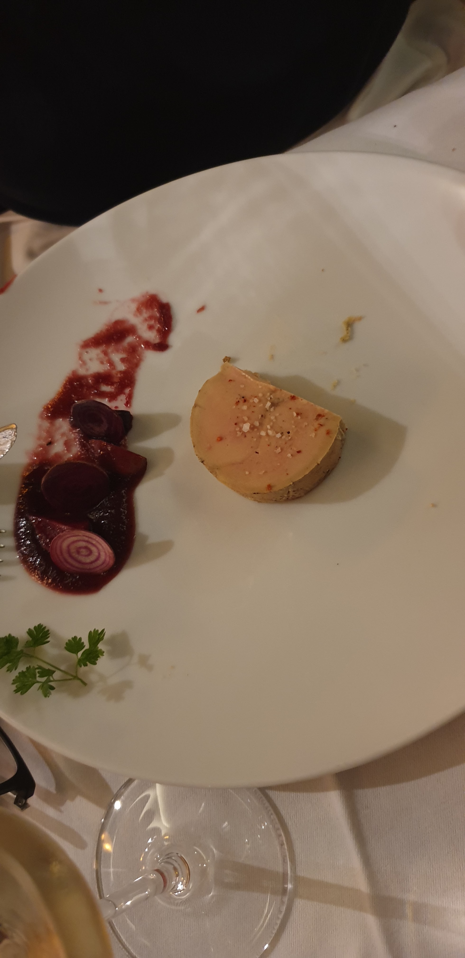 Excellent soirée pour mes 31 ans ! Le foie gras est très bon, je le conseil avec le pain si vous voulez savourer toutes les saveurs, la brioche qui est avec reste très bonne et parfumée. Le poisson, un vrai délice ; une très bonne cuisson. Côté dessert un fondant au chocolat et par dessus une boule de chocolat avec un liquide de sésame à l'intérieur, j'ai adoré ! Un très bon repas en terrasse, merci à vous !