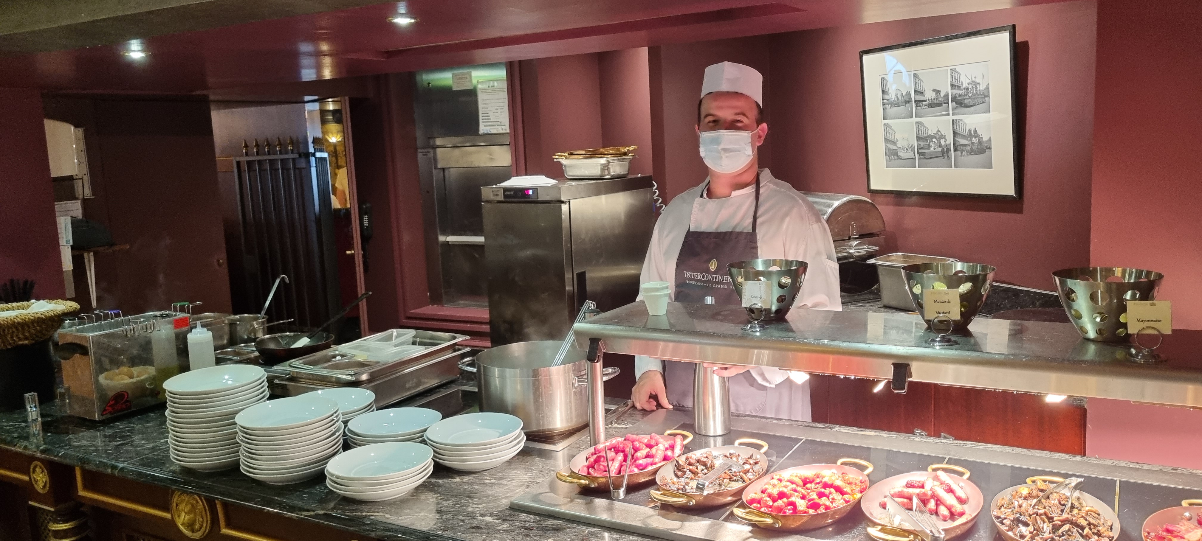 Expérience globalement décevante. Nous n'avions pas d'attentes particulieres pour ce brunch, mais étions très contents de découvrir un lieu aussi réputé que l' intercontinental. Et malheureusement quelle ne fut pas notre déception. Nous avions réservé une semaine à l'avance, en demandant à avoir une table au premier étage, là où se déroule le brunch. Chose faite selon la réception. Et là,surprise !!! Nous arrivons à notre table située au rez-de-chaussée.... visiblement l'information n'avait pas été transmise...bref. Nous nous essayons donc à notre table, où un accoudoir est branlant, encore dommage....le mobilier et la décoration vieillotte, mériteraient bien un petit rafraîchissement... Concernant le brunch, rien de fantastique, entrées basiques, léger sur les fruits de mer, le coin chaud était cependant pas trop mal avec un excellent filet de bœuf et gratin dauphinois, les desserts avaient l'air succulents, mais malheureusement, à 14 heures il n'y en avait plus.... encore dommage. Pour le café nous avons eu le droit à des sous tasses sales.... Heureusement nous nous sommes sentis dans un 5 étoiles quand nous avons commandé les vins.. où les prix sont à la hauteur de l'établissement, pour des vins basiques..encore dommage quand on est bordelais... Voilà notre retour d'expérience, ci cela peut vous permettre d'éviter cette arnaque. Amicalement John.