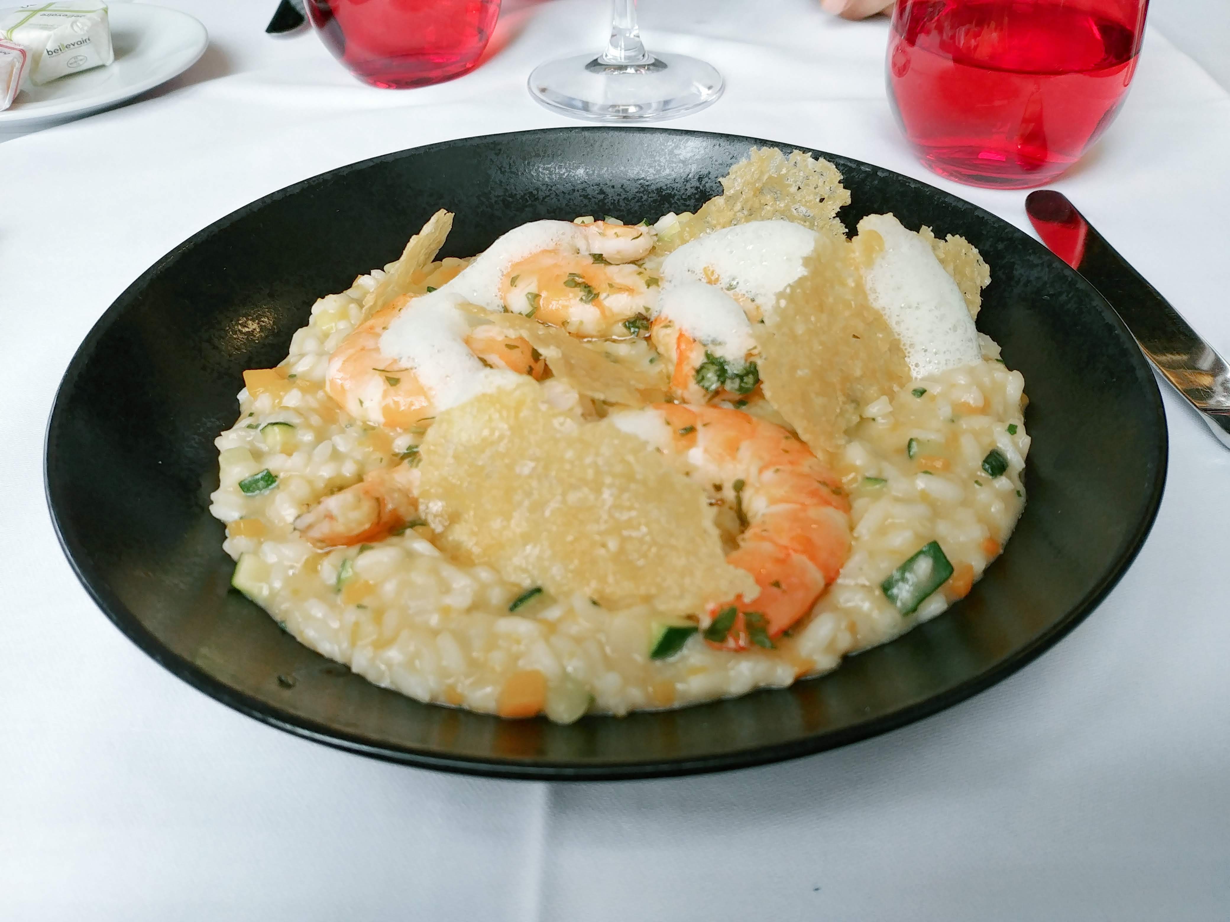 MAJ du 14 janvier 2023 Je suis retournée dans ce restaurant pensant y retrouver la même qualité, mais il n'en est rien. En lisant les avis récents, je me rends compte que je ne suis pas la seule à trouver que le restaurant a perdu de sa superbe. Le personnel est moins professionnel qu'avant, même s'il reste aimable, la cuisine a beaucoup baissé en qualité : le poisson est certes bien cuit, mais servi posé tel quel sur une sauce dont on n'a pas pris la peine de la verser correctement dans l'assiette (voir photo) avec un gratin de chou-fleur commun que j'arrive à faire moi-même. Le goût n'est pas inoubliable, loin de là. Et que dire des desserts qui ressemblent à des desserts non faits sur place (je ne dis pas qu'ils le sont, mais j'émets des doutes). Le petit carton sur lequel ils sont posés n'est pas du meilleur goût, il y a déjà une assiette dessous, ce n'est pas la peine de nous servir un dessert sorti d'un rayonnage de pâtisserie. Je n'ai ni besoin de le transporter, ni de le découper. La tarte au citron est bonne, mais bien moins que la dernière fois que j'y suis allée (je prends toujours le même dessert afin d'avoir un point de comparaison). Dommage, je crois que c'était la dernière fois que j'y allais. ================================================== Nous avons choisi d'y aller un midi car il y avait du risotto au menu. Quelle bonne surprise ! Petits amuses bouche, un risotto aux crevettes excellent et copieux, un verre de vin, le tout servi avec le sourire pour 27 euros !