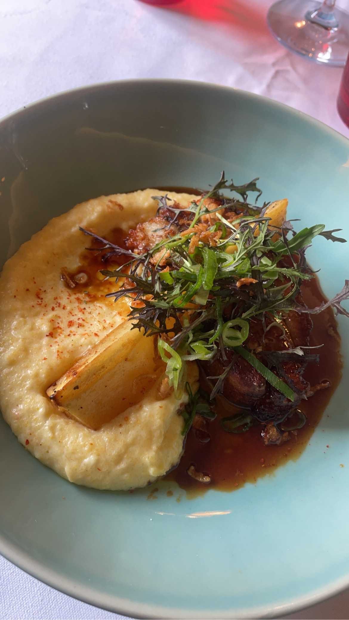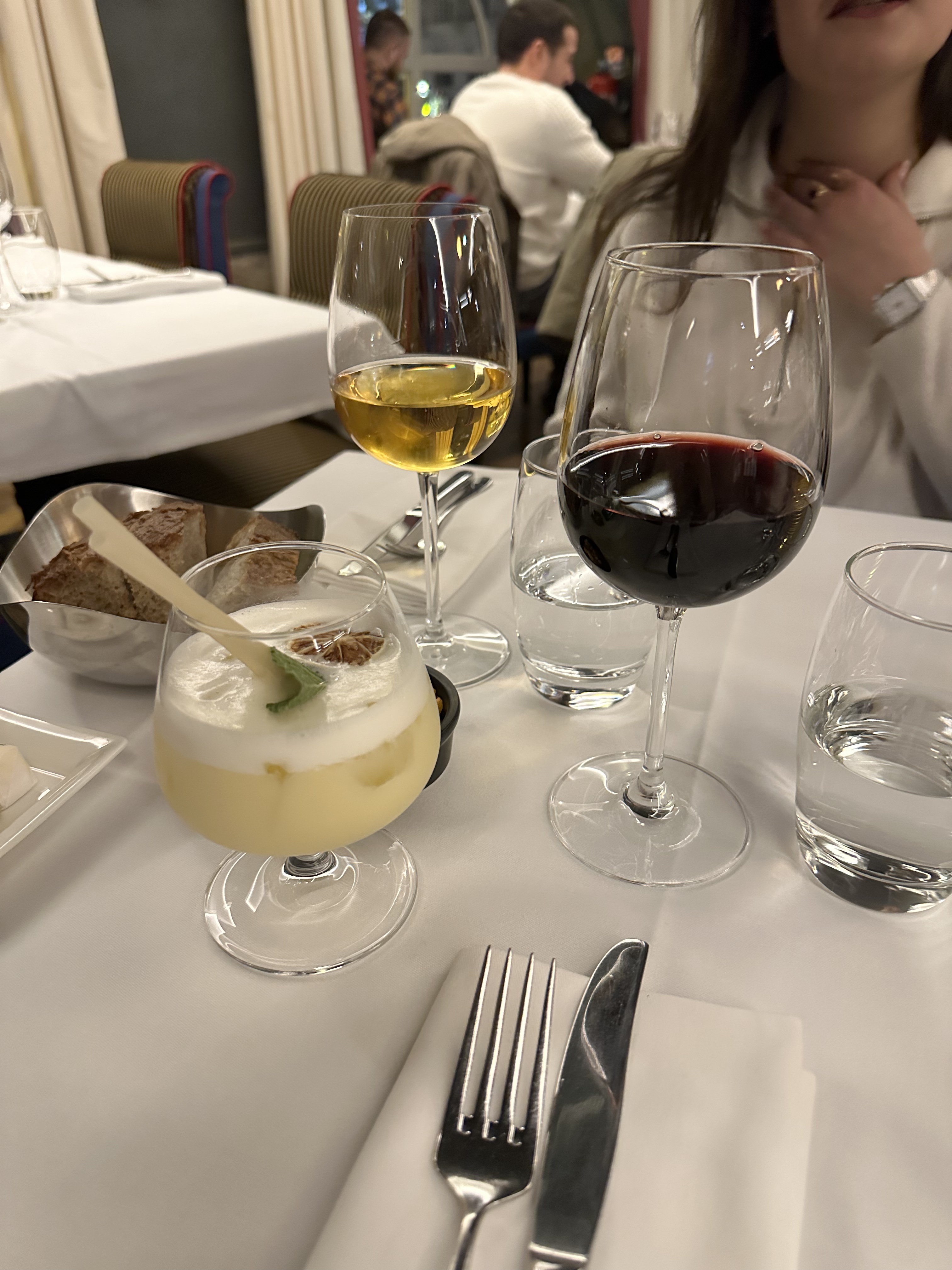Repas très bon, service peut mieux faire, décors et emplacement très agréable mais le hic c’est le verre de vin à 12€ avec 3 gorgées et les amuse-bouches avec 3 ou 4 olives !!!