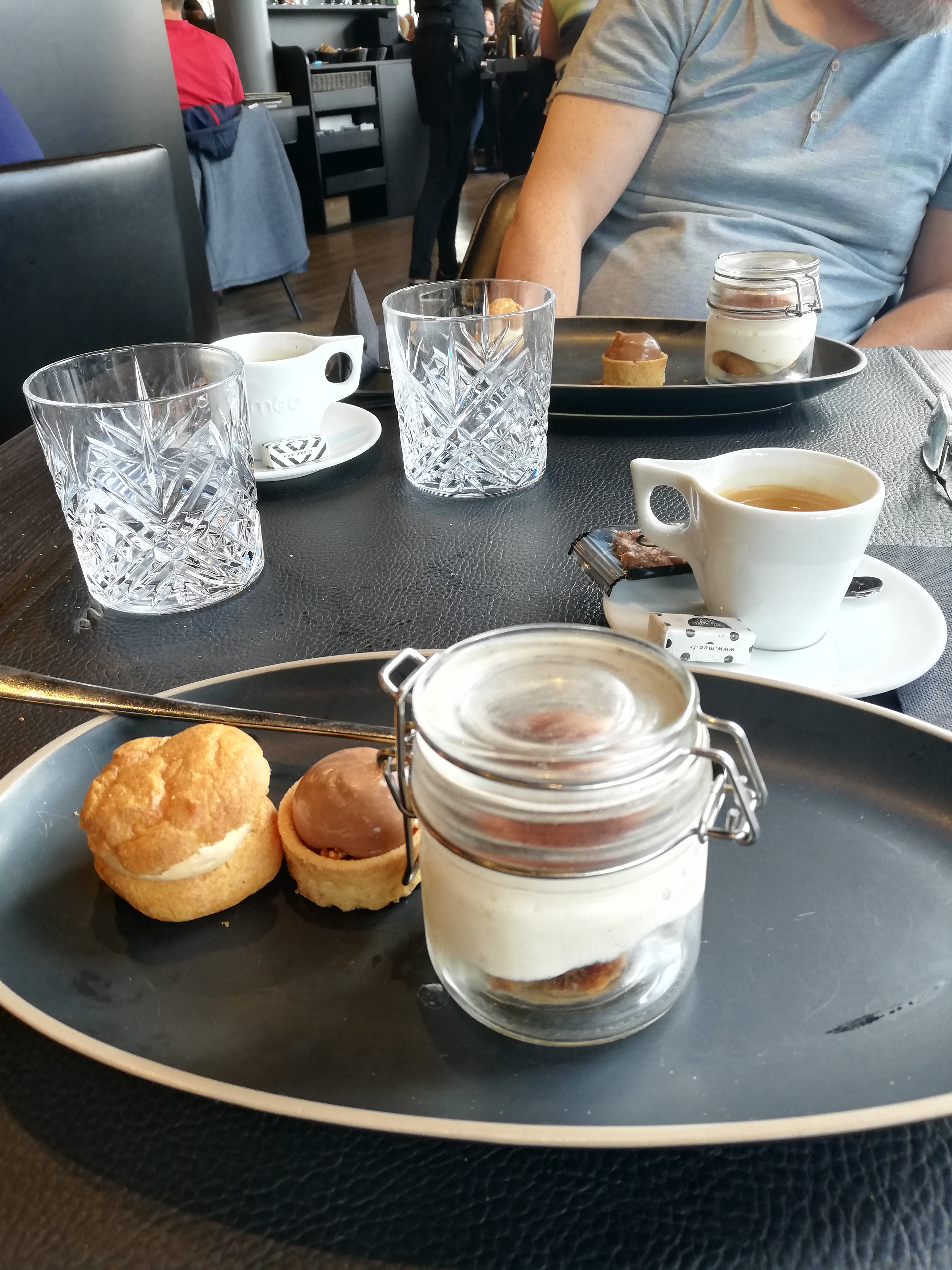 Repas en équipe d'entreprise. Service rapide voir un peu trop. Decors trop sombre à mon goût, tout en noir, avec de grand lustre, et les toilettes couleur or.La serveuse ne connaît pas les légumes servis dans les assiettes ( betterave / navet ). Les assiettes sont copieuses , gourmandes et délicieuses. Je n'ai pas su finir mes profiteroles pourtant excellents.