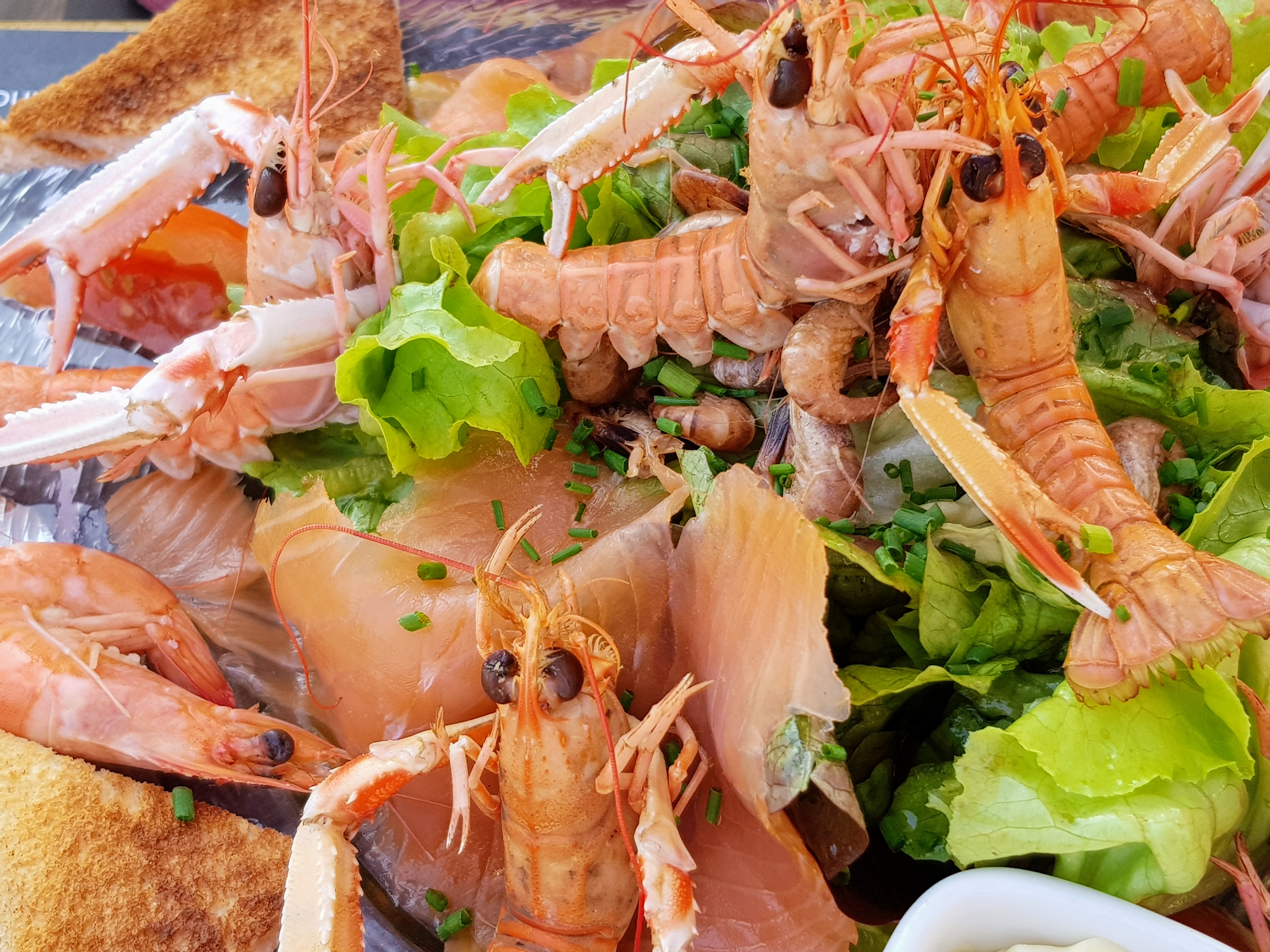 30 euros pour de la laitue, 3 tranches de saumon fumé et 7 crevettes.... cher!!!