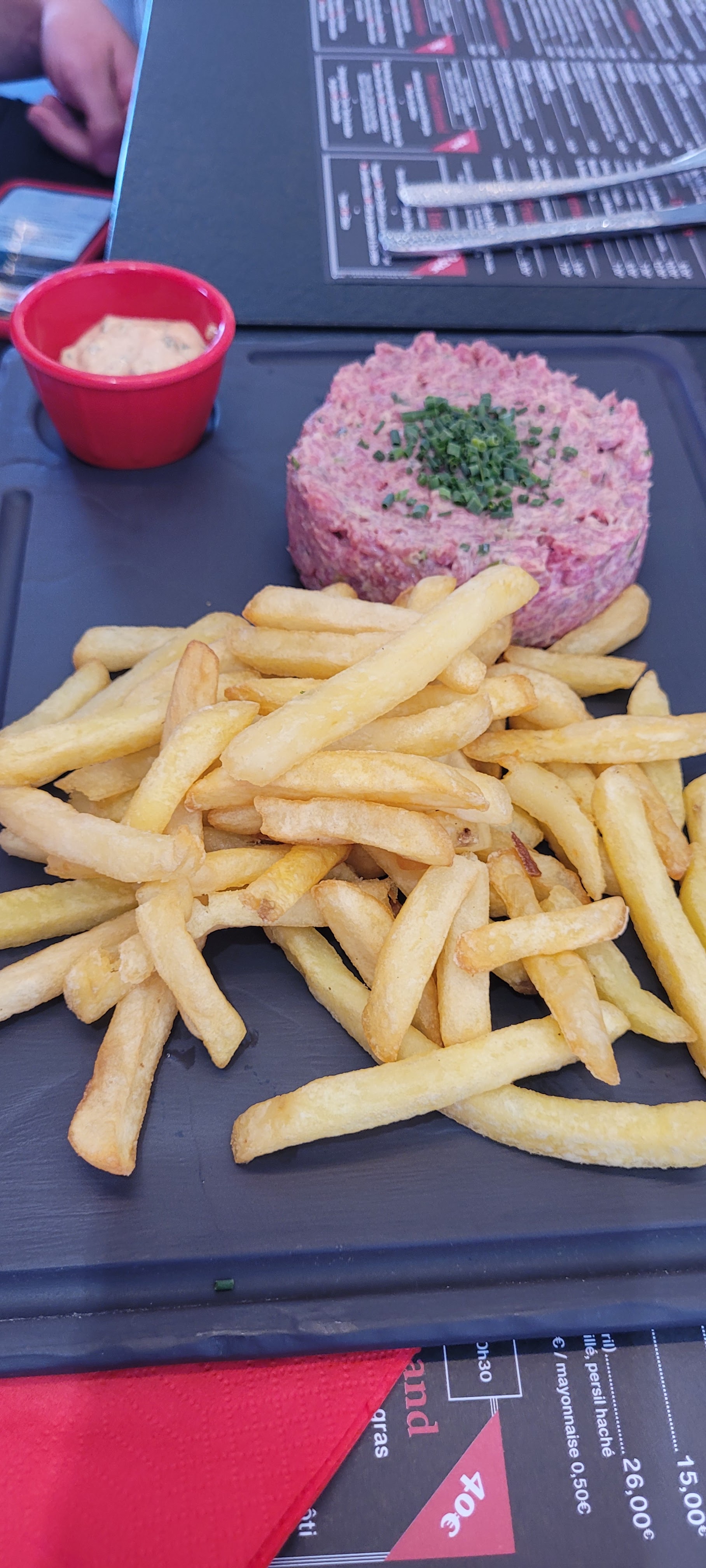 Le restaurant est agréable, la vue est belle, le service est rapide, le personnel agréable, le prix dans la bonne moyenne ... Bon j'adore les tartares, et là pour le coup... Nous n'avons pas aimé, j'avais super faim et je n'ai mangé que les frites 🍟