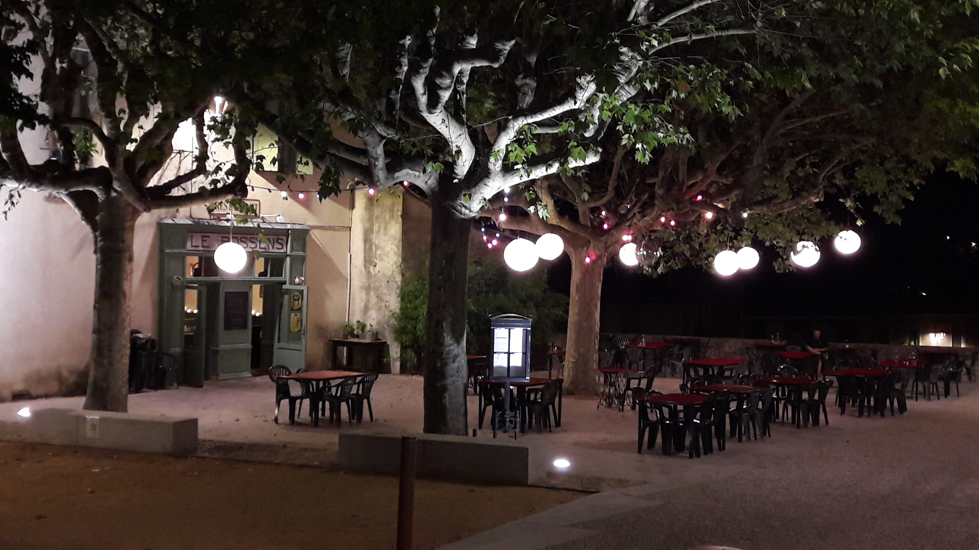 Très chouette ! Martine, la patronne, est haute en couleur. Les plats sont très bons. Et le cadre est super : petite place de village, au frais sous les platanes éclairés par des lanternes. C'est vraiment sympa !