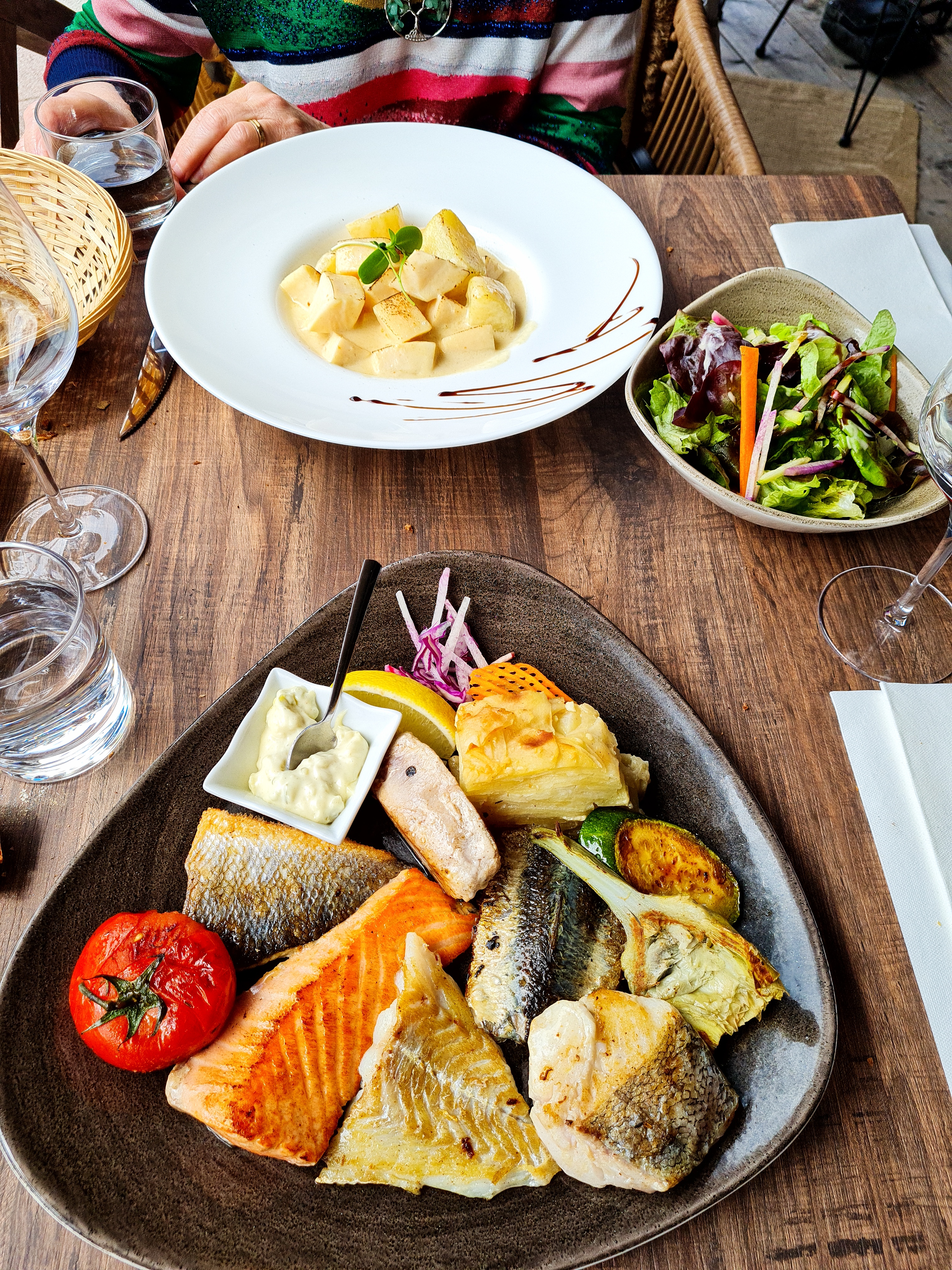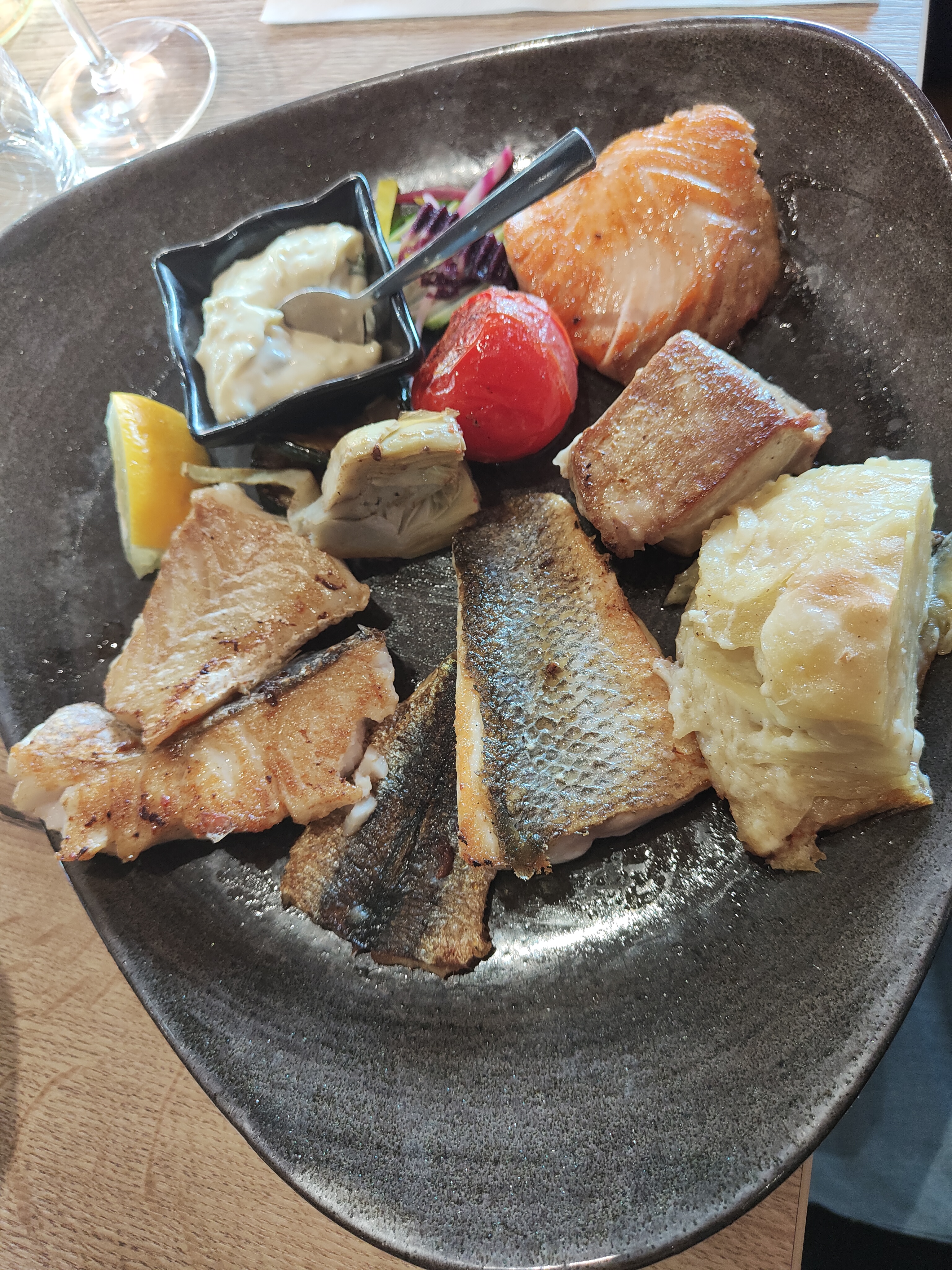 Très bon plats, je recommande l’assiette de poissons grillés. Nous nous sommes régalés.