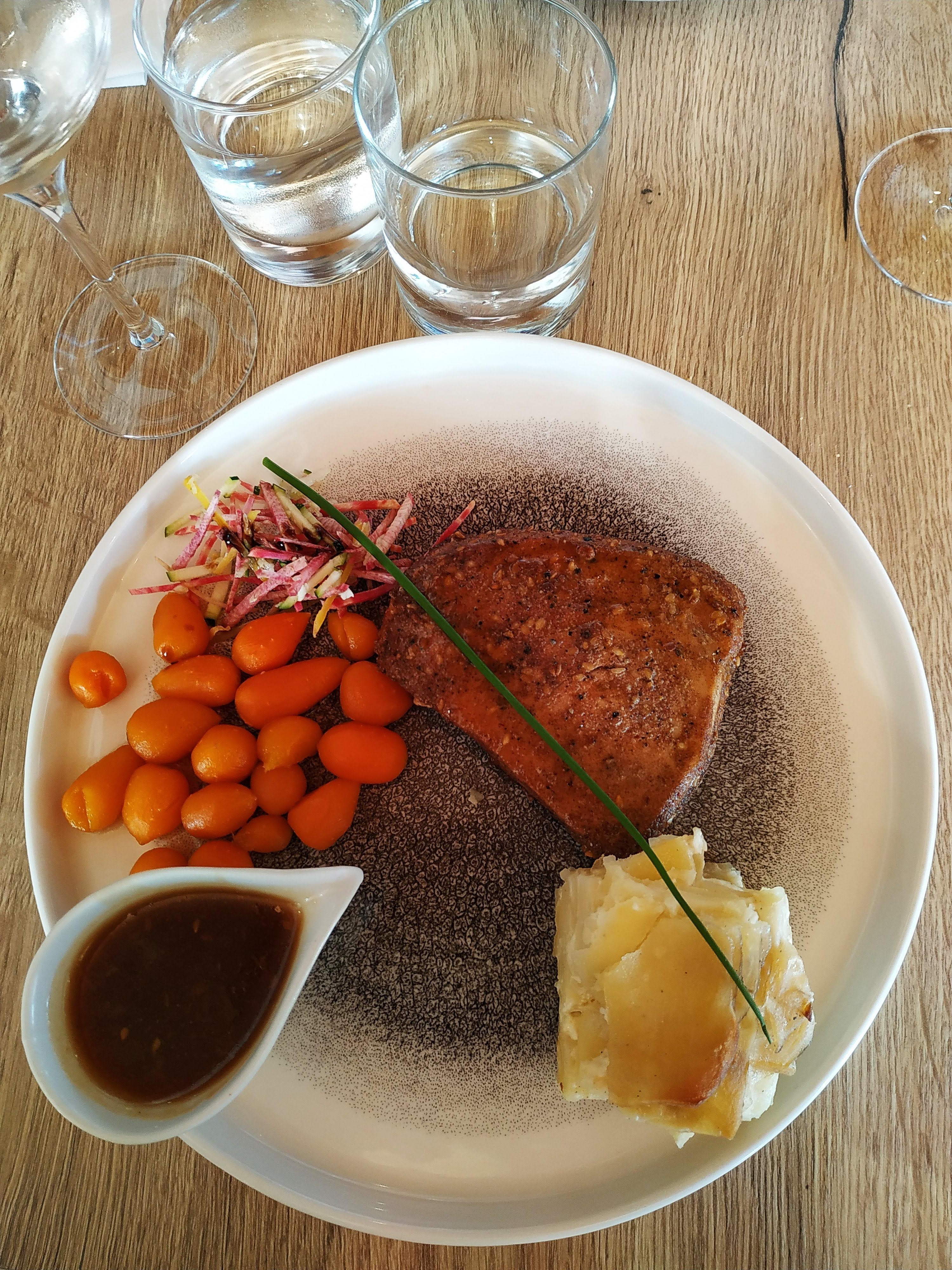 Un déjeuner riche en saveurs, de l'entrée jusqu'au dessert ! Très bien mis en valeur par les personnes travaillant au service ! Bref un moment inattendu puisque nous sommes venus par hasard et nous sommes conquis ! Bravo à toute l'équipe