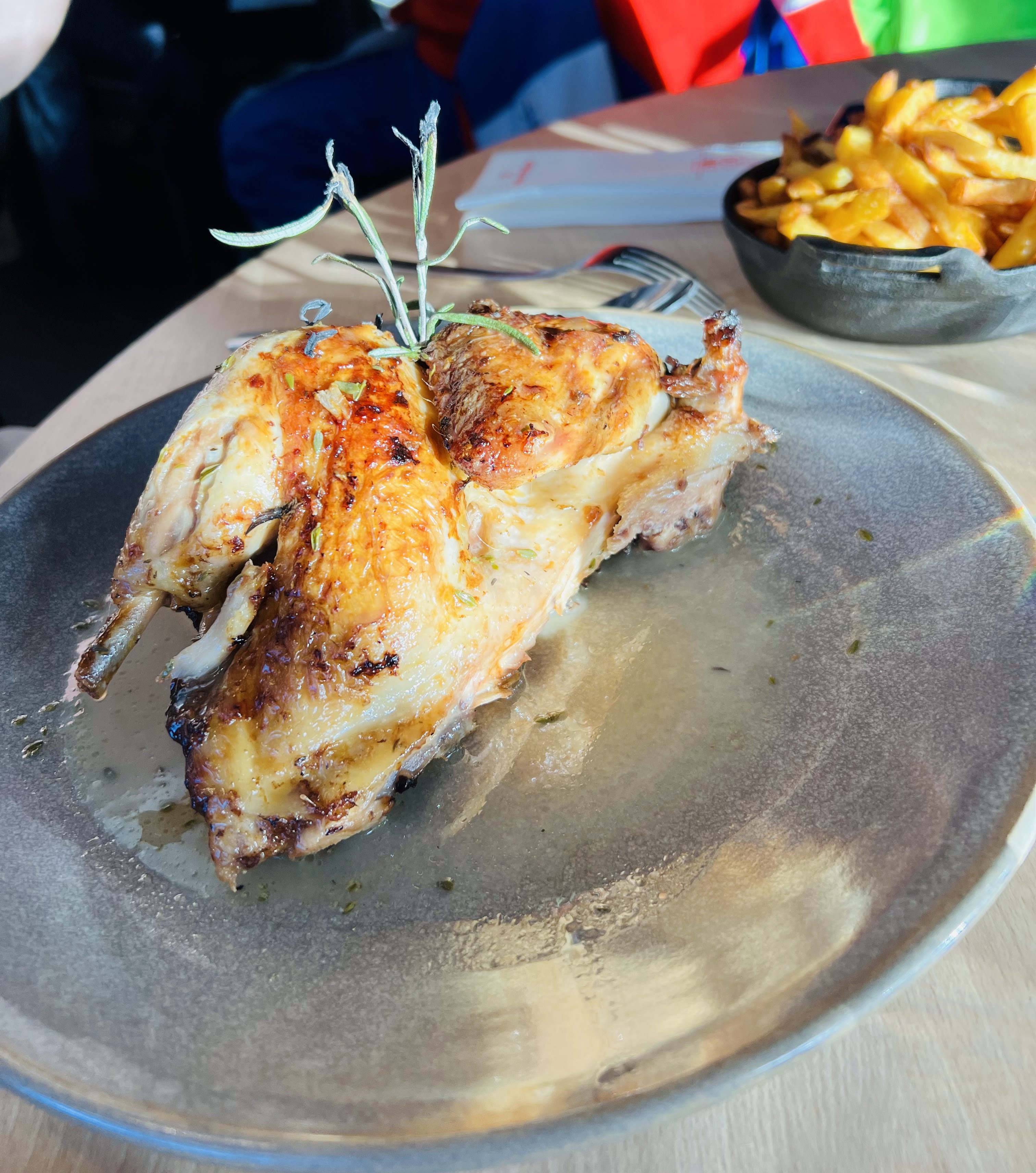 Je suis tombé sur cet endroit par hasard, un refuge de le vent froid quel régal c'est. Nous avons tous les deux pris le demi-poulet au citron et au thym servi avec des frites dorées au beurre, nous avons tous les deux convenu que c'était l'un des meilleurs poulets que nous ayons jamais mangé. Personnel professionnel et sympathique dans un environnement de restaurant animé. Nous avons terminé avec un Gaufre et du Nutella. Nous reviendrons pour tester le reste de la carte et les vins français