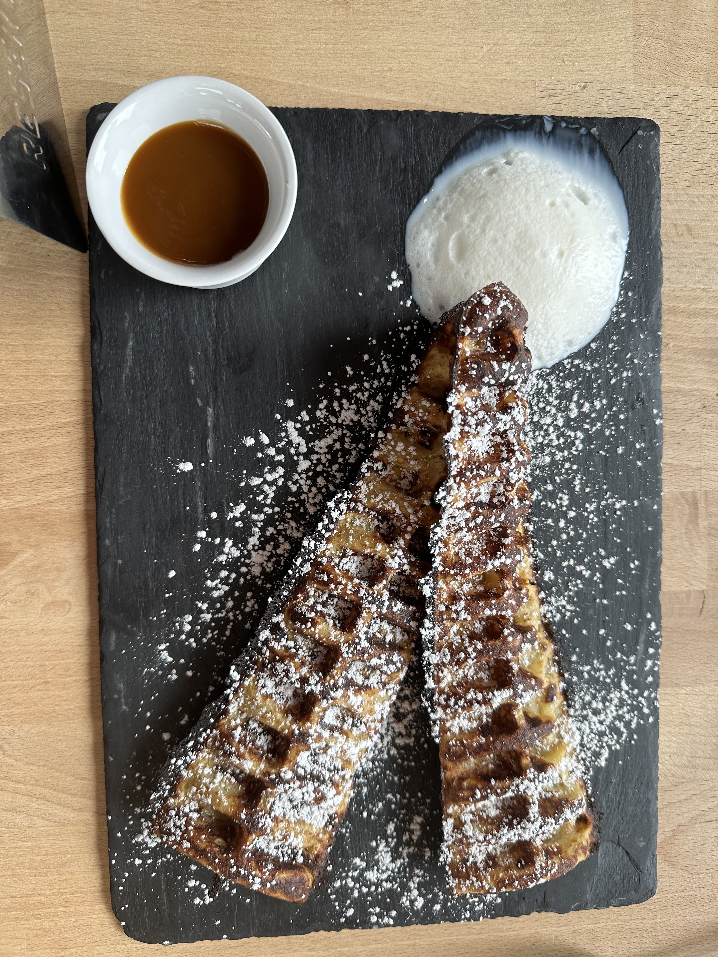 La gaufre pour la pause café de 11h00, un moment de délectation, le tout dans un panorama des plus spectaculaire. Vivement recommandé.