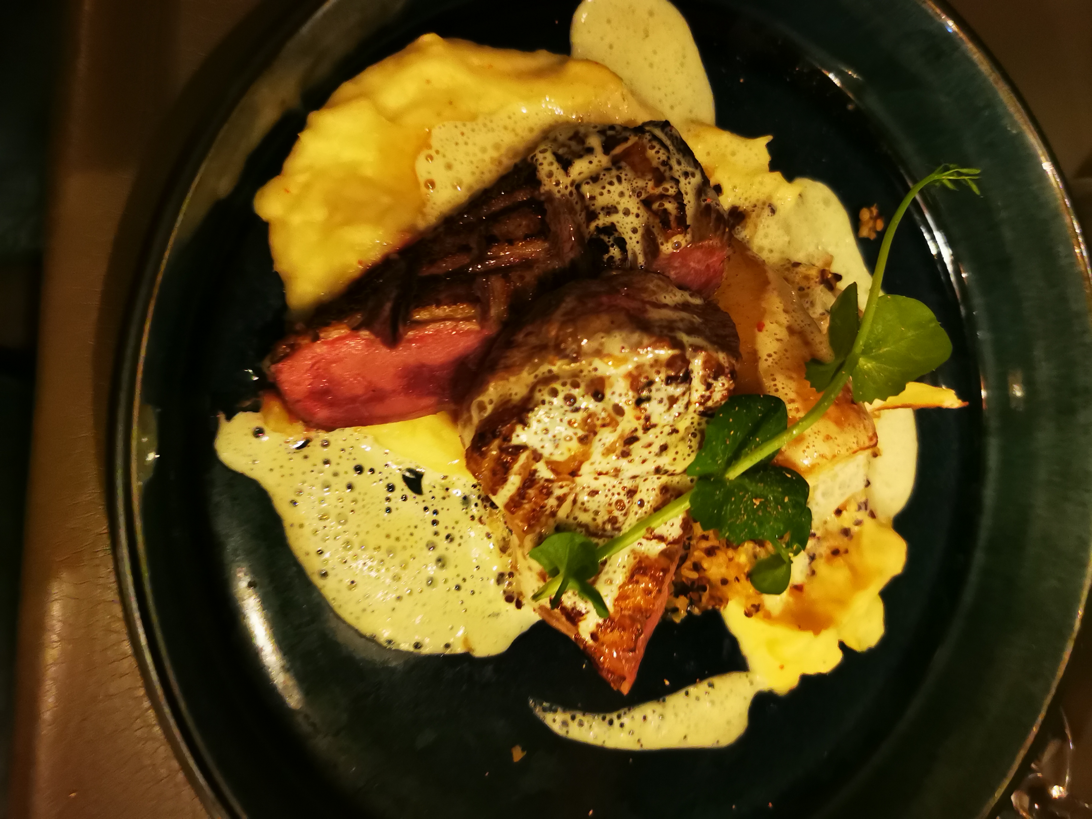 Un peu deçue par l'entree trop sale. Service moyen et couverts en argent avec bouts des fourchettes noircies. Accueil moyen . Viande délicieuse. A revoir!!!