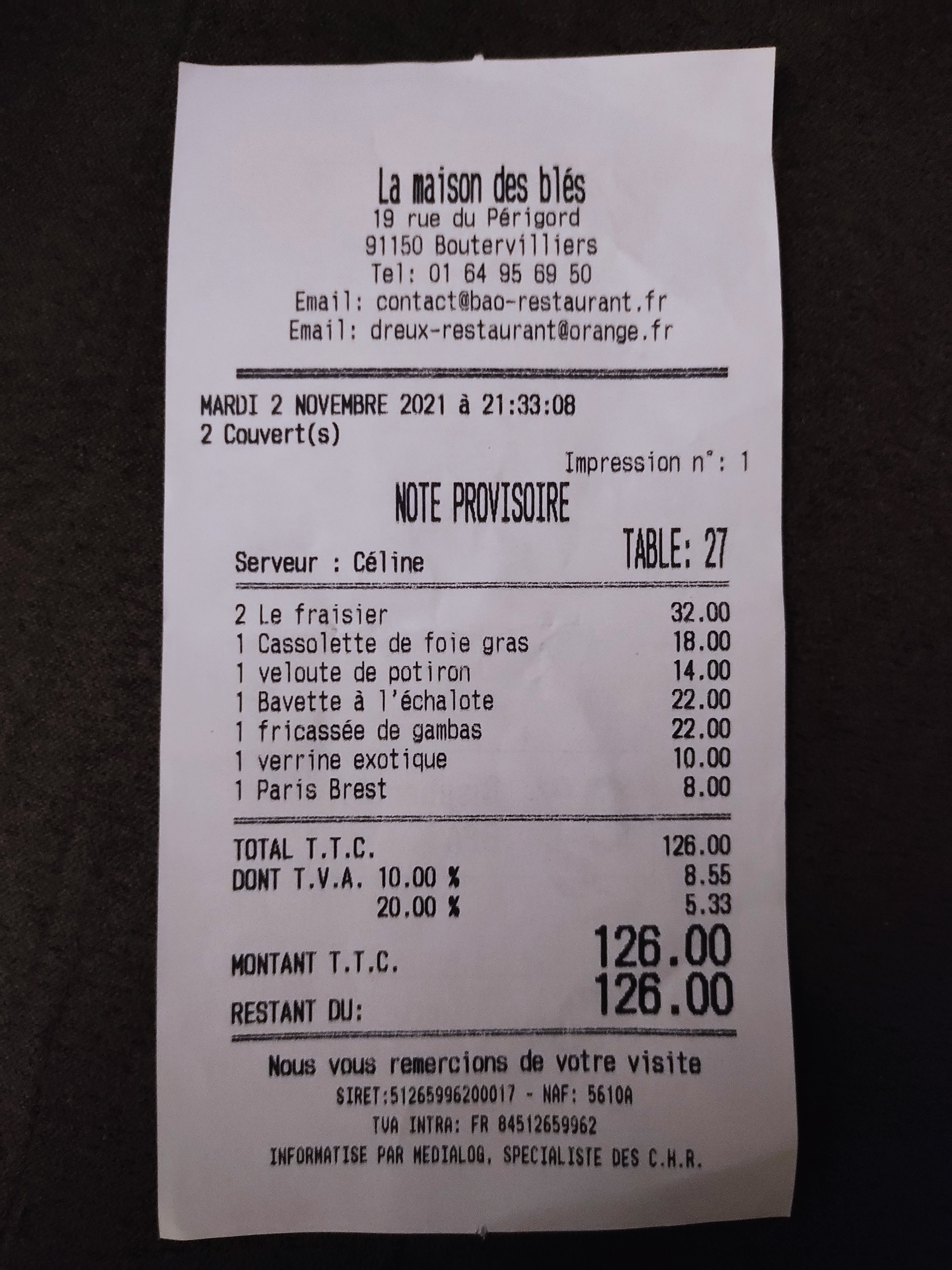 J ai été déçue et je n ai pas aimé, mais pas mon mari qui lui s est régalé, je situe le restaurant entre un gastro et un restaurant classique, à part mon plat principale, ou le poisson était bien cuisiner, le reste n était pas au niveau,