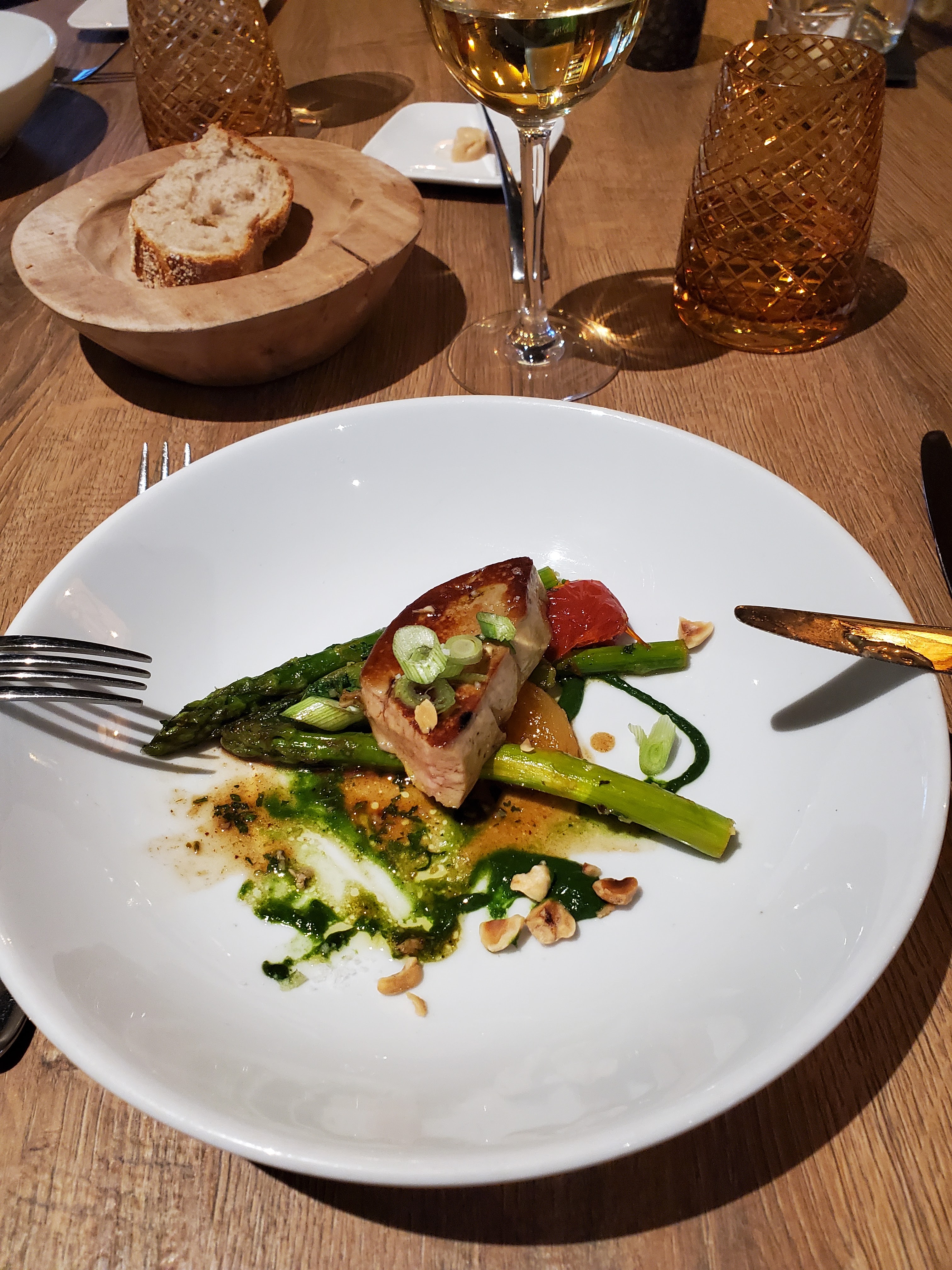 Tout était super, la cuisine avec ses cuissons et assaisonnements top. Le service d'une grande qualité. Des amuses bouches au début et à la fin du repas et plusieurs variétés de pains frais fait maison.