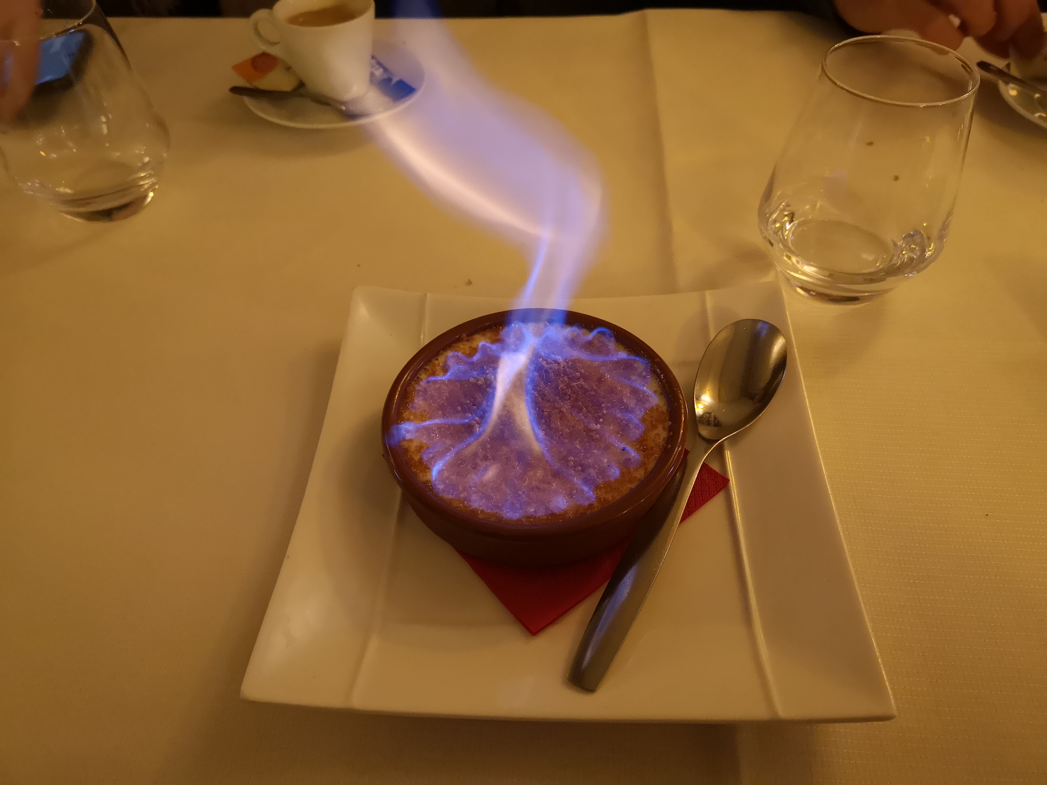 Très bon rapport qualité prix. De nouvelles suggestions tous les jours avec des produits frais. Service impeccable. Et c’est sympathique de finir son repas avec (littéralement) le feu dans son assiette (ou plus précisément sur sa crème brûlée ou plutôt encore brûlante). Allez vous régaler !
